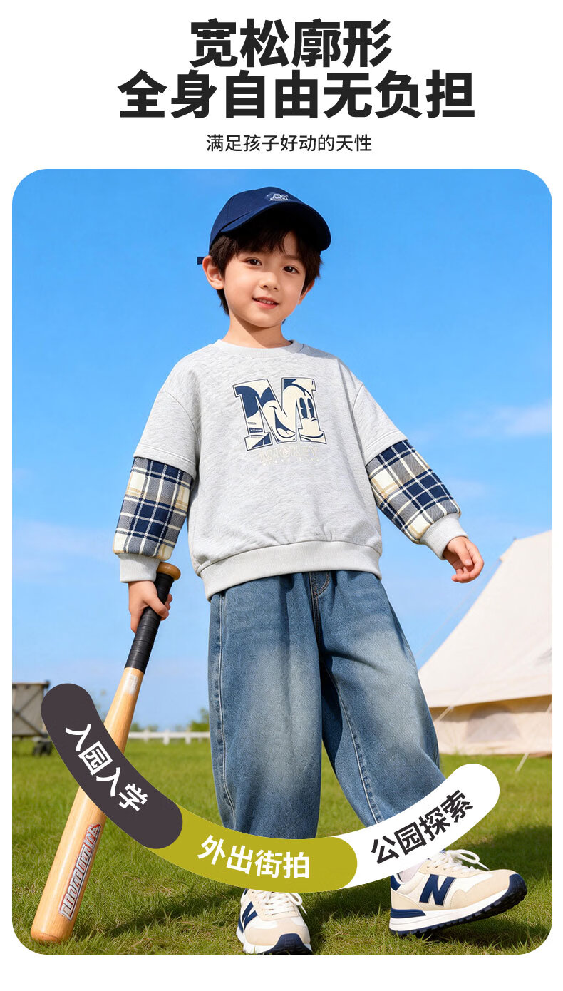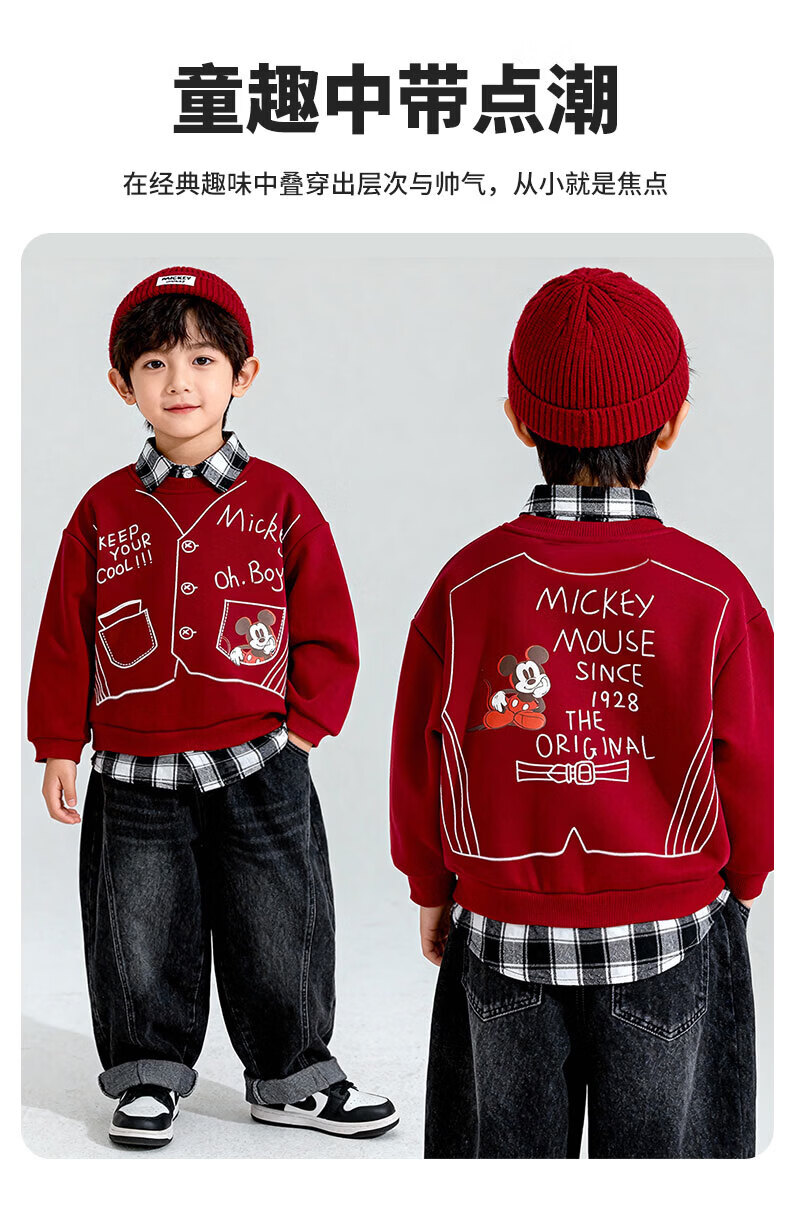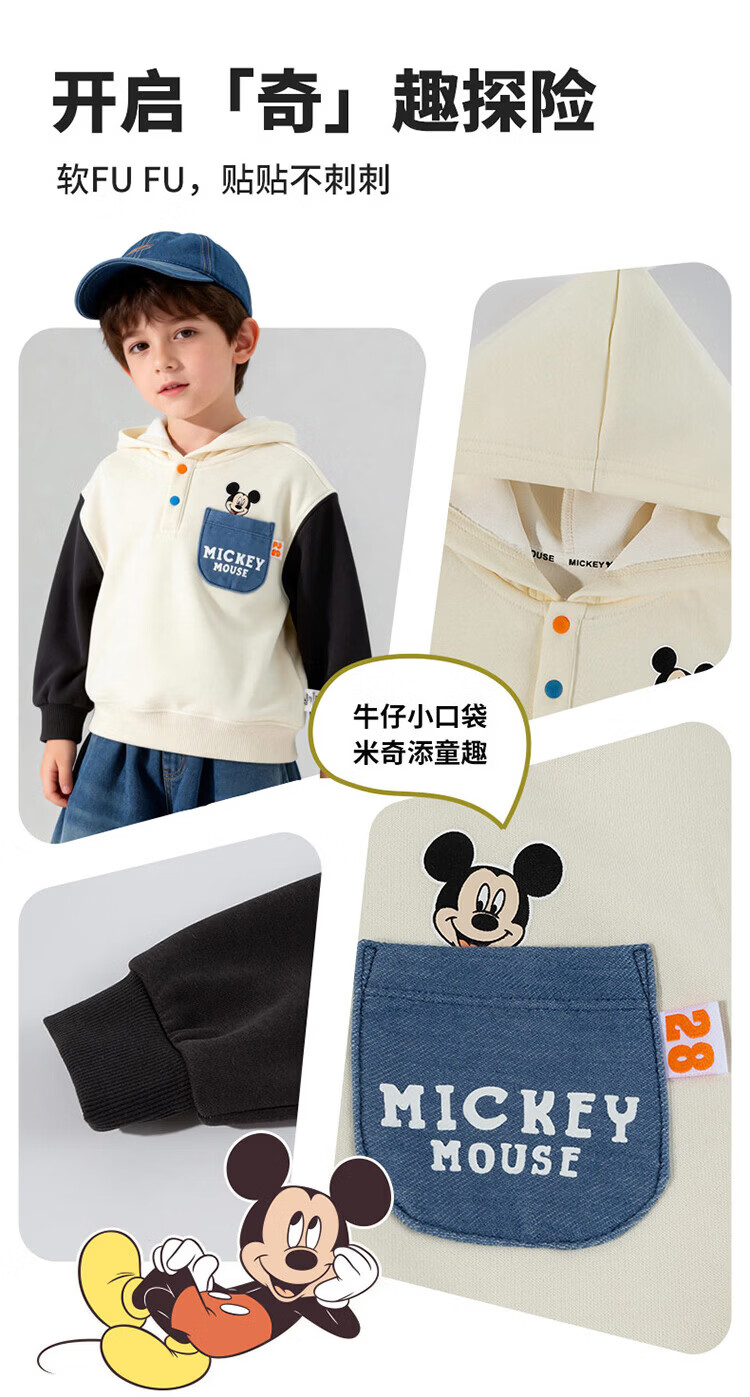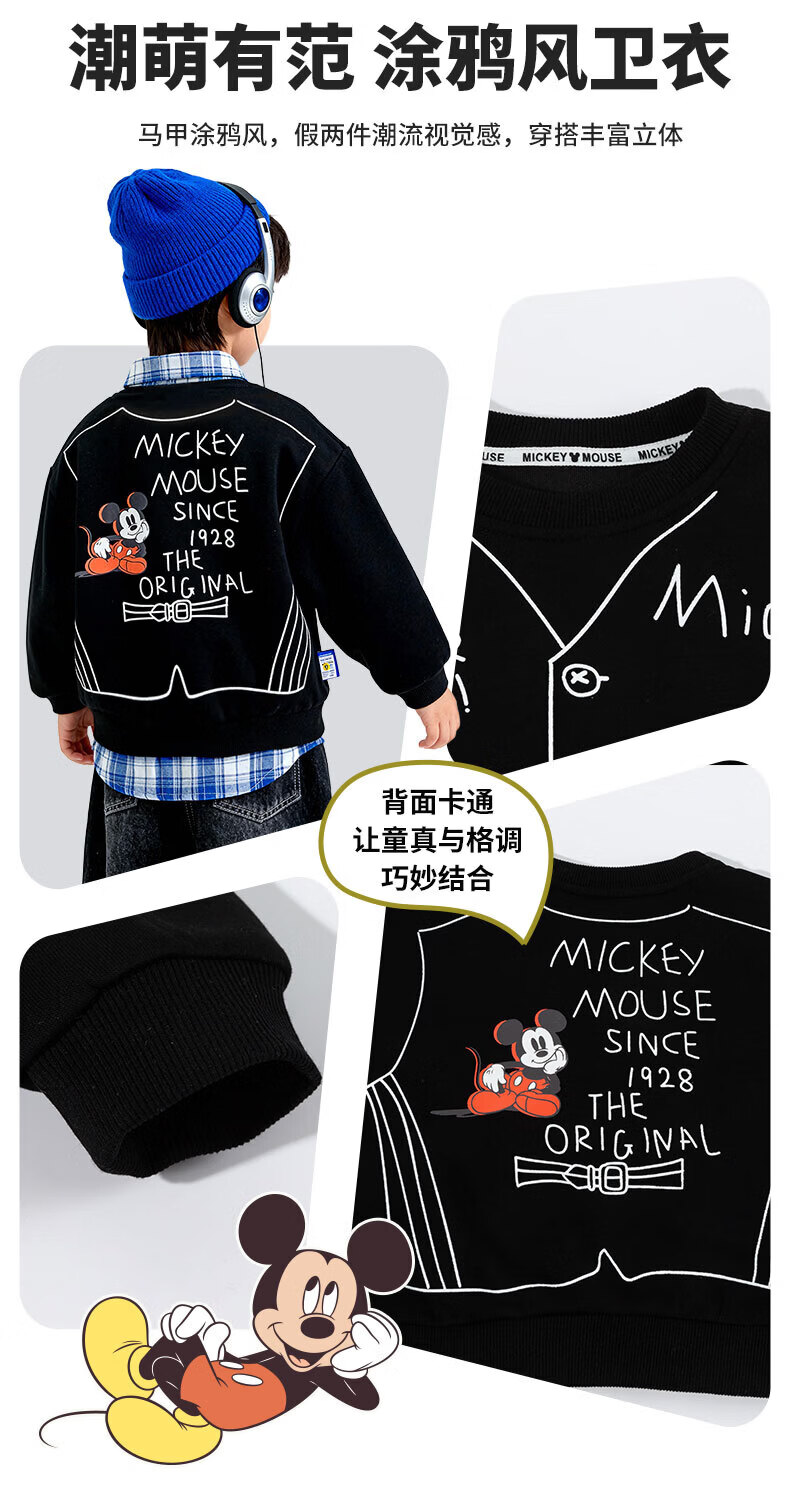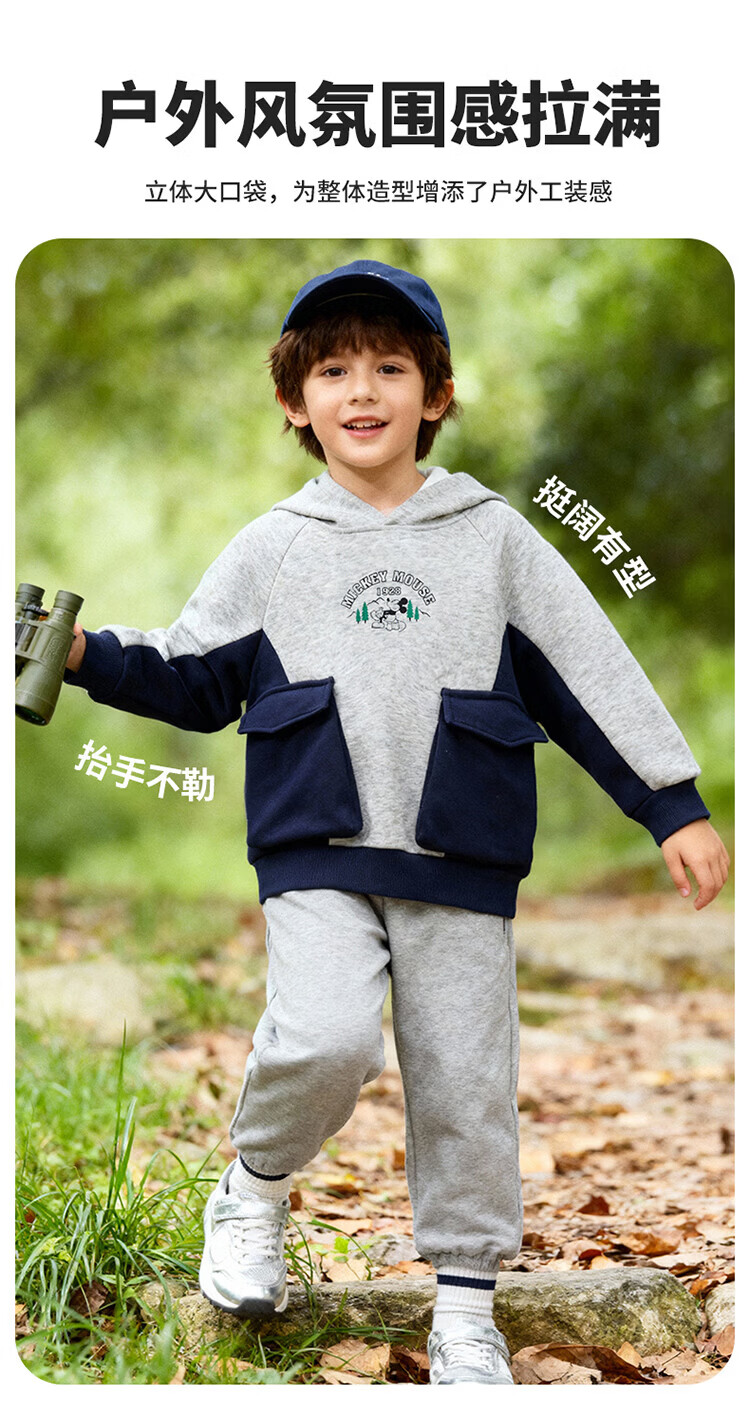 迪士尼(Disney)男童休闲运动耐磨卫衣春秋季学院风潮酷穿搭童装拼色卫衣26年新款 藏青Polo领 150 (建议10-12岁身高140-150cm)