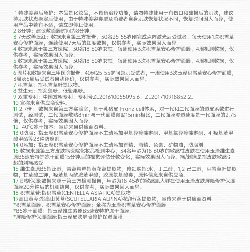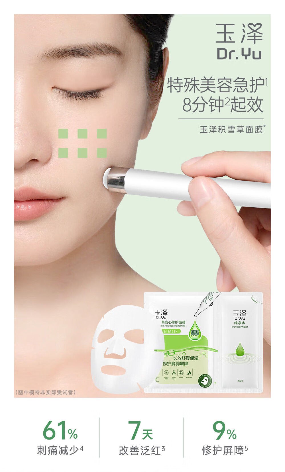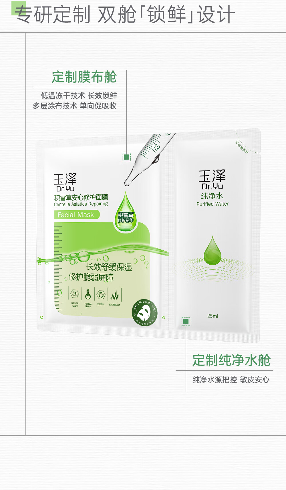 玉泽(Dr.Yu) 面膜 积雪草安心修护面膜玻尿酸补水保湿舒缓晒后修护敏感肌适用 新升级1片