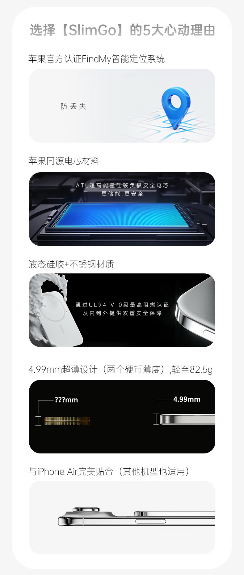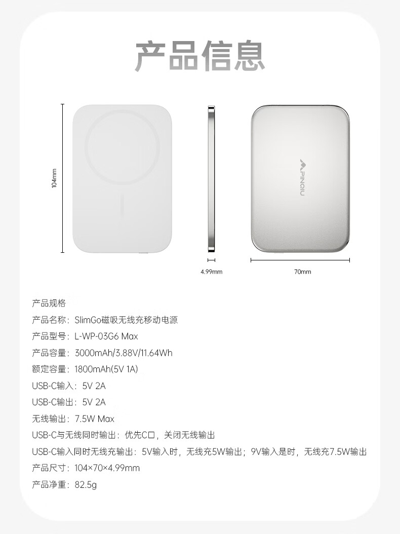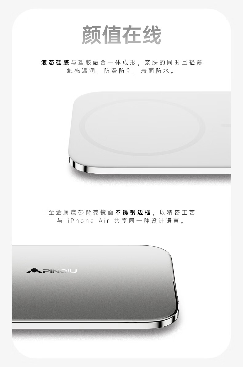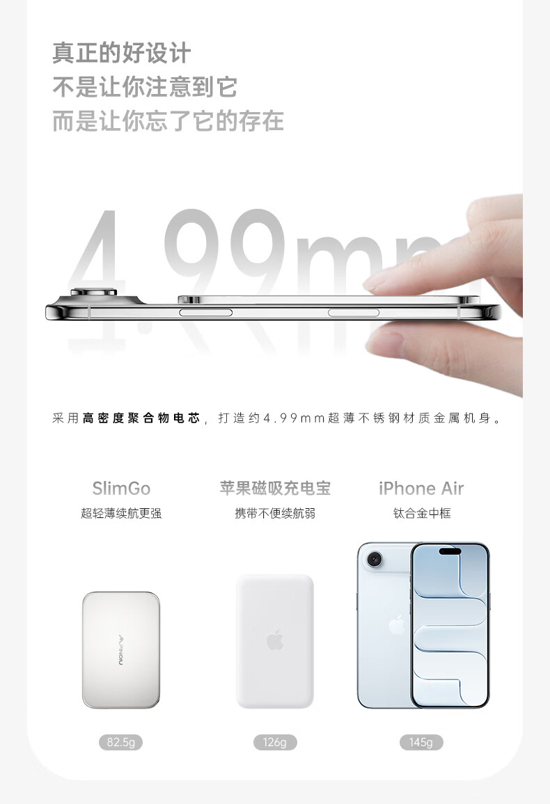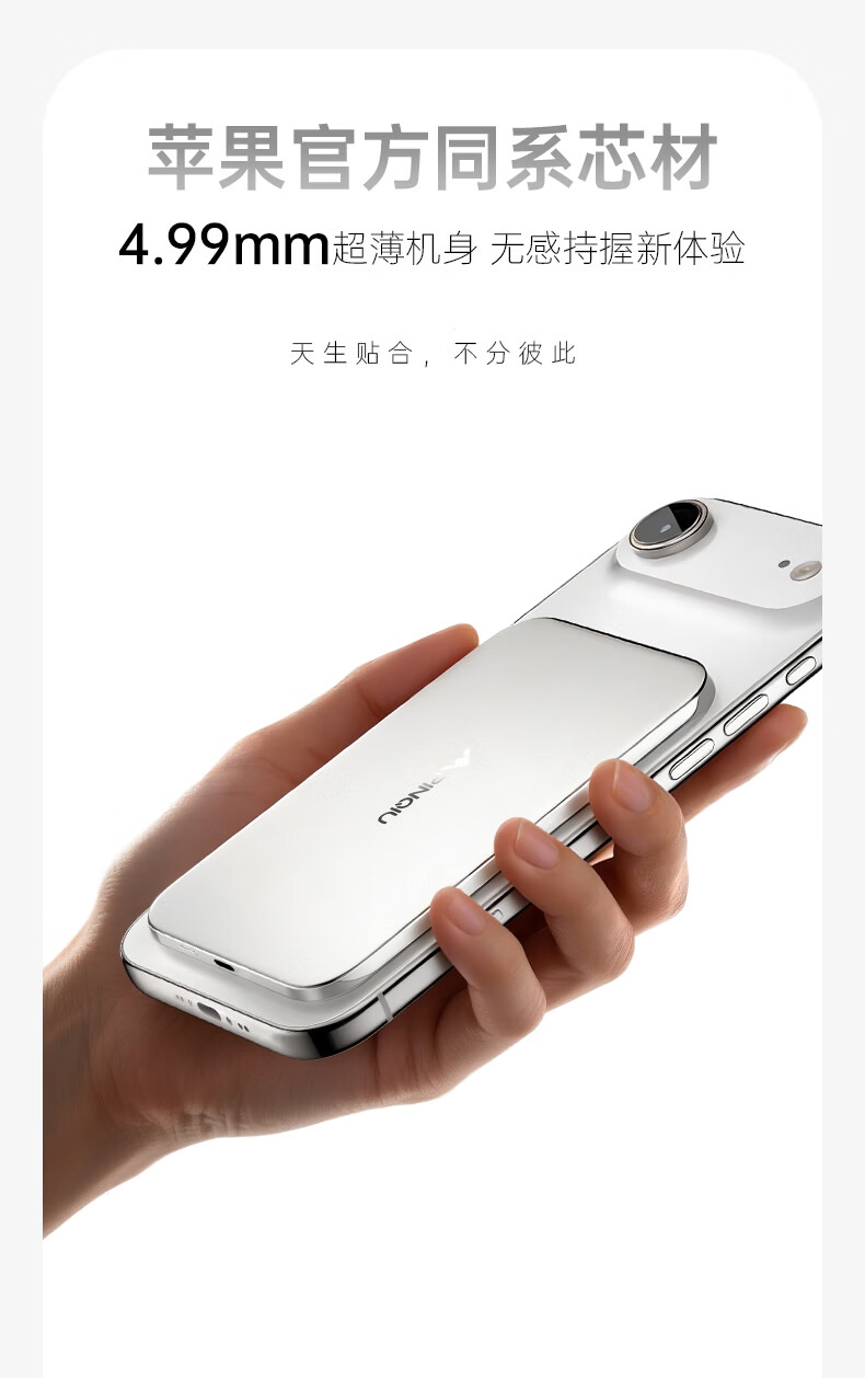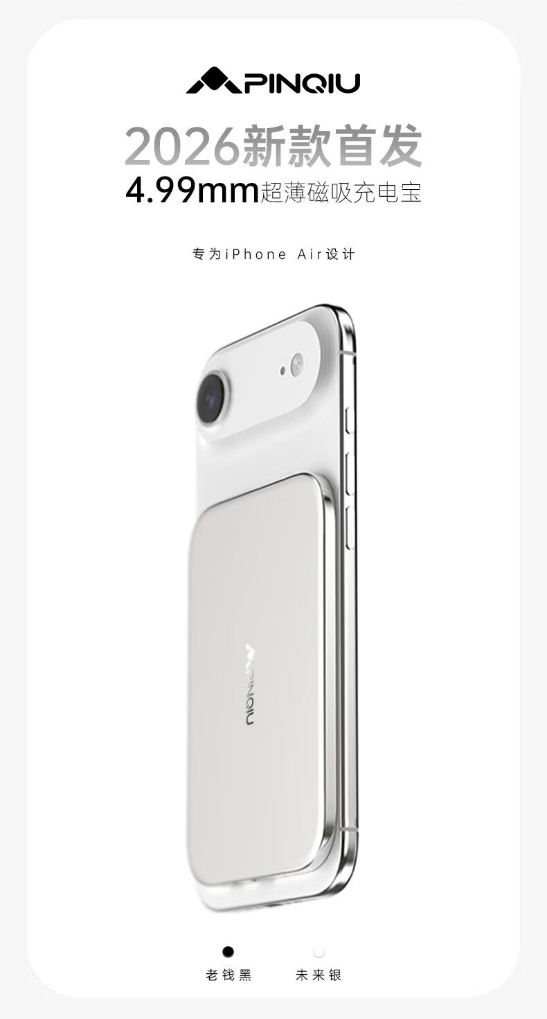 PRQU 品丘4.99mm超薄磁吸无线充电宝带苹果FindMy定位功能可上飞机商务备用 未来银