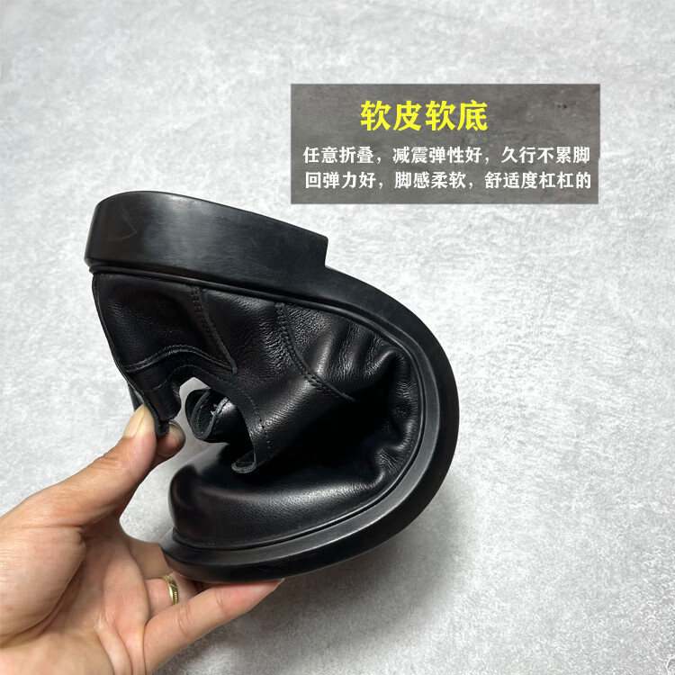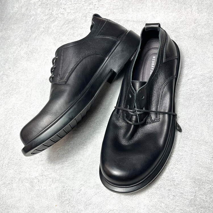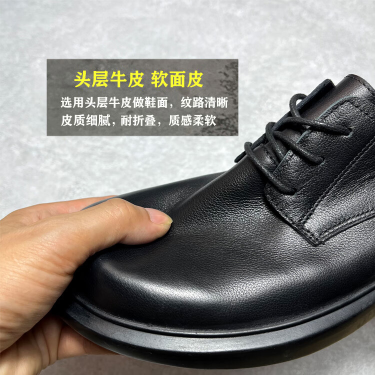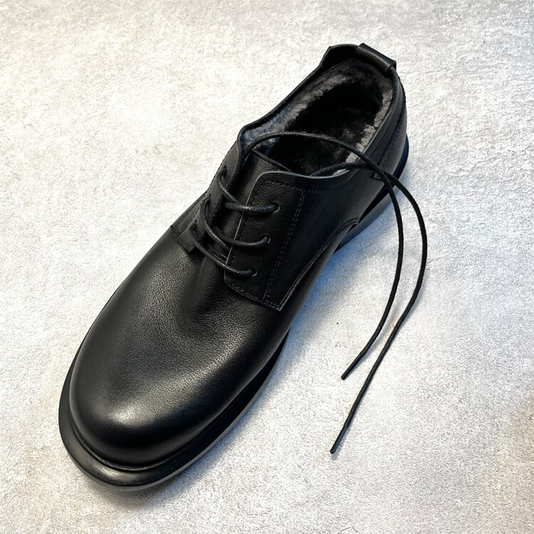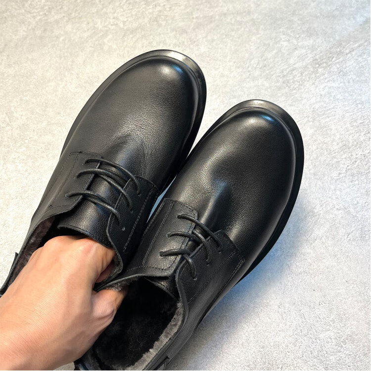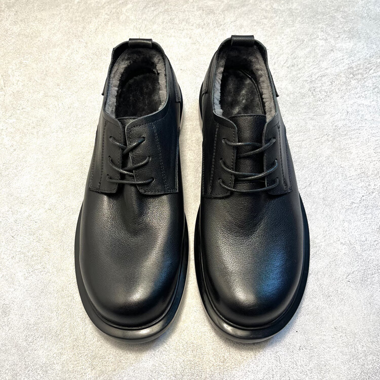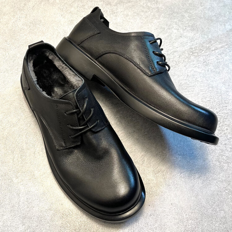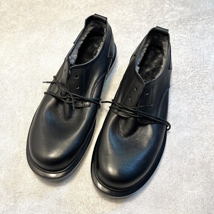 稻草人(MEXICAN)冬季皮鞋男士真皮大头德比鞋通勤上班工装商务休闲鞋加绒保暖棉鞋 黑色 加绒款 38