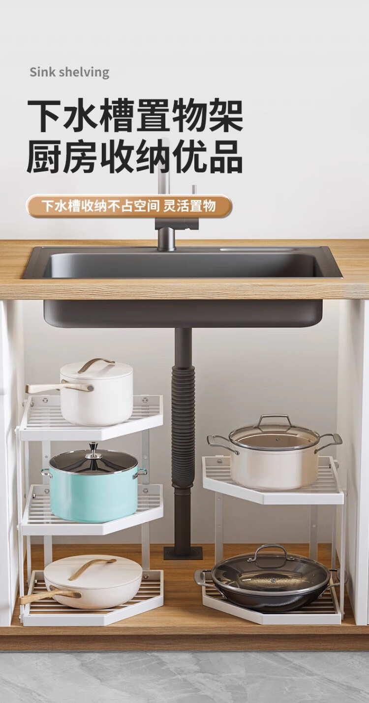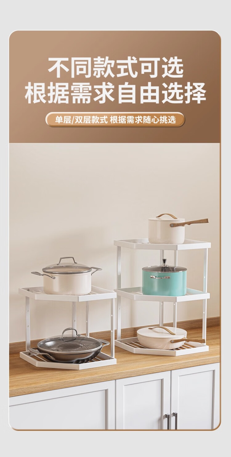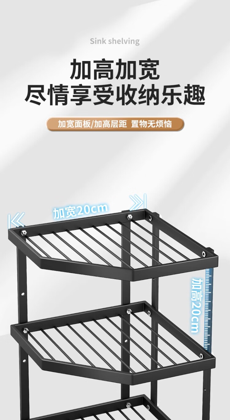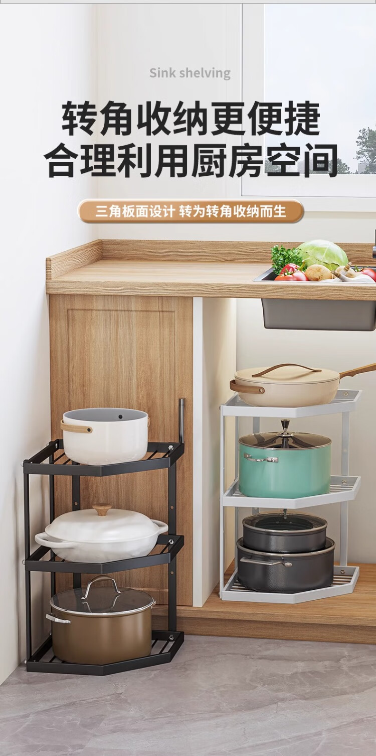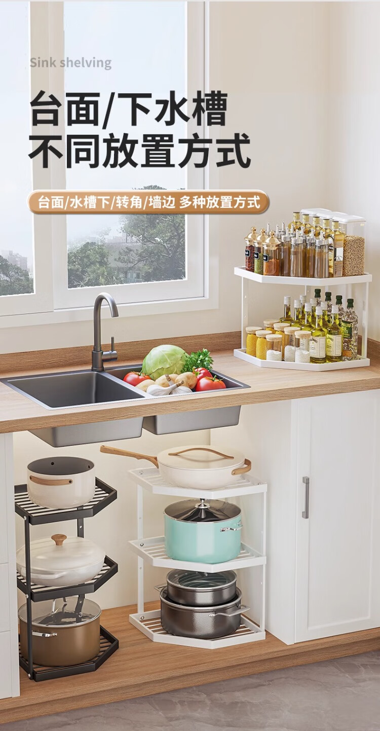 尔思家厨房锅具收纳架家用多层三脚架橱柜内分层下水槽转角多功能调料架 黑色双层标准
