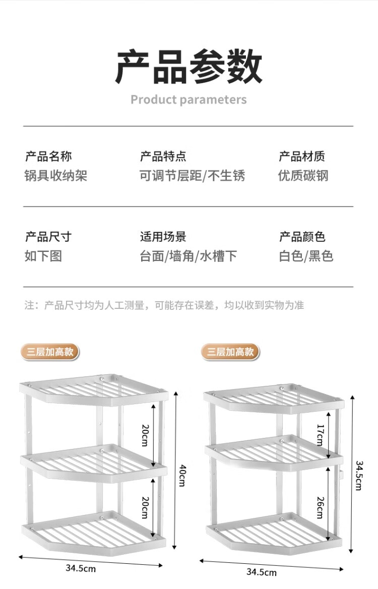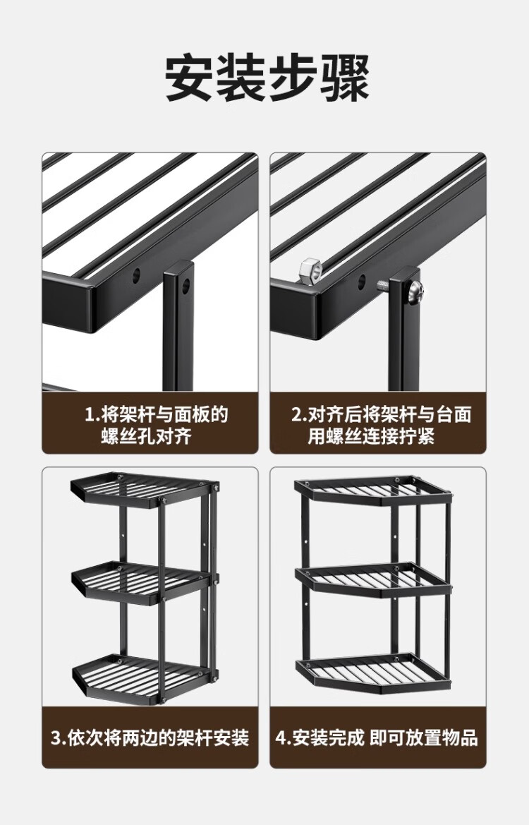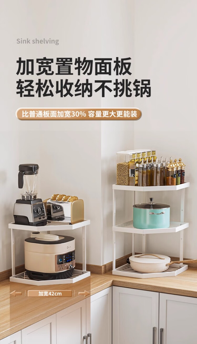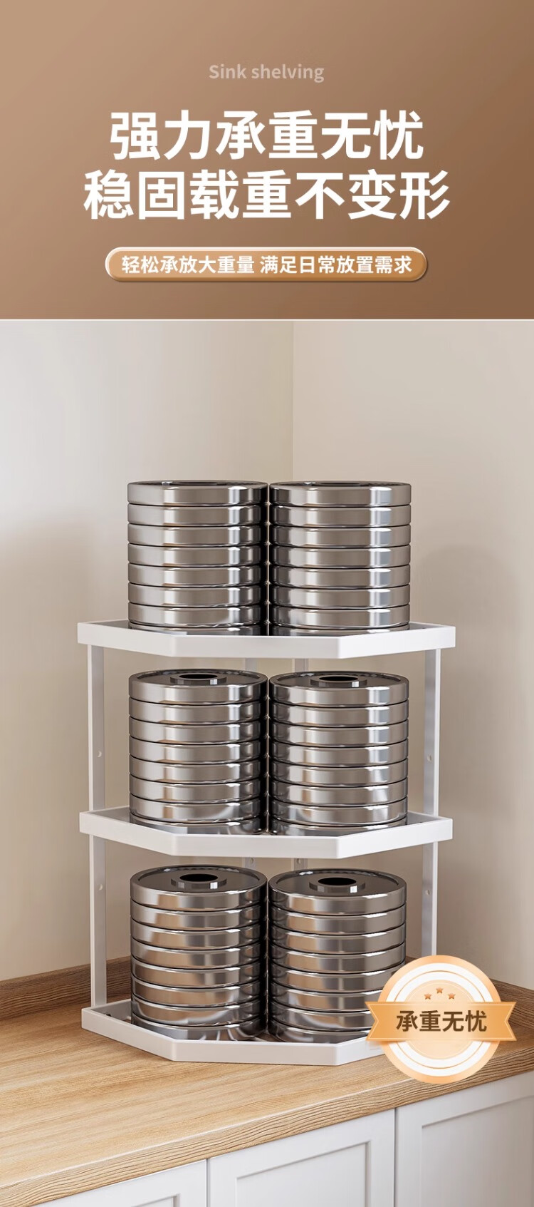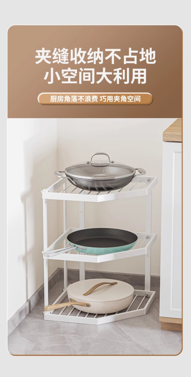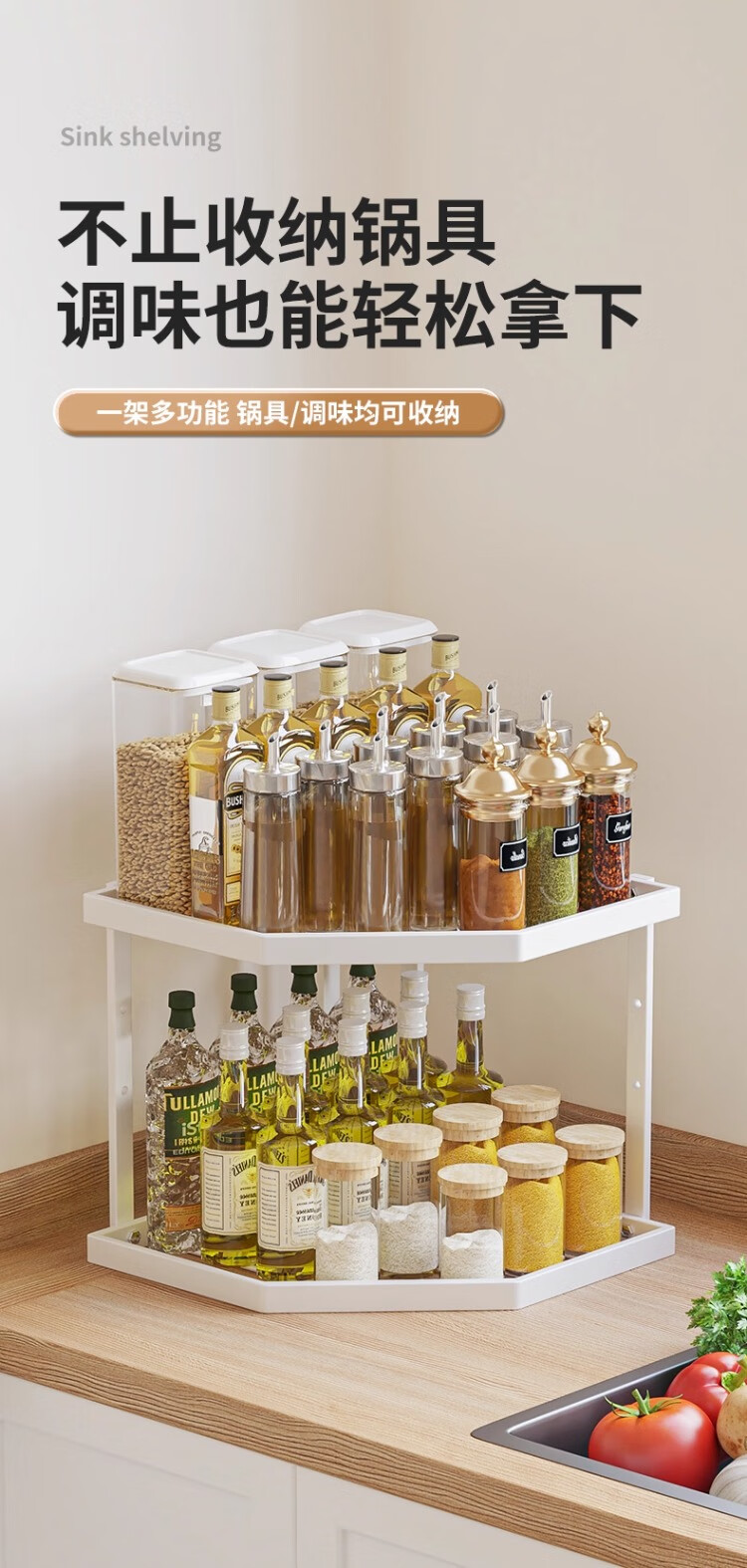 尔思家厨房锅具收纳架家用多层三脚架橱柜内分层下水槽转角多功能调料架 黑色双层标准