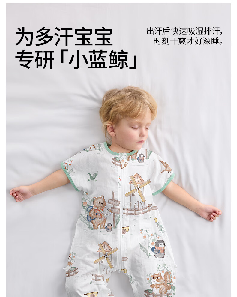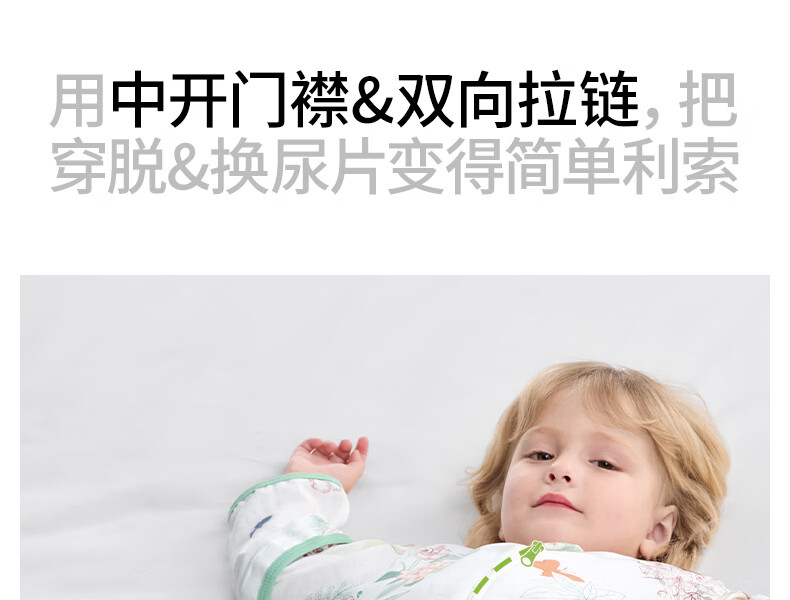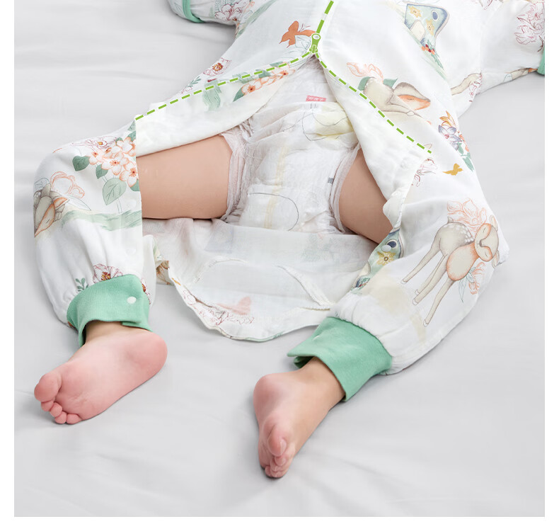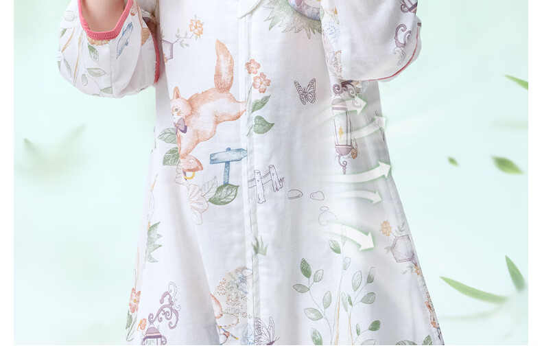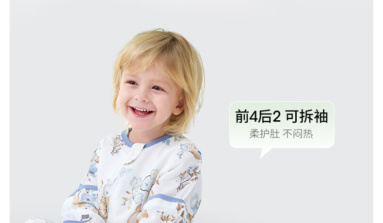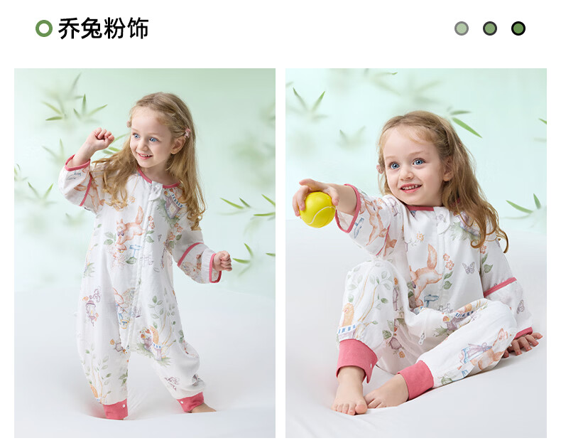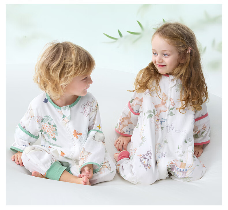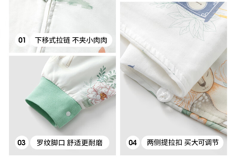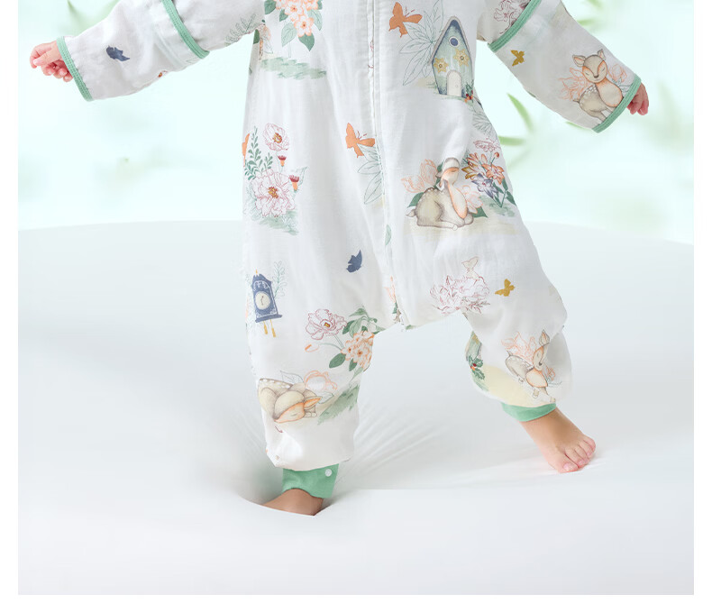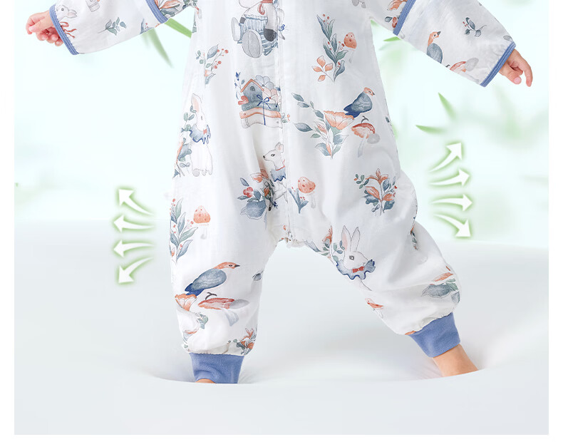 贝肽斯儿童睡袋春秋竹棉纱布宝宝睡衣分腿婴儿防踢被睡袋前6后4乔兔 L