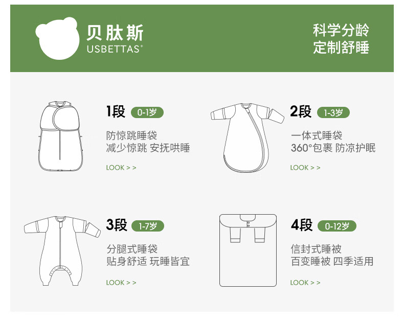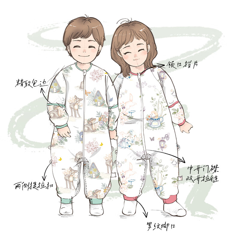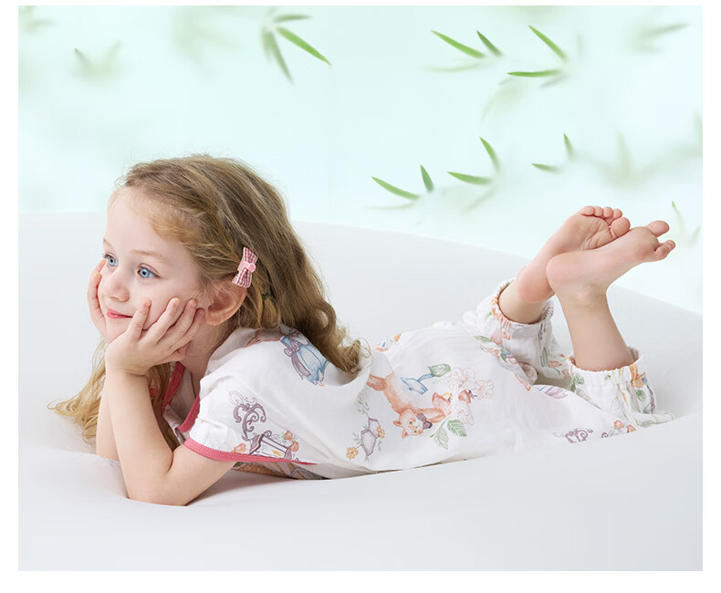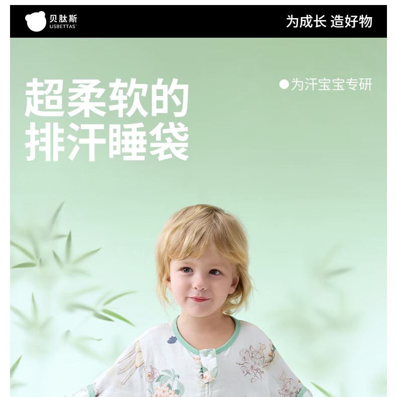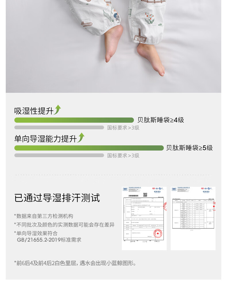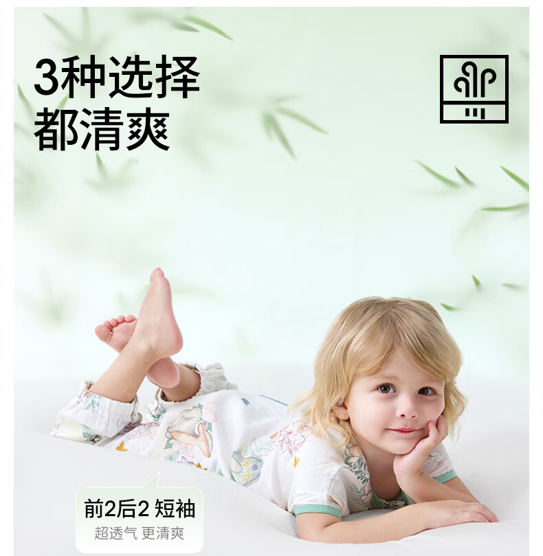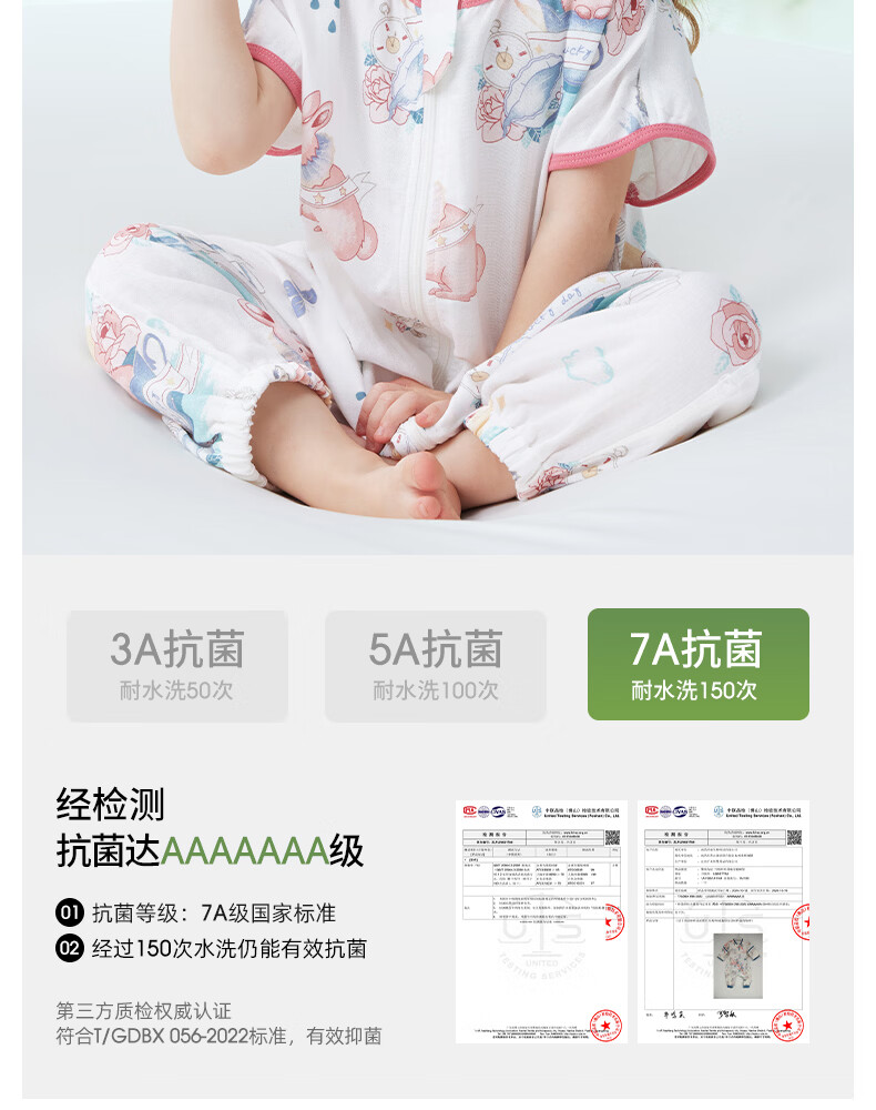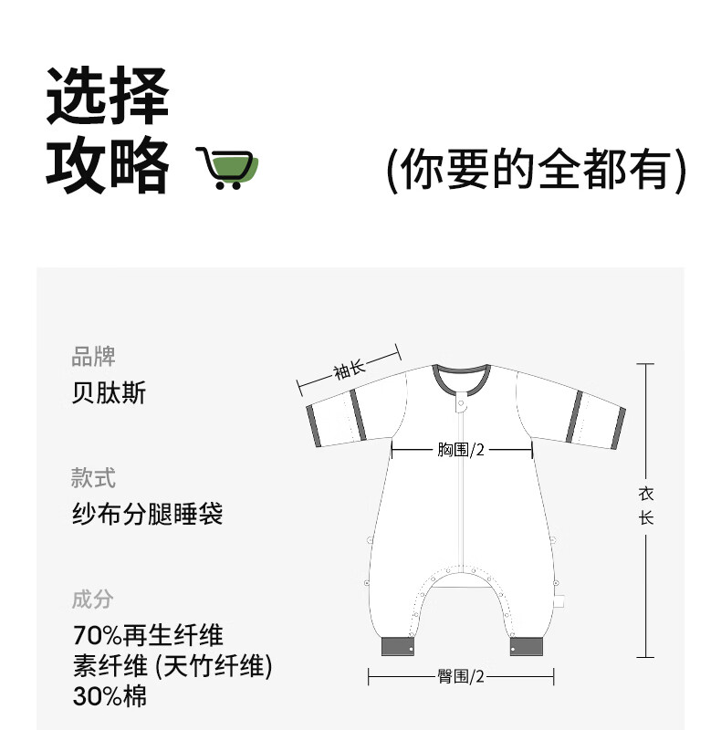 贝肽斯儿童睡袋春秋竹棉纱布宝宝睡衣分腿婴儿防踢被睡袋前6后4乔兔 L