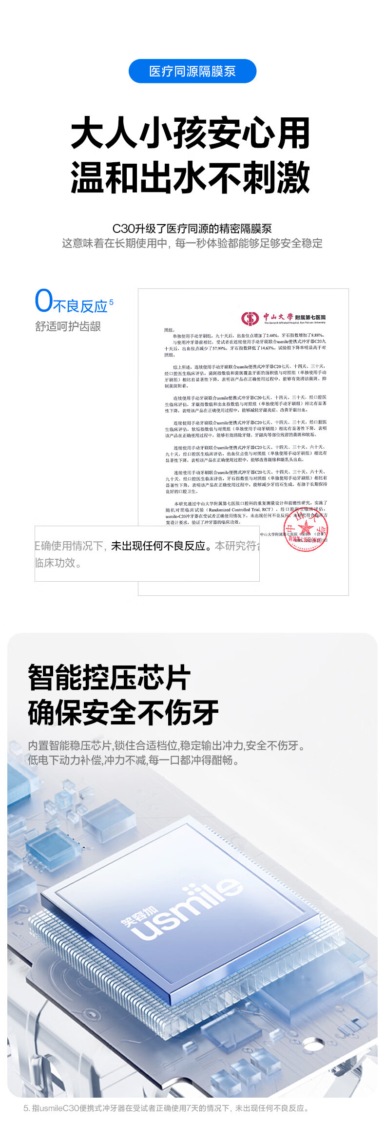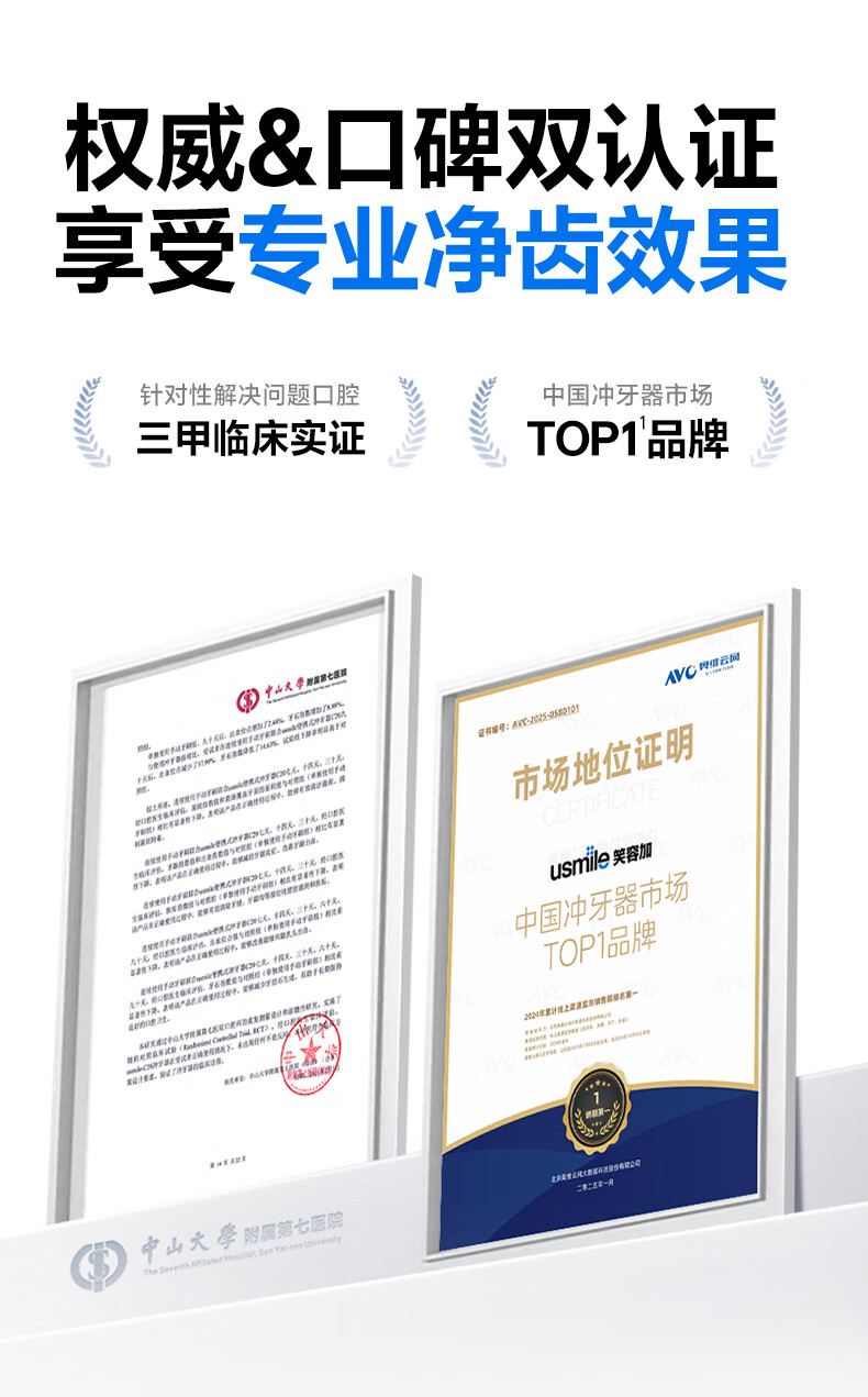usmile笑容加冲牙器 超声波洁牙器 牙齿冲洗器 含氟刷丝洗牙器水牙线 C30澄月黄
