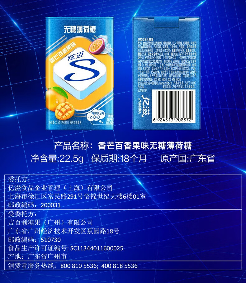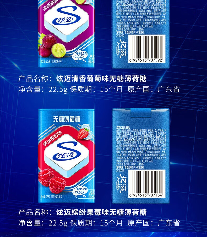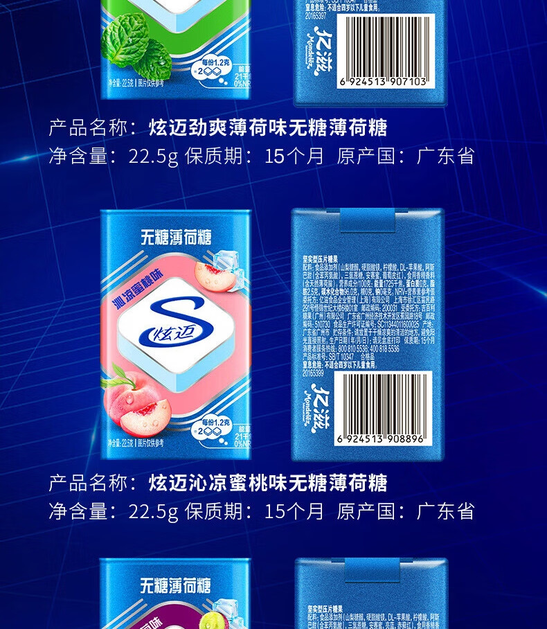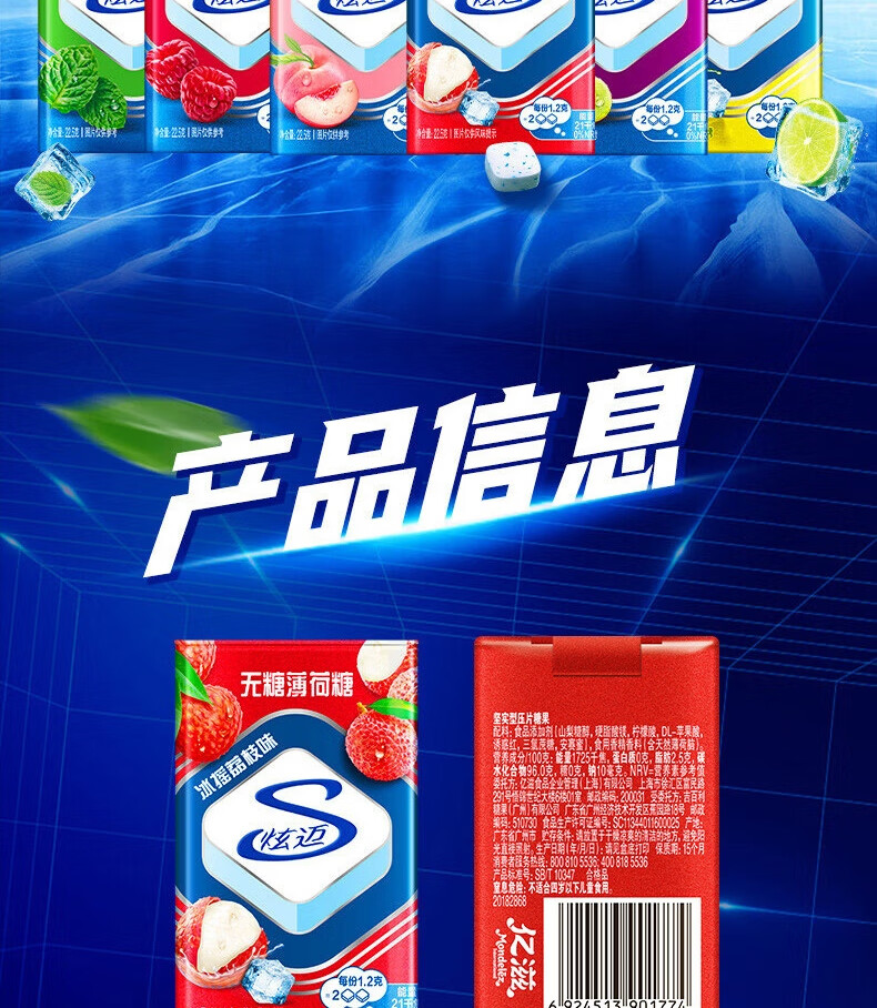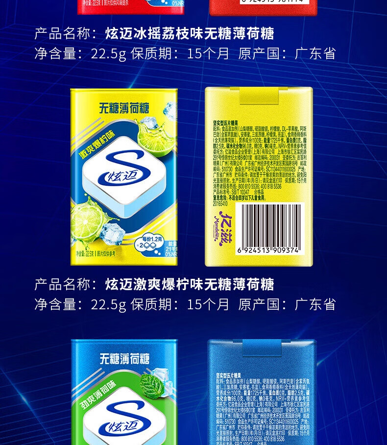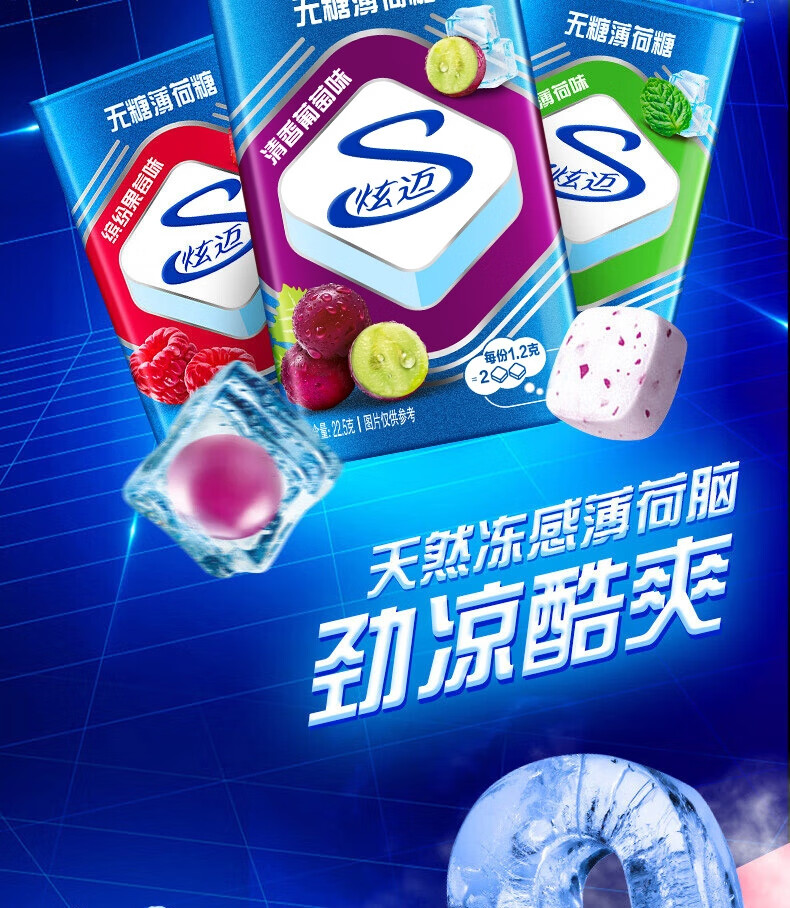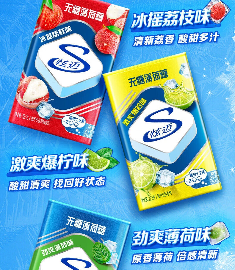炫迈 无糖薄荷糖 激爽爆柠味 22.5g 糖果休闲零食 清新口气 冰凉酷爽