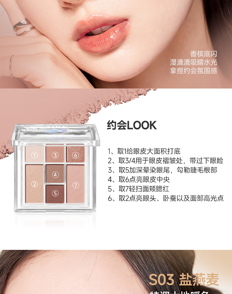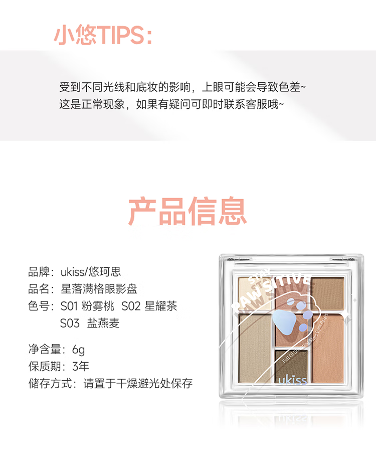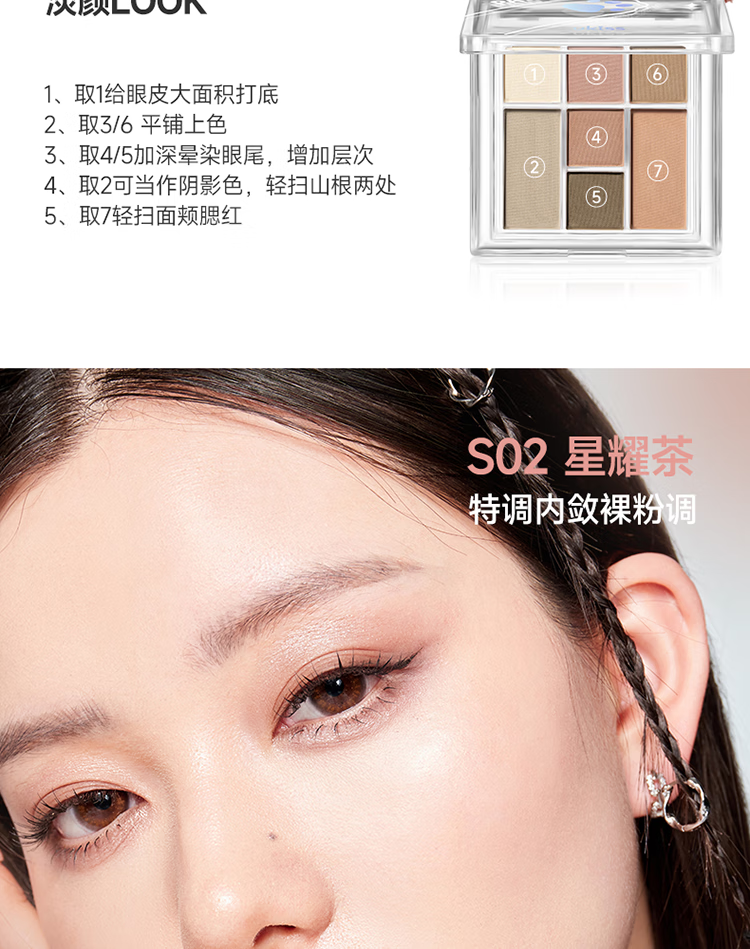 悠珂思(ukiss)眼影盘七色2024年新款日常淡妆彩妆大地色哑光亮片高光女神节礼物 S02 星耀茶6g