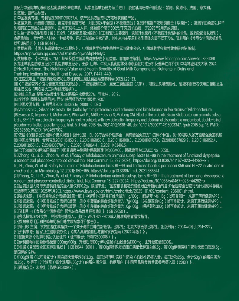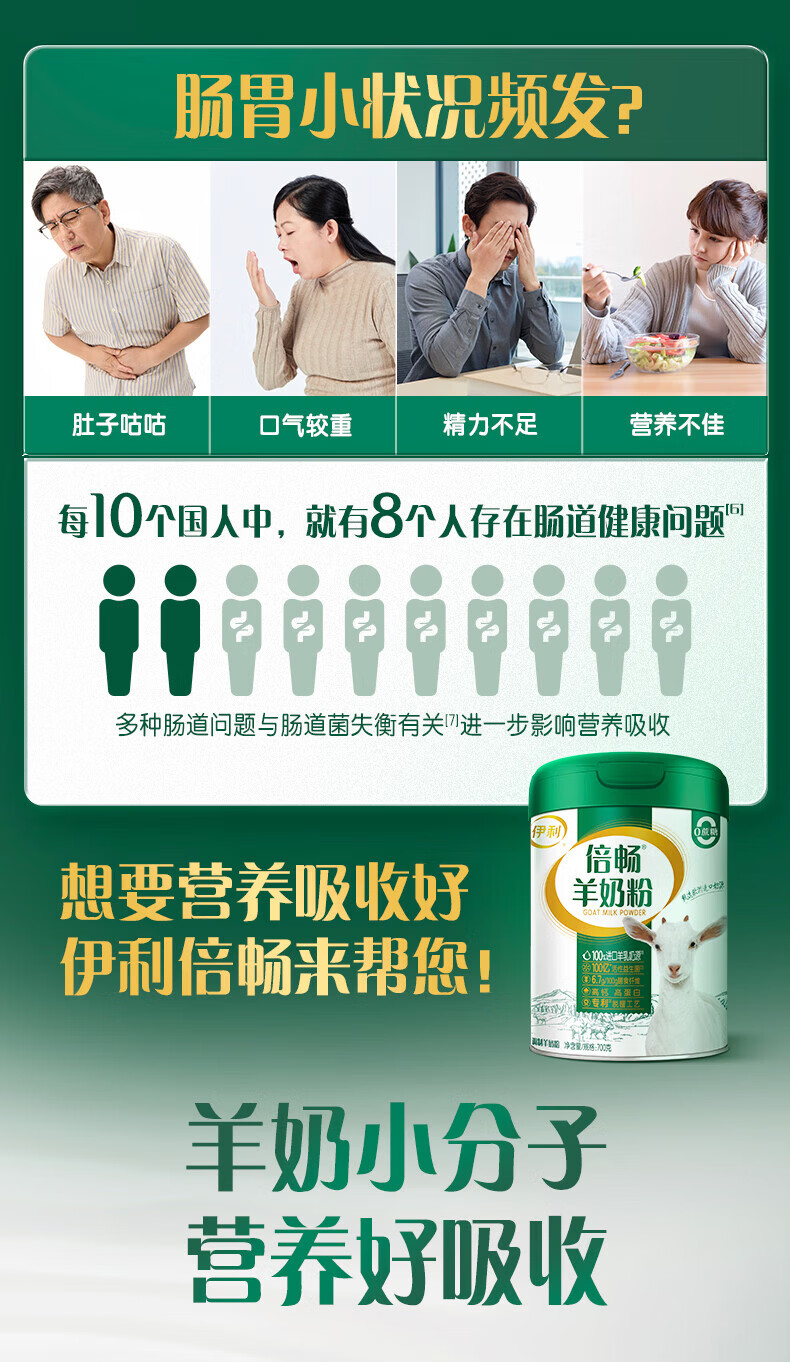 伊利倍畅羊高钙高蛋白奶粉 专利脱膻工艺 富含益生菌膳食纤维 【买五期送一期】羊奶选倍畅-700g