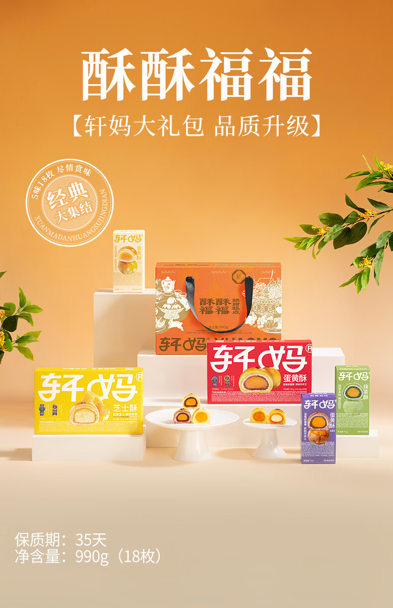轩妈蛋黄酥大团圆糕点礼盒990g新鲜72h现做年货春节送大礼包厂家直发