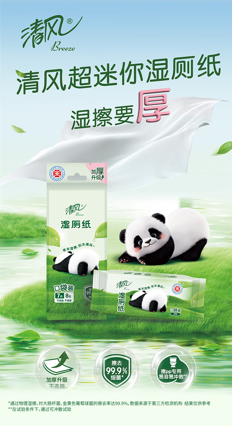 清风【李昀锐同款】超迷你湿厕纸7片*8包56片小巧便携装 医护认证