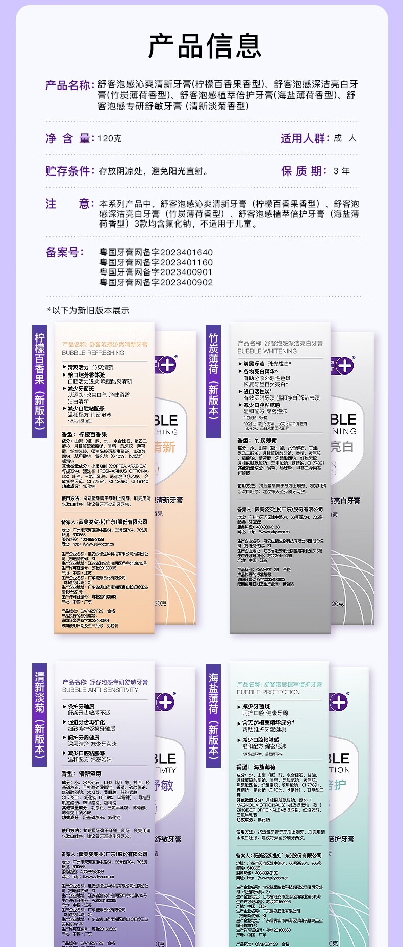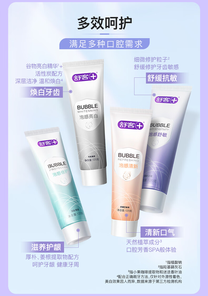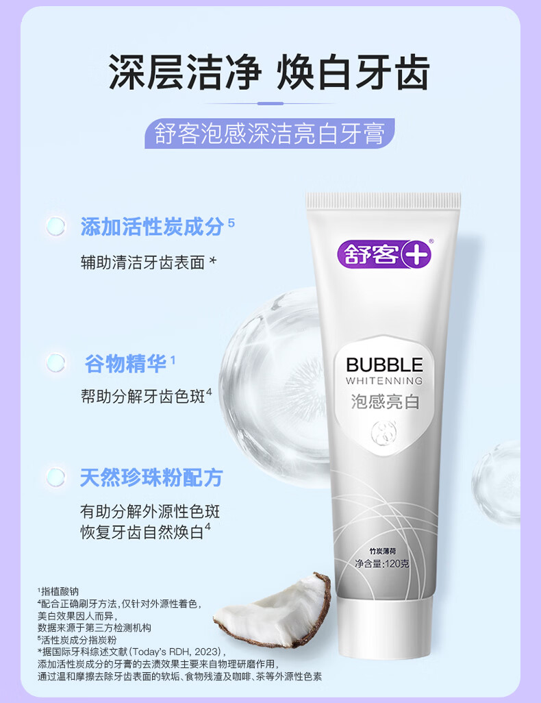 舒客牙膏流光氨基酸亮白竹炭含氟成人活性炭清新口气护龈男女家庭装 120g*3支+ 140g*1支