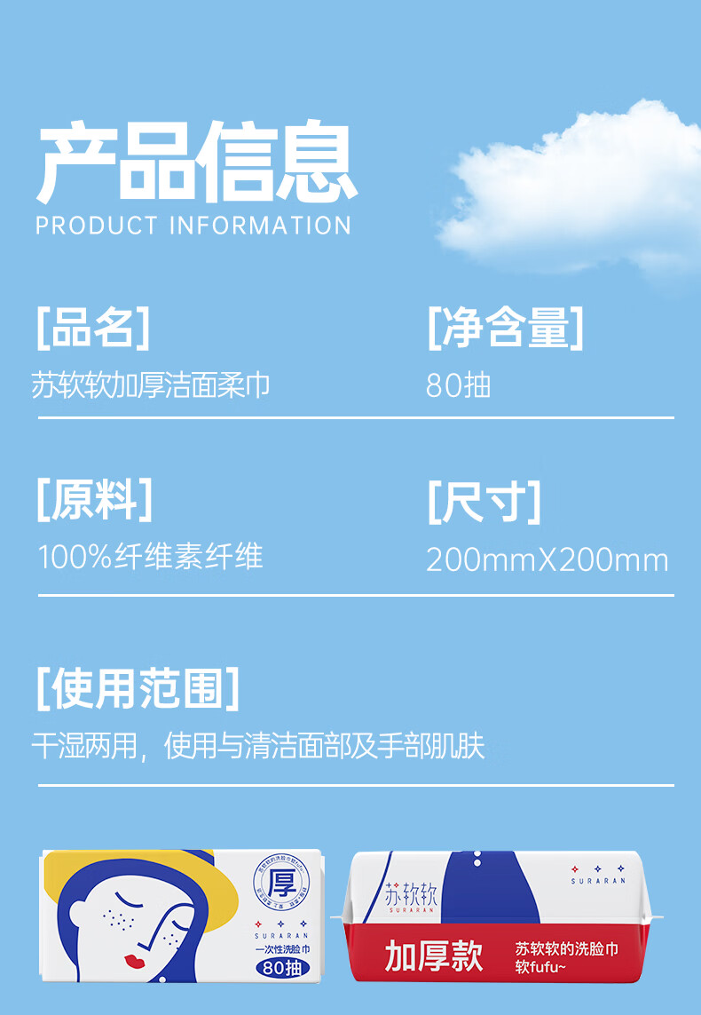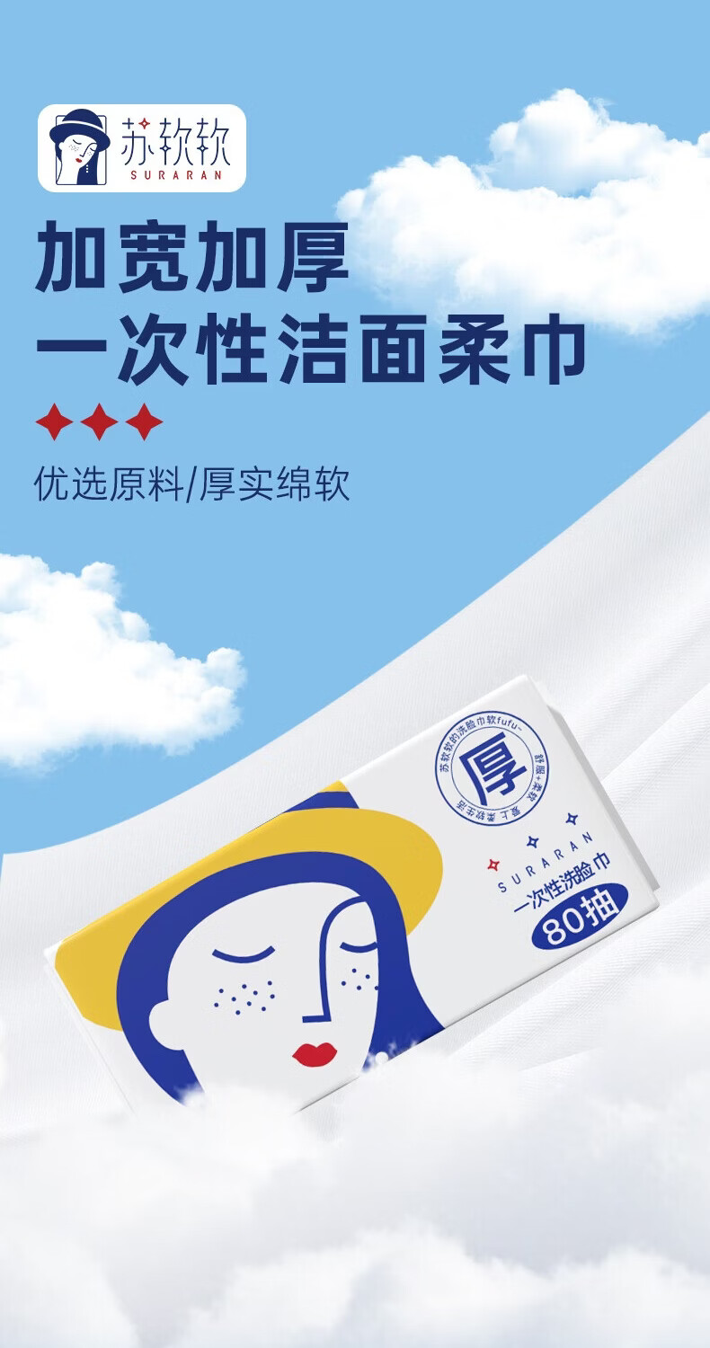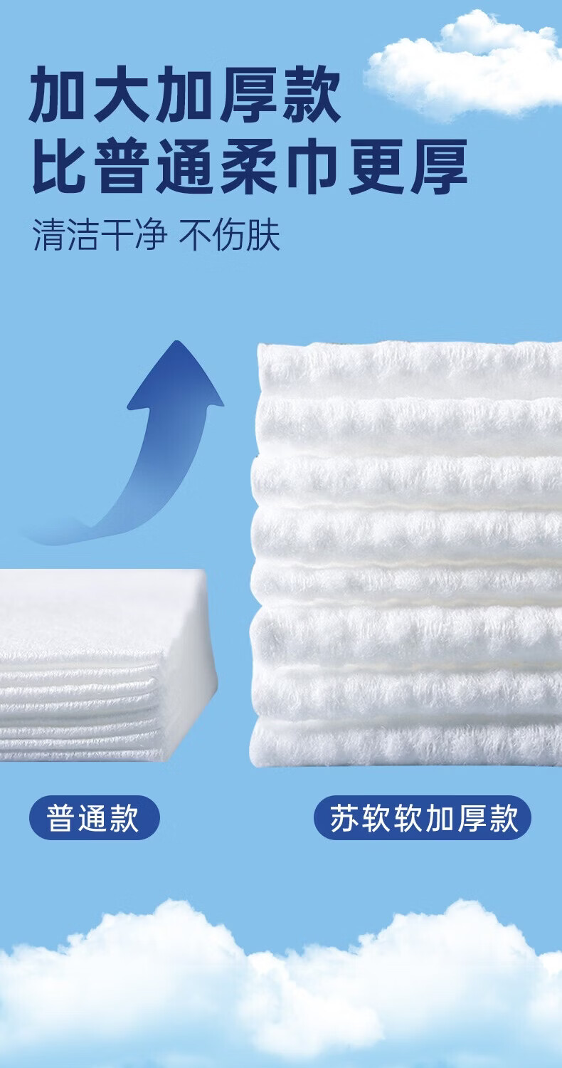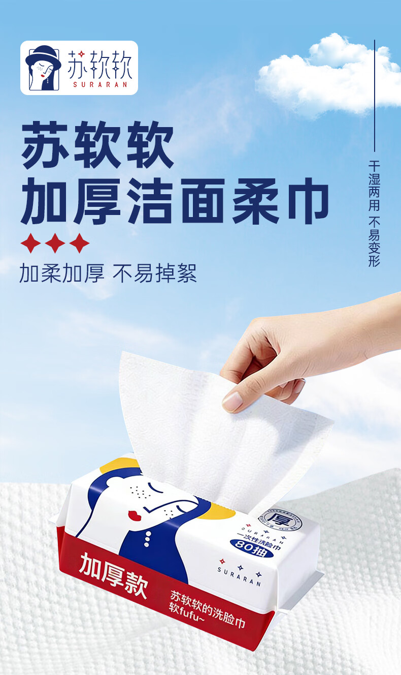 苏软软加厚加大洗脸巾一次性擦脸洁面洗面巾抽取式面巾纸 【加厚80抽*3包】共240抽送3包10抽湿厕纸