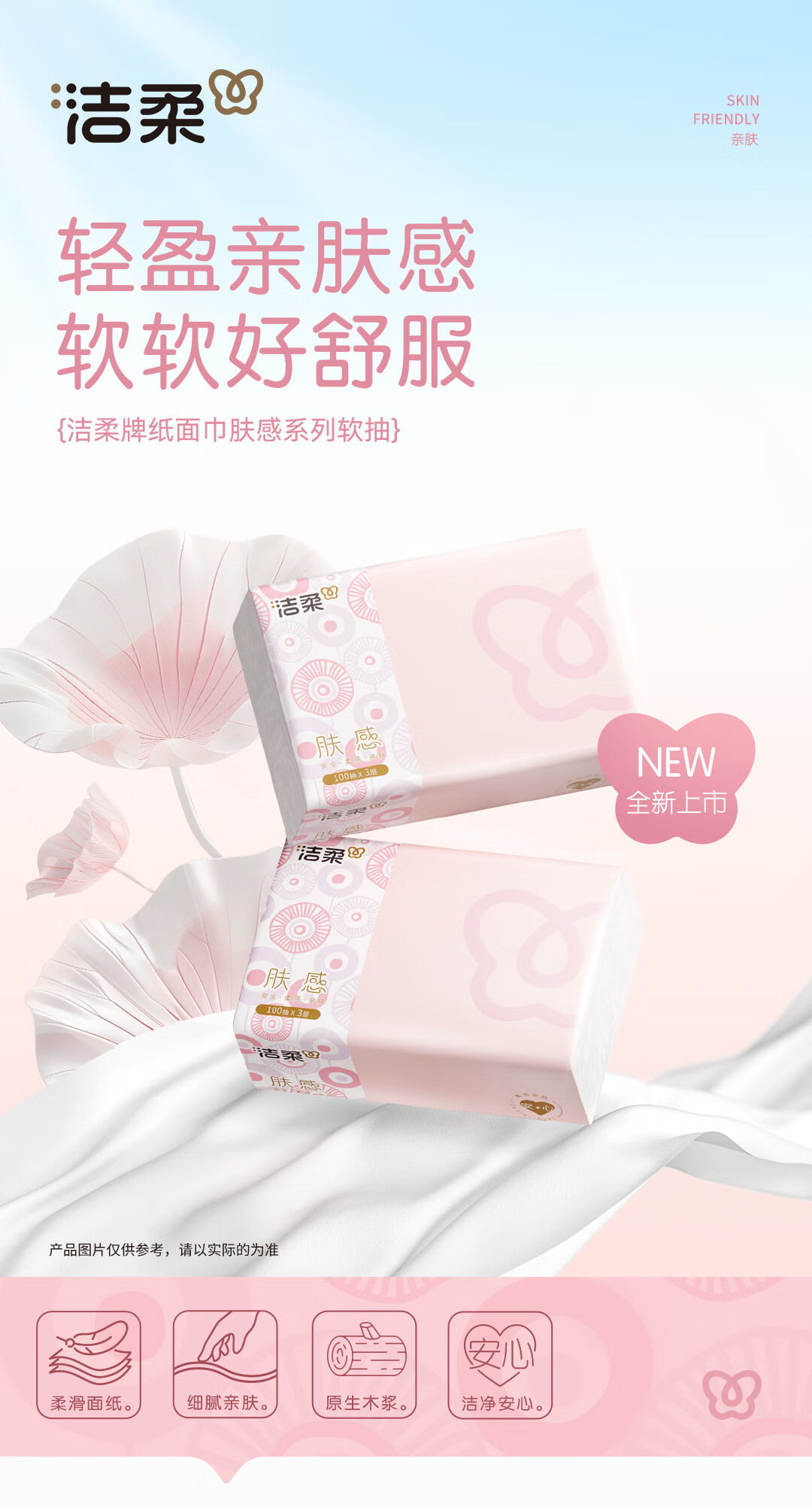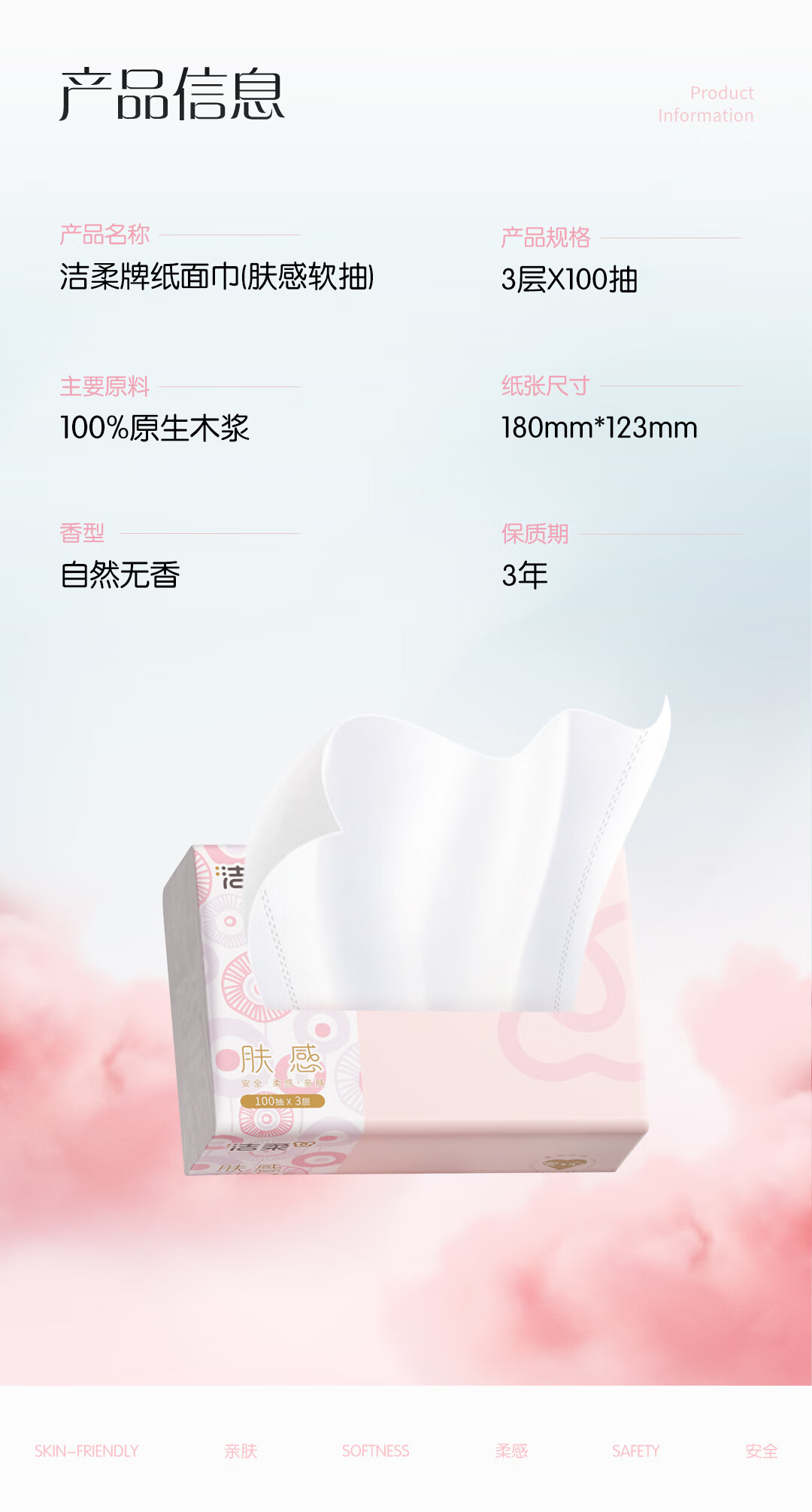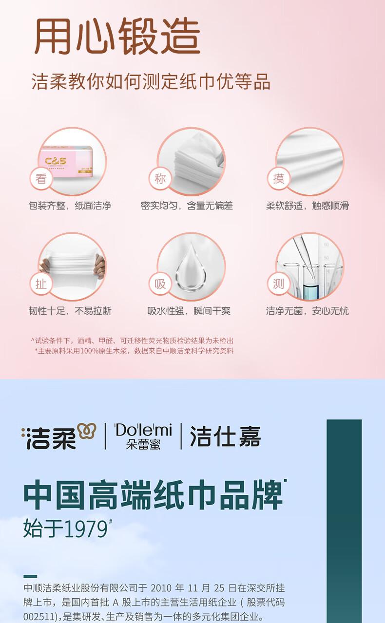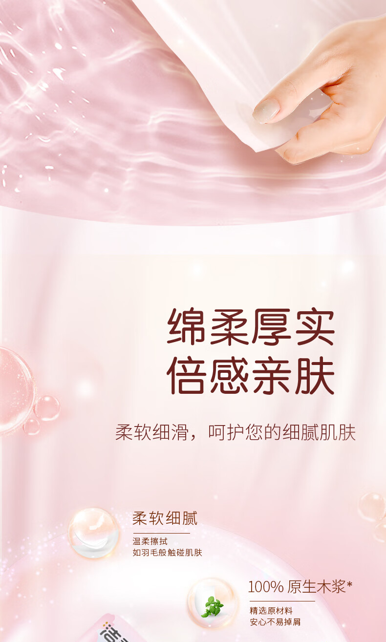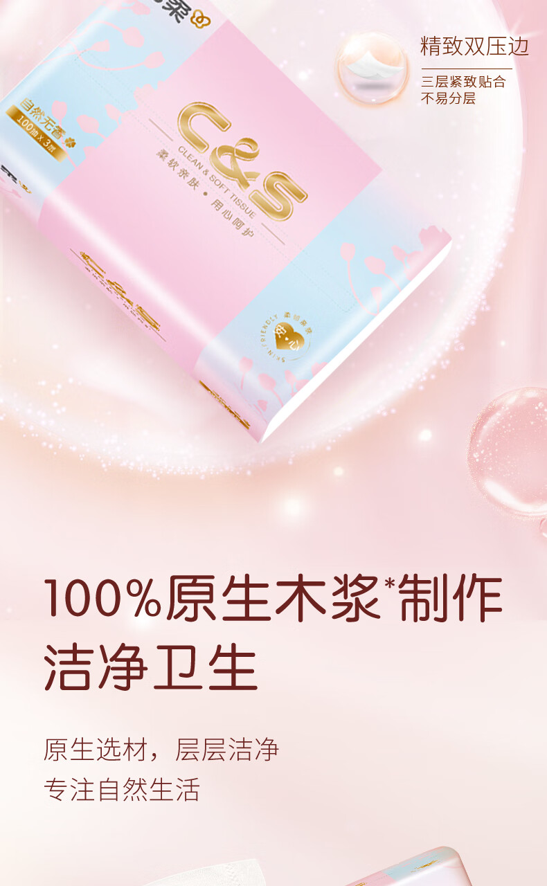 洁柔抽纸 3层100抽无香卫生纸 家用餐巾纸原生木浆纸巾湿水不易破 3层 100抽*2包