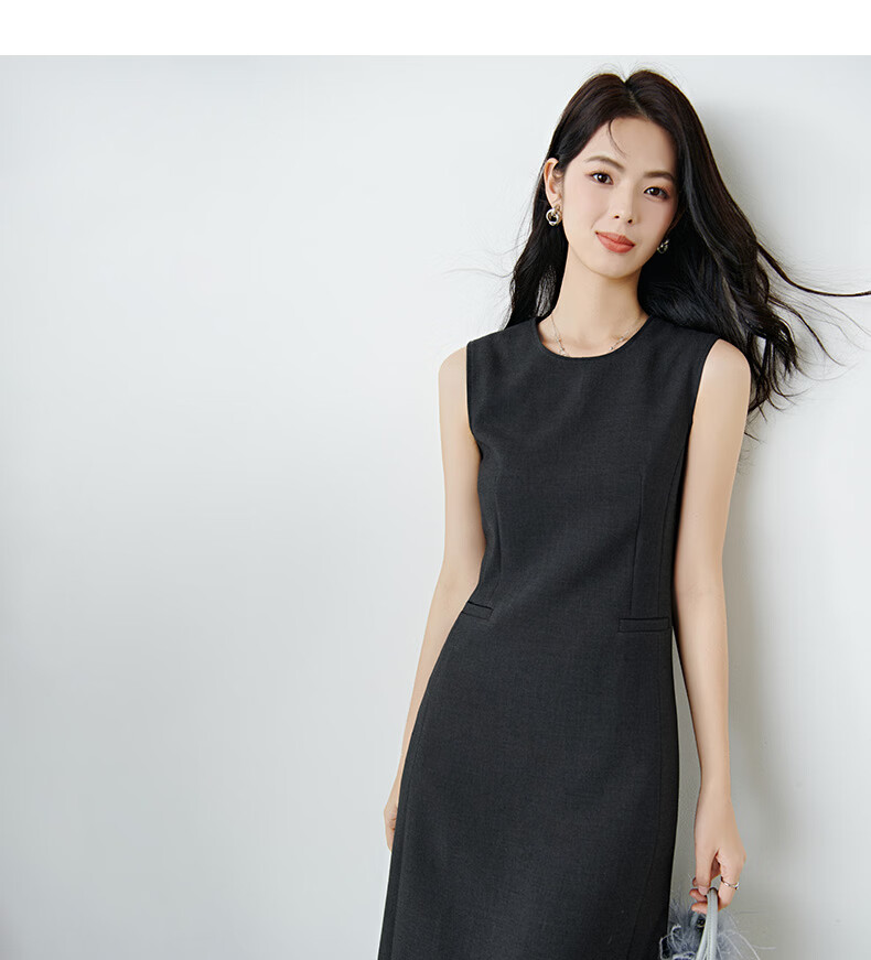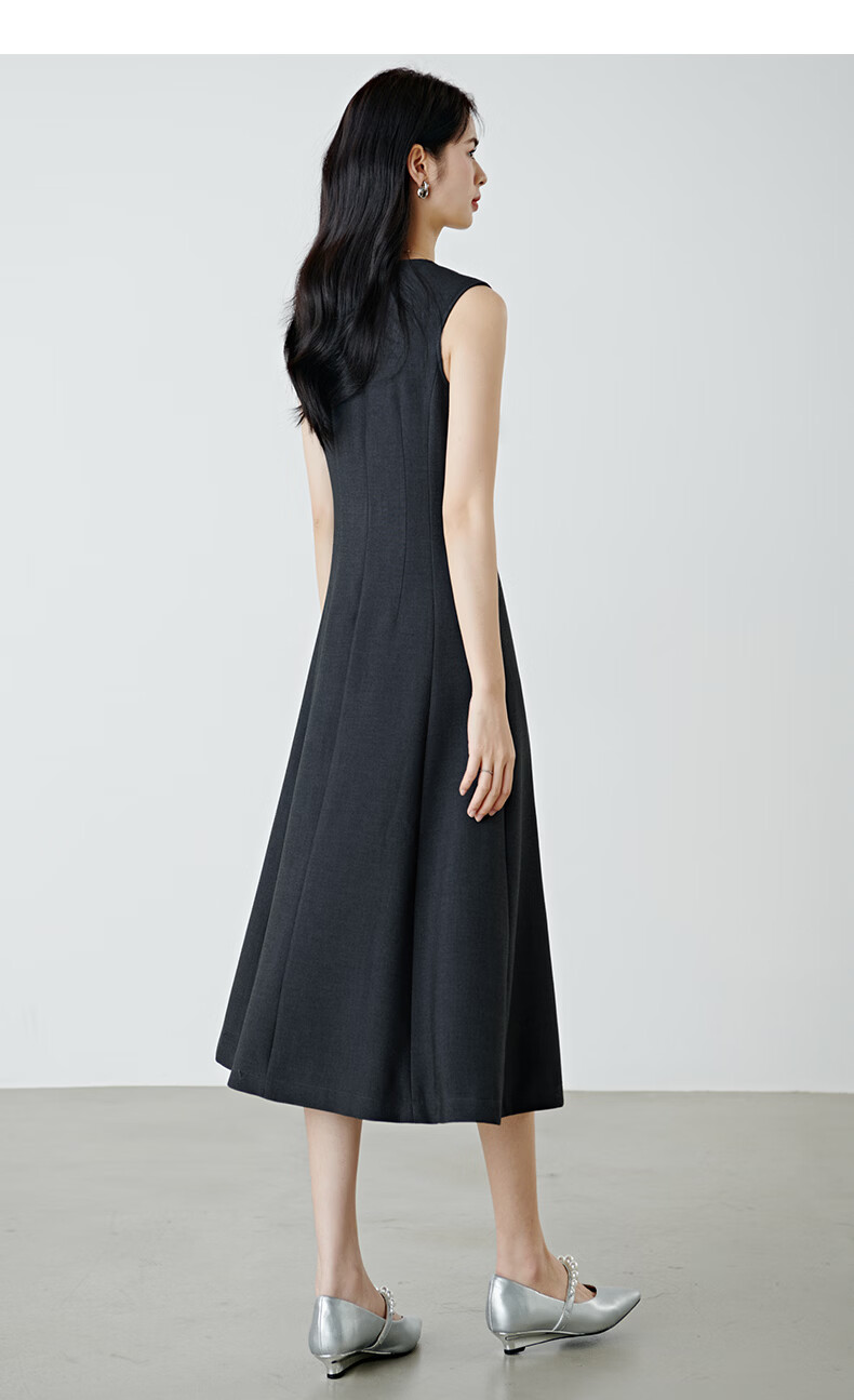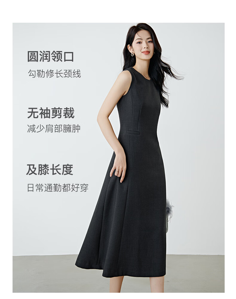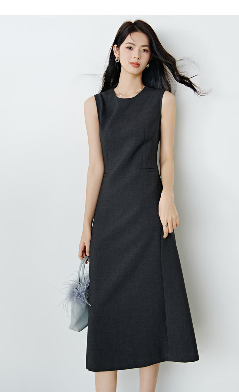 晚白【新品】2026年春款经典圆领裙子修身显瘦利落气质无袖连衣裙 深灰色 M