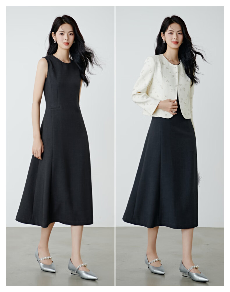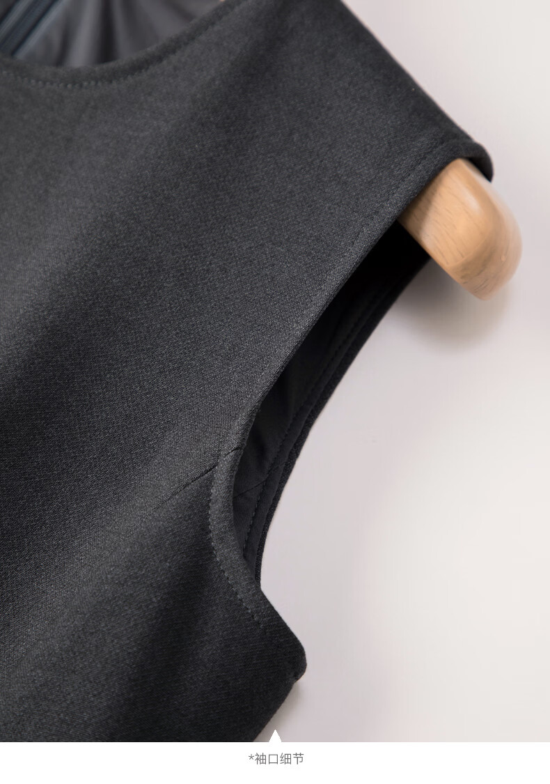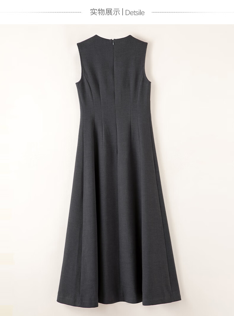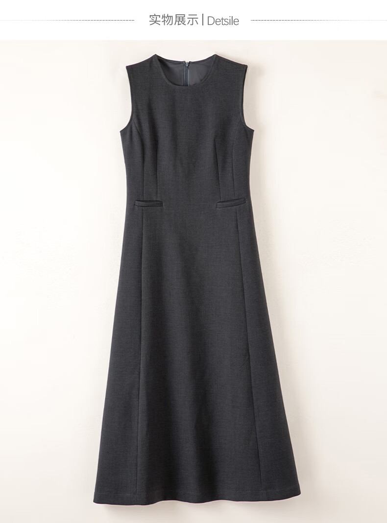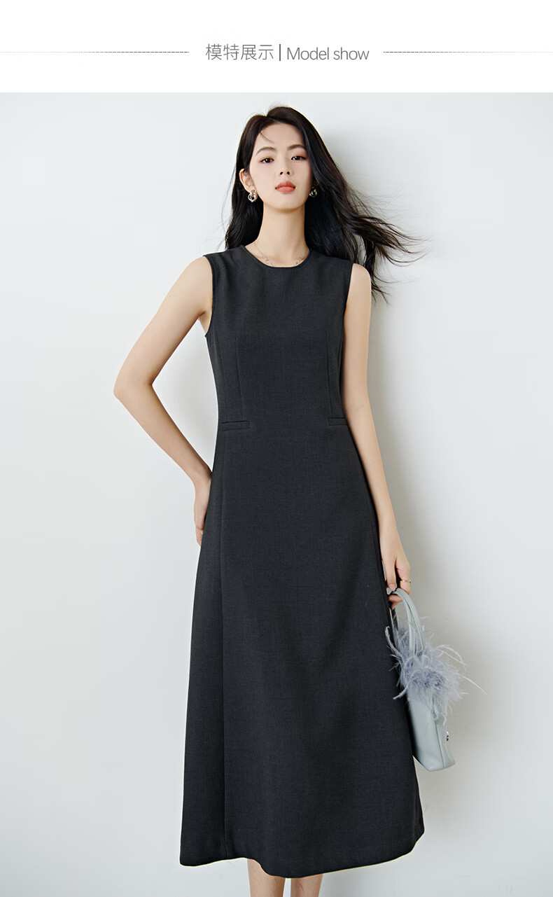晚白【新品】2026年春款经典圆领裙子修身显瘦利落气质无袖连衣裙 深灰色 M