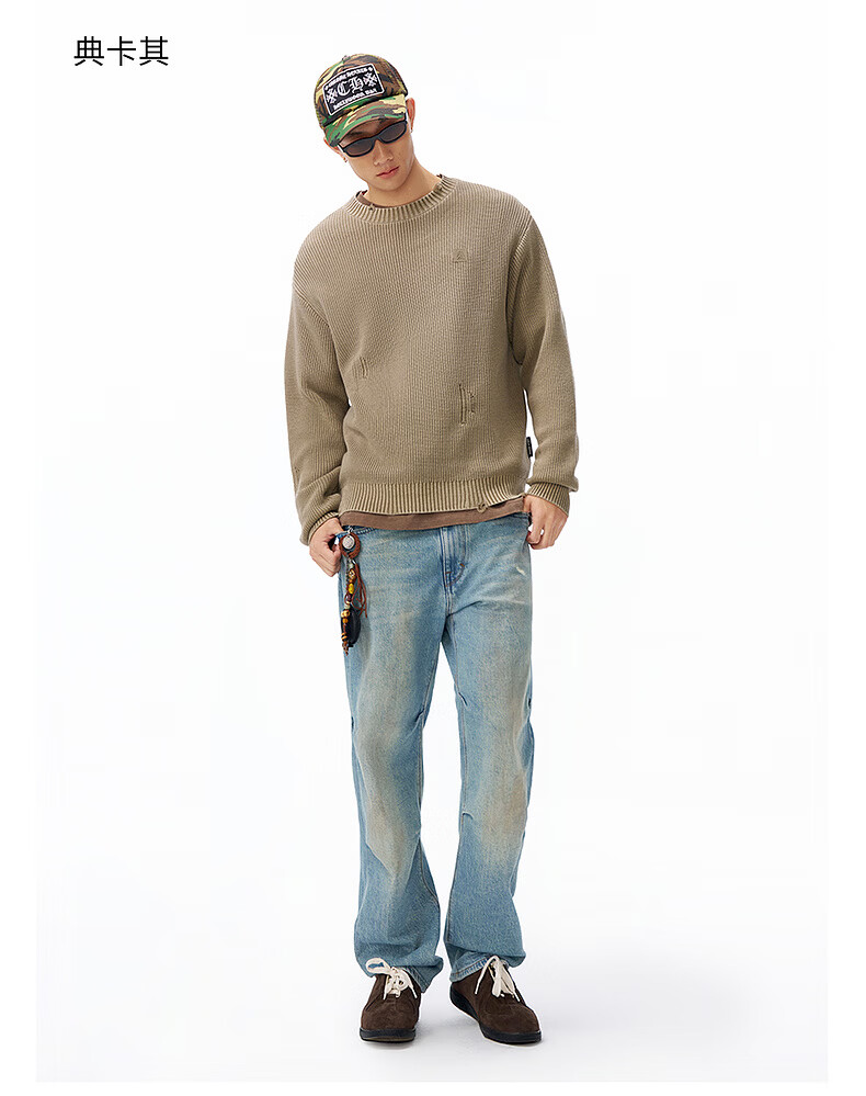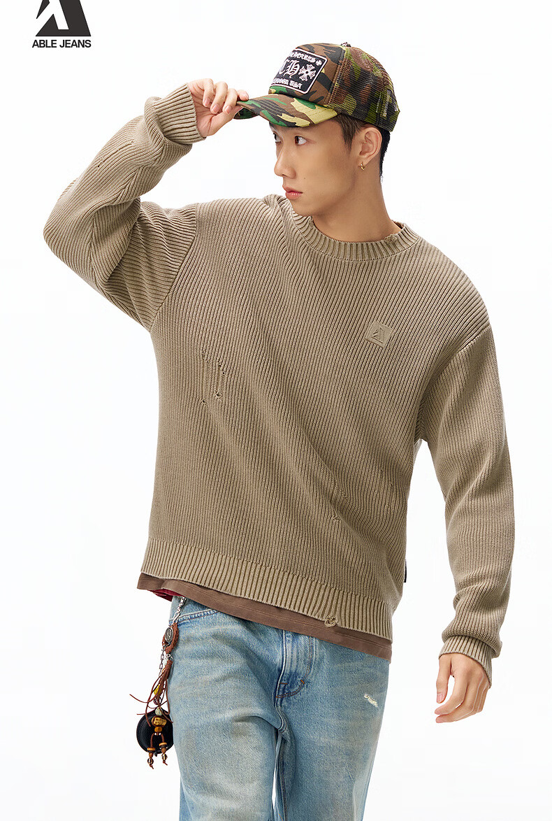 ABLE JEANS 26春新款宽松百搭男装高级质感内搭毛衣柔软透气个性潮流上衣 典卡其 /891002 XS