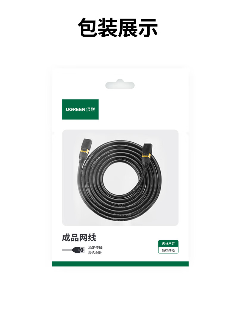绿联七类纯铜网线 CAT7类万兆屏蔽网络连接线 rog家用电脑宽带兼容2.5g 游戏电竞成品跳线0.5米11229