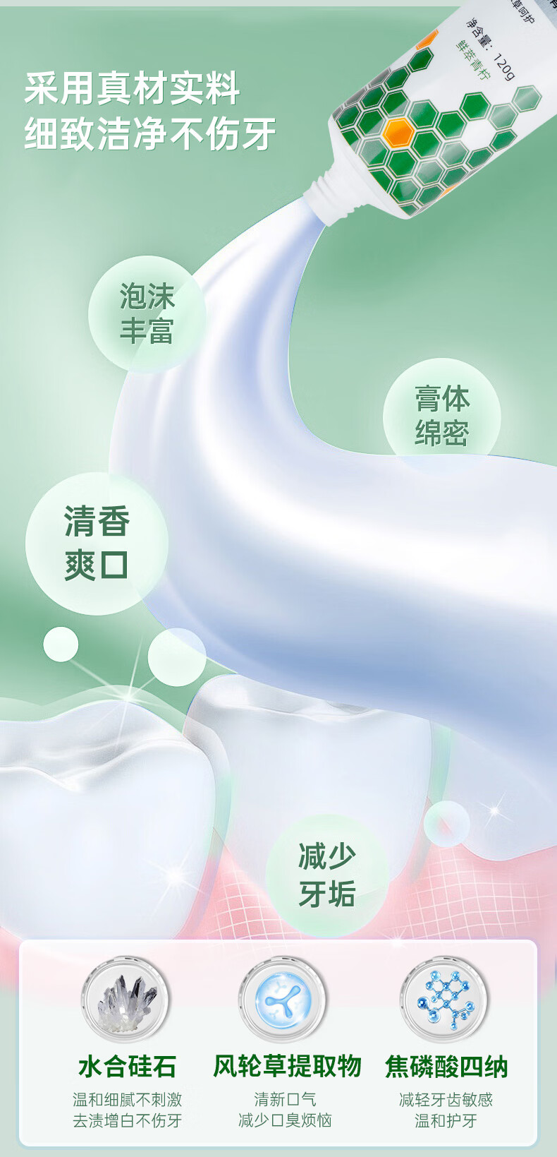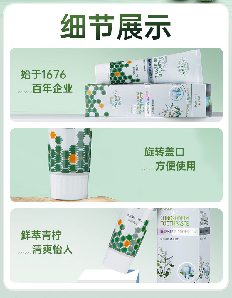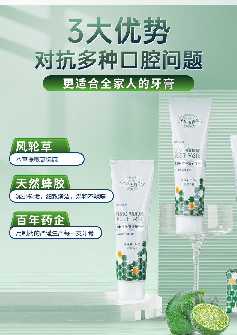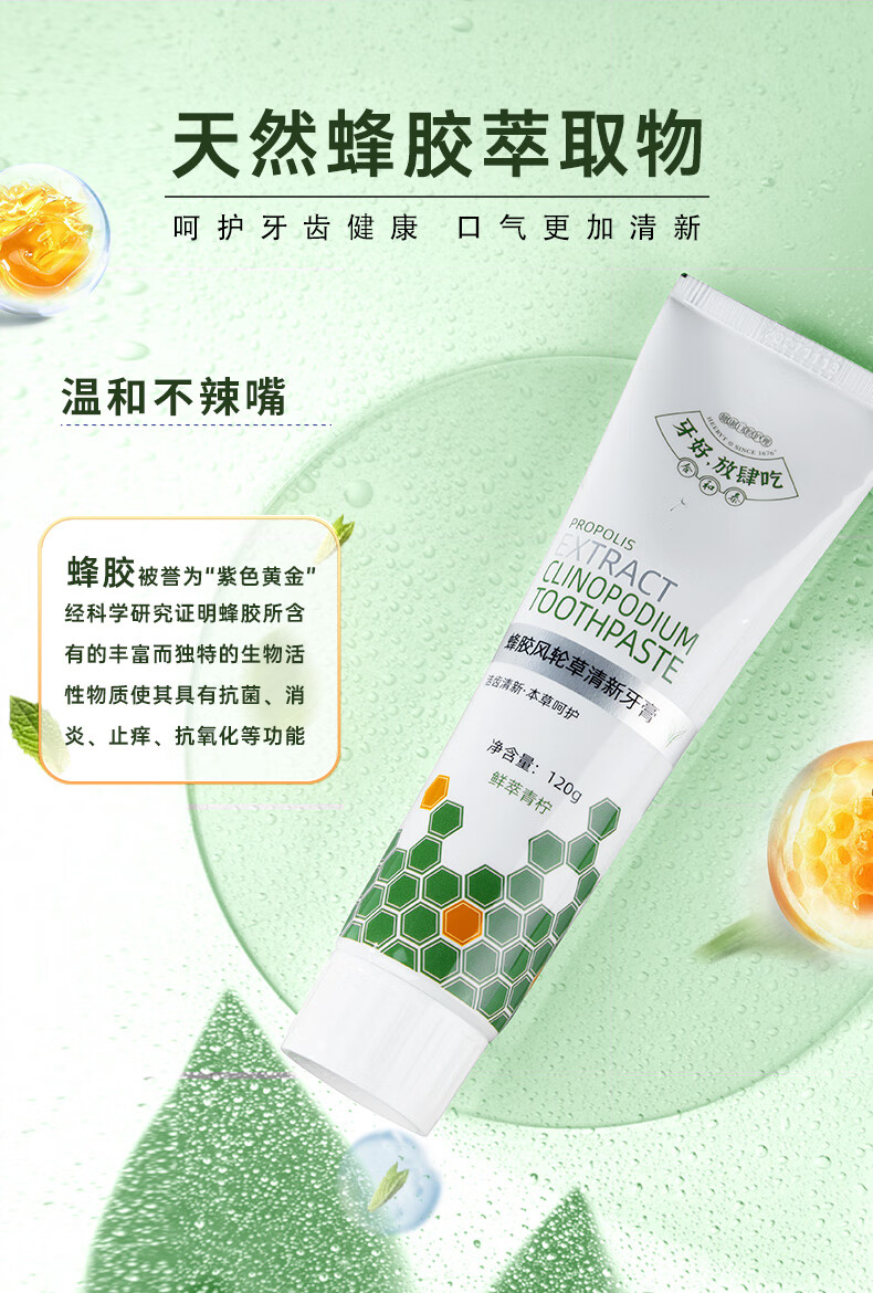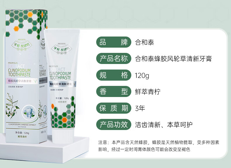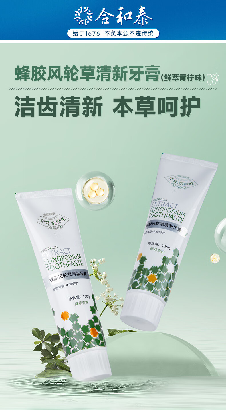 合和泰蜂胶风轮草清新牙膏 本草牙膏 平衡口腔菌群 清新口气牙膏 120g*4支【赠漱口水80ml】