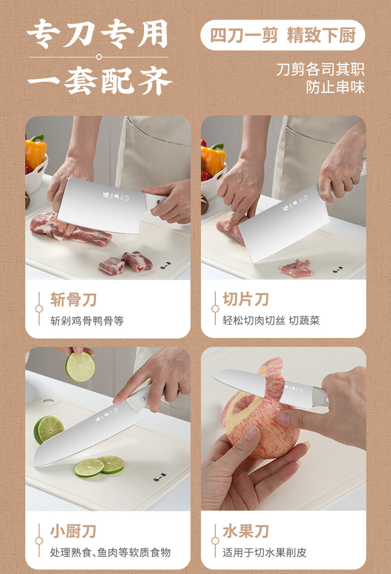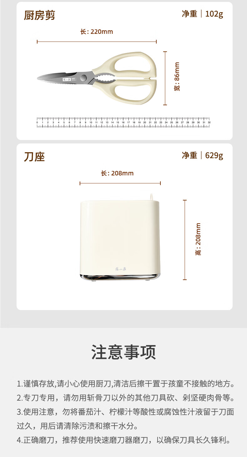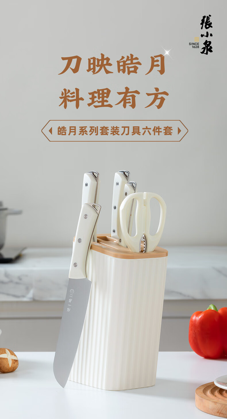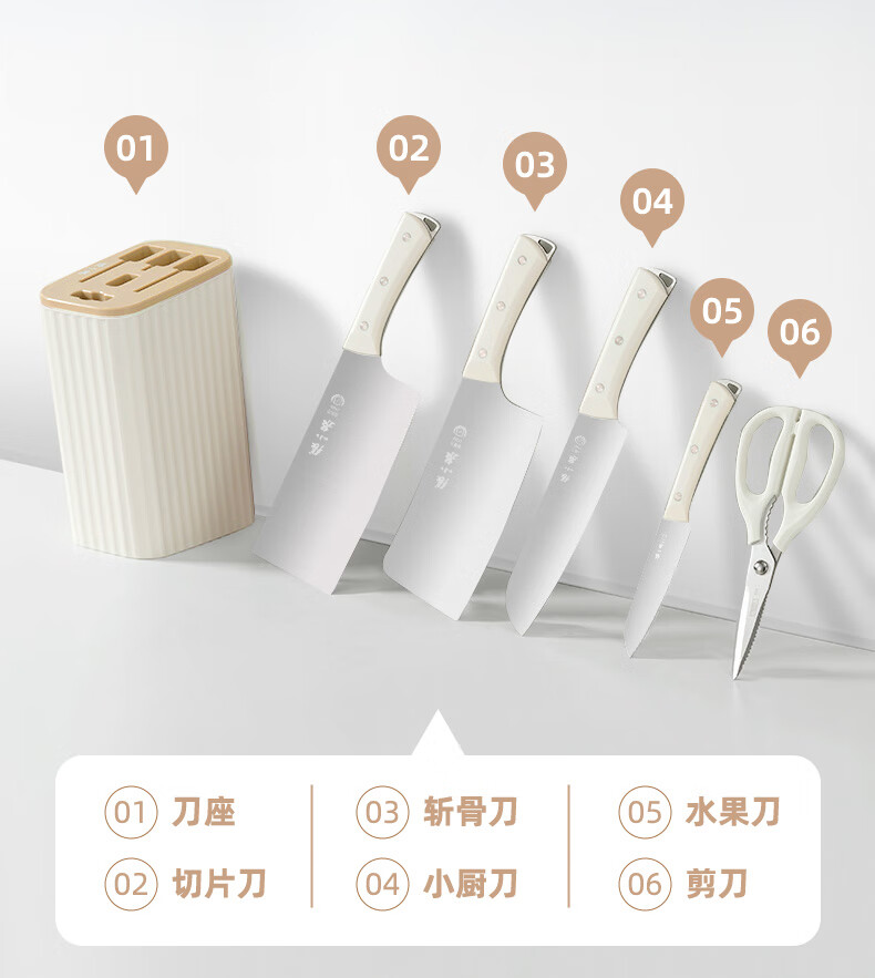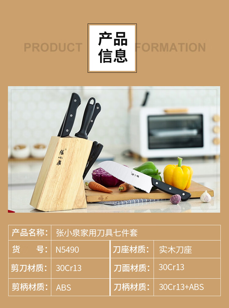 张小泉刀具套装 不锈钢家用套刀厨房菜刀切片刀小厨刀剪刀斩骨刀 家用七件套【经典实木】