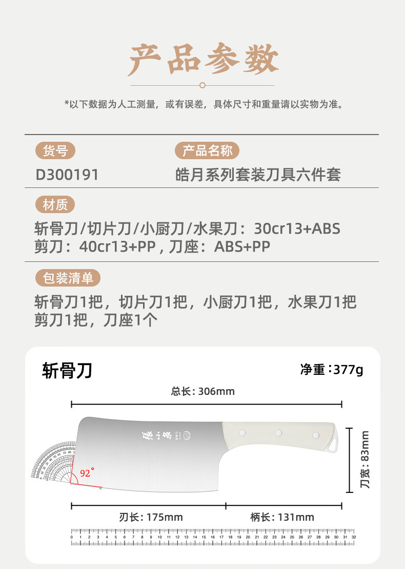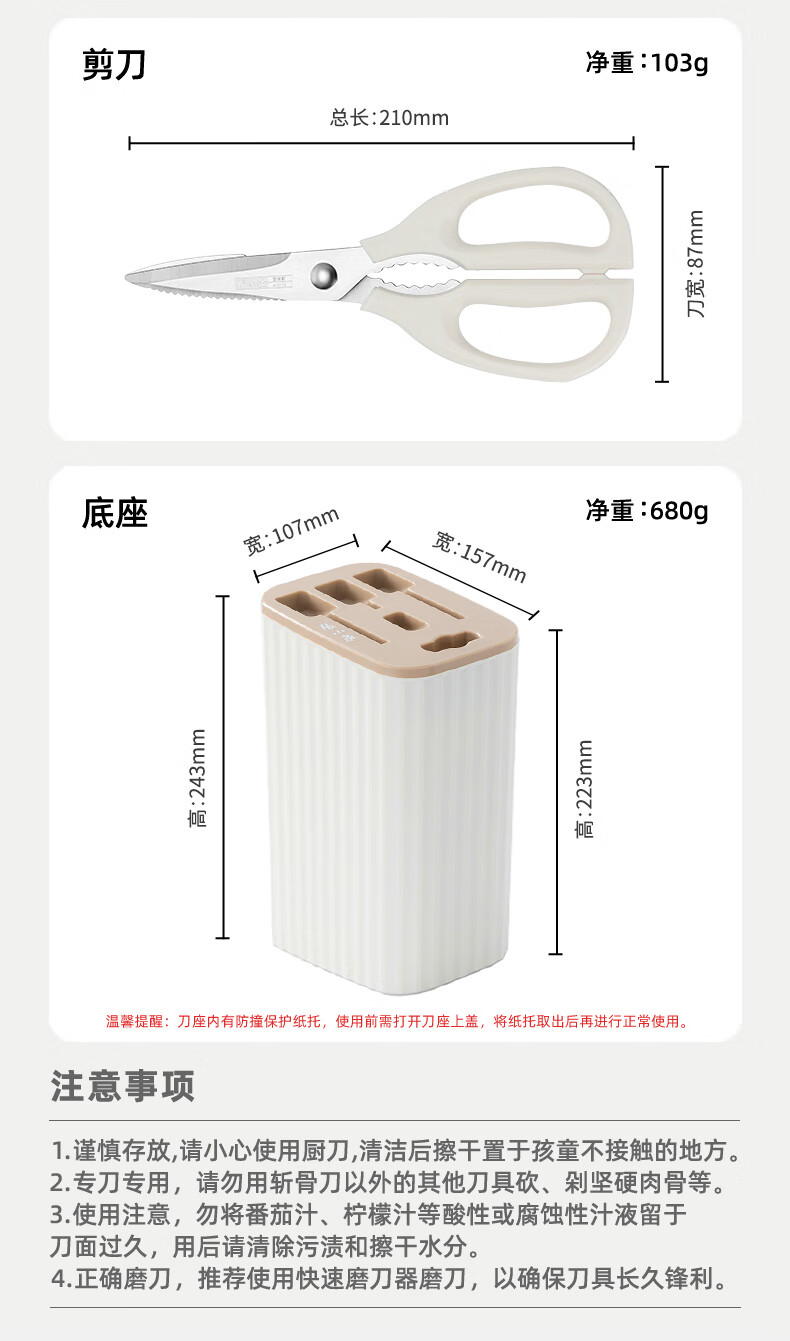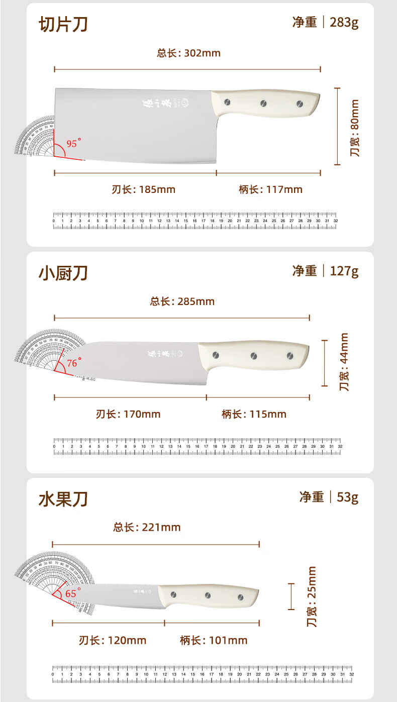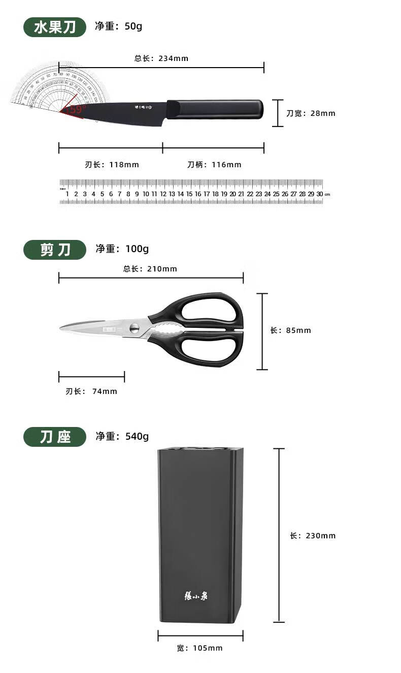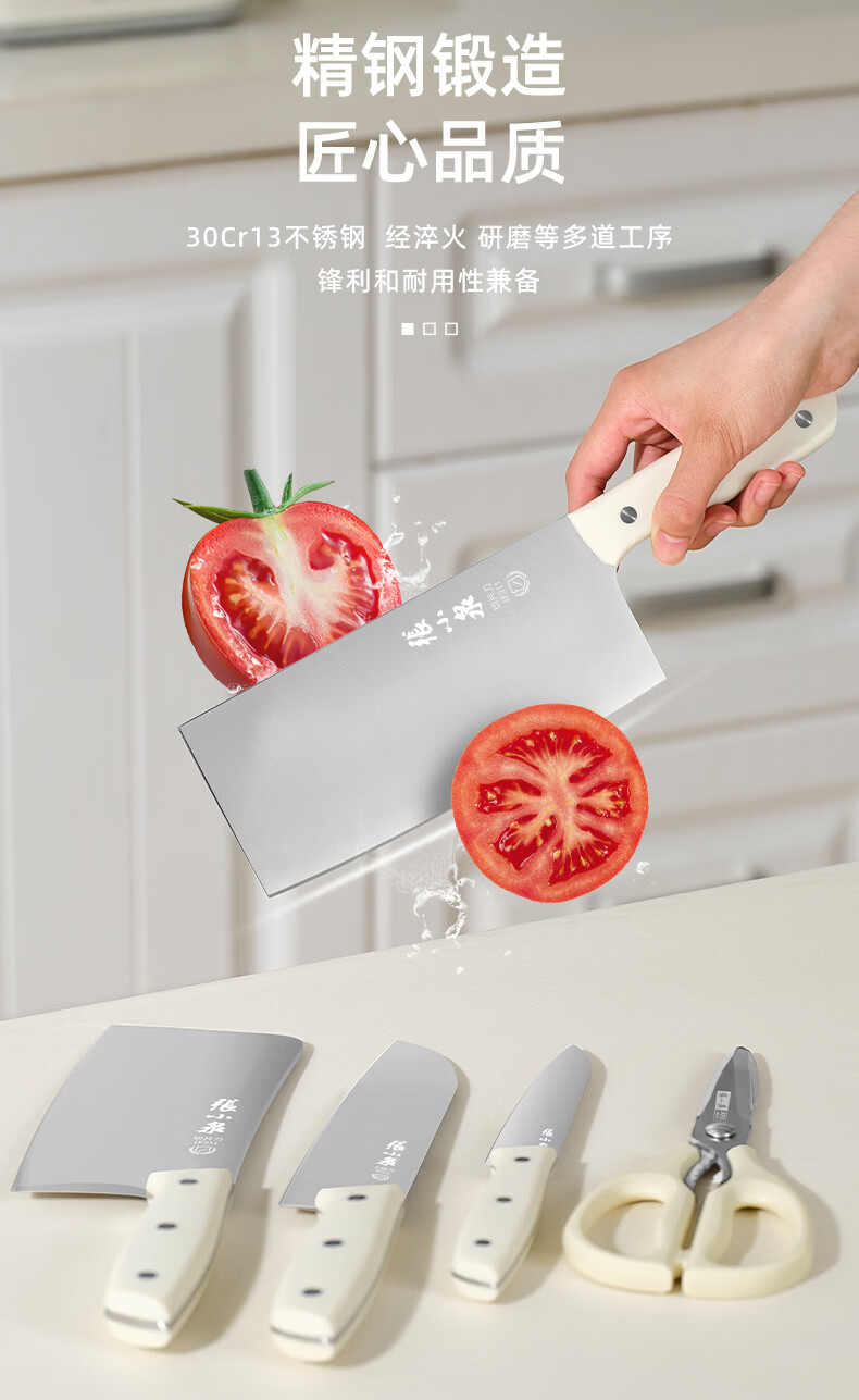 张小泉刀具套装 不锈钢家用套刀厨房菜刀切片刀小厨刀剪刀斩骨刀 家用七件套【经典实木】