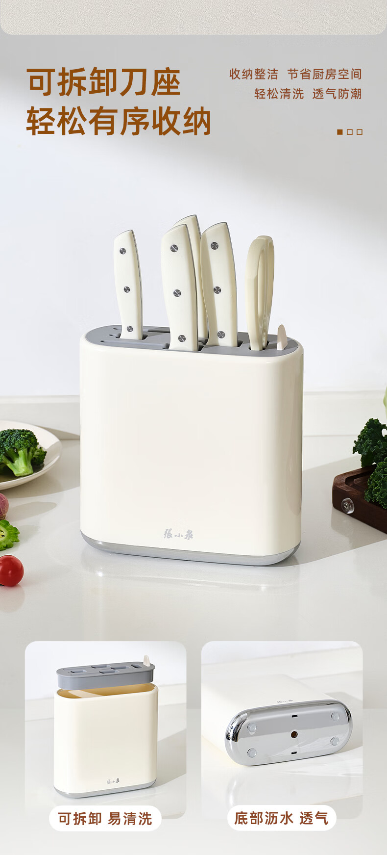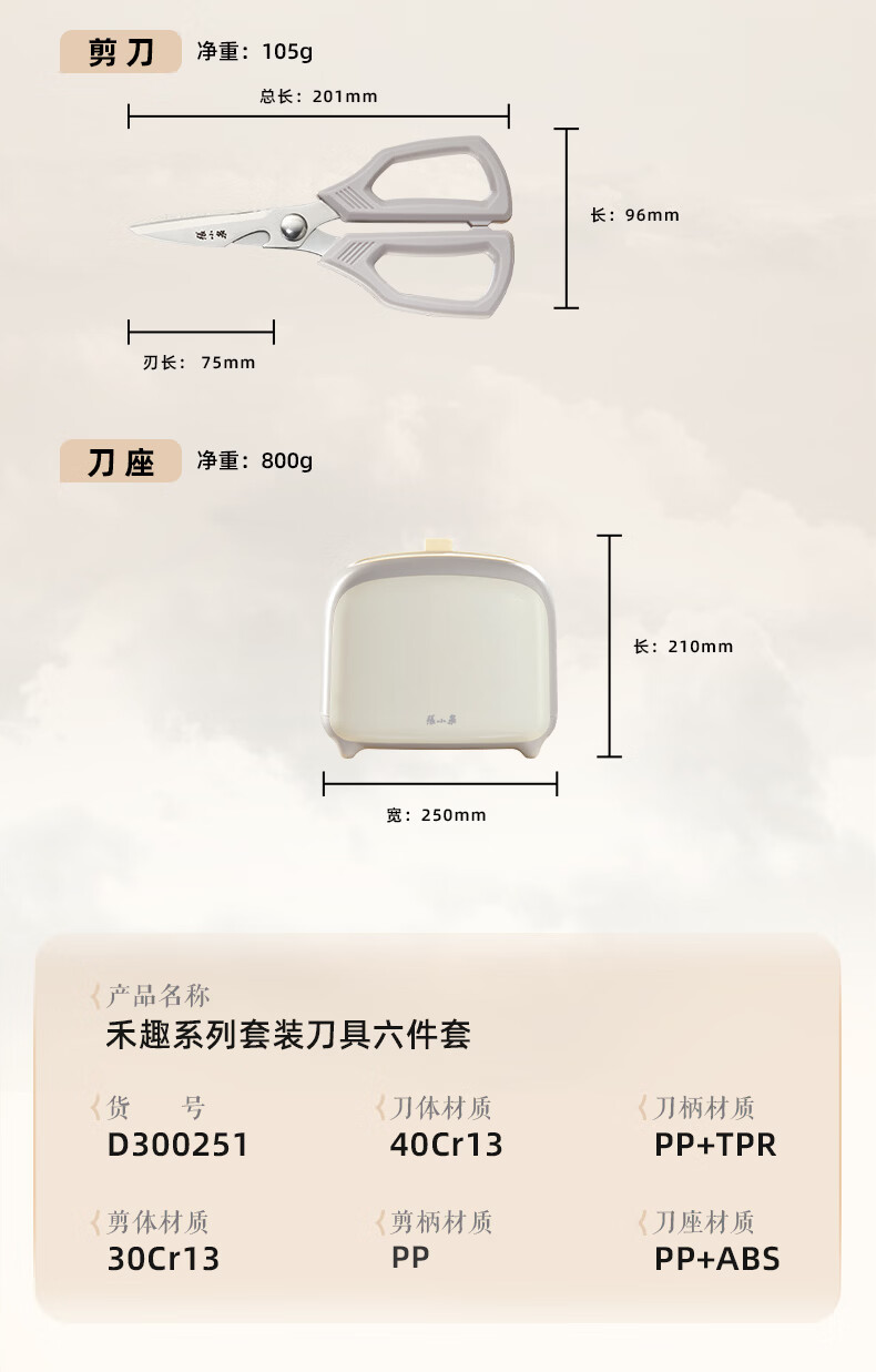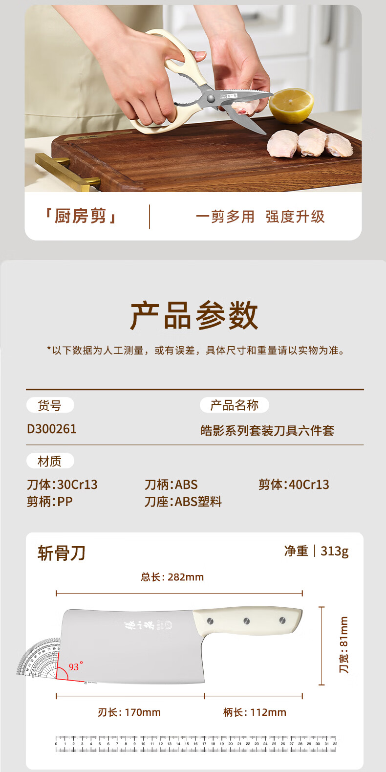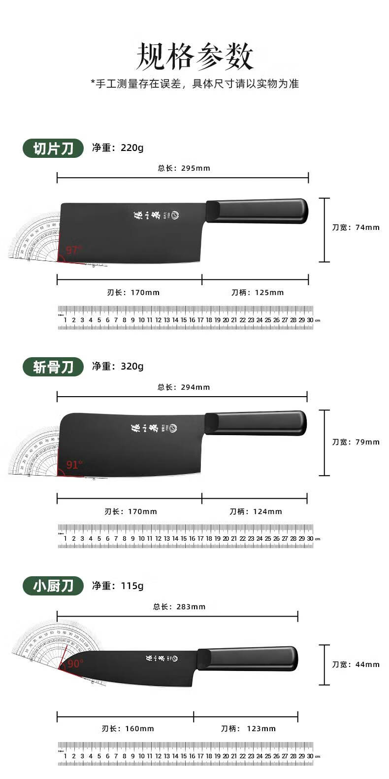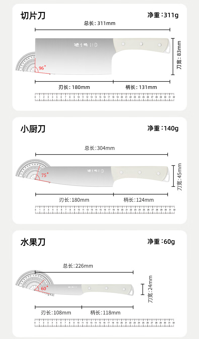 张小泉刀具套装 不锈钢家用套刀厨房菜刀切片刀小厨刀剪刀斩骨刀 家用七件套【经典实木】