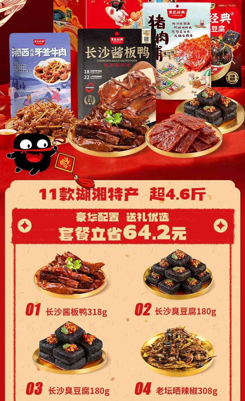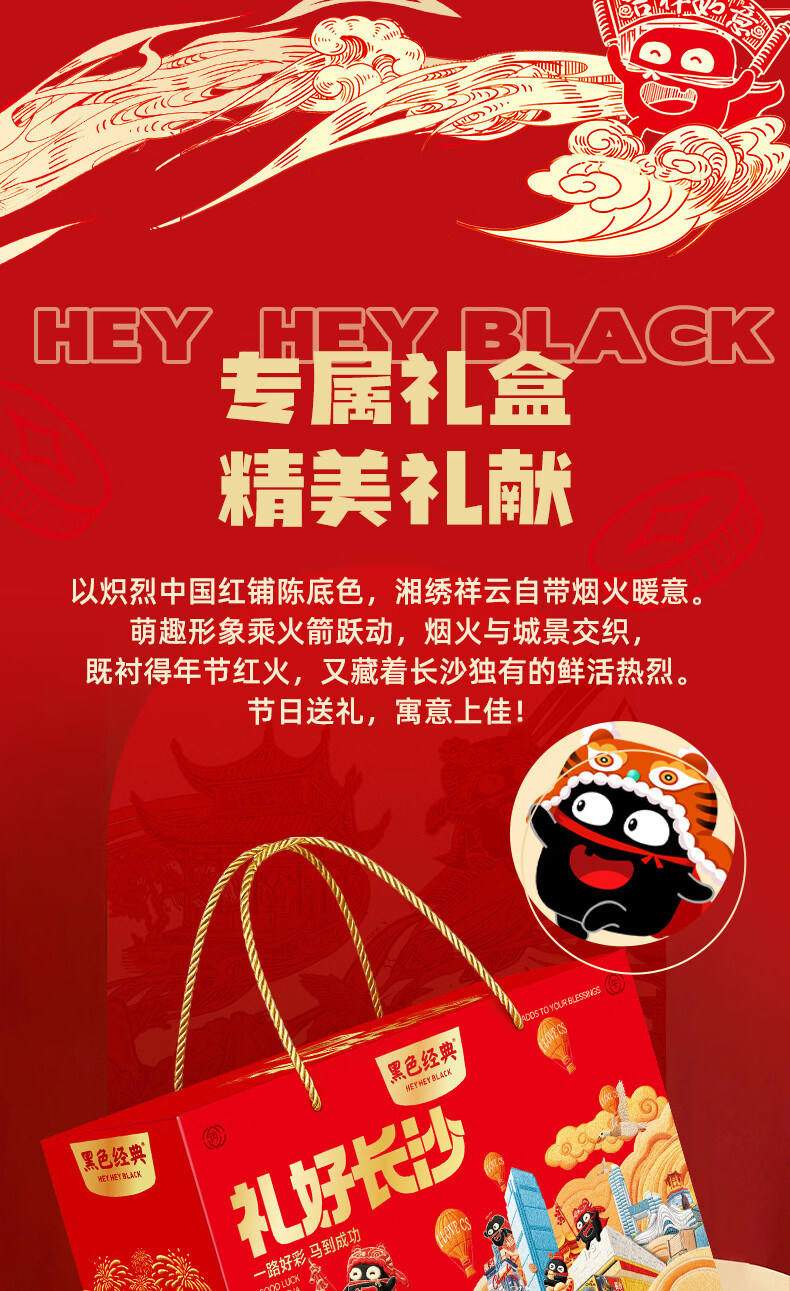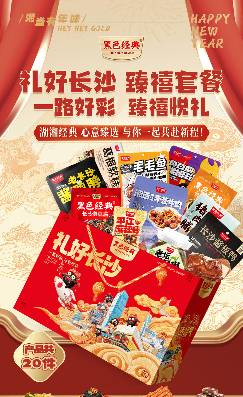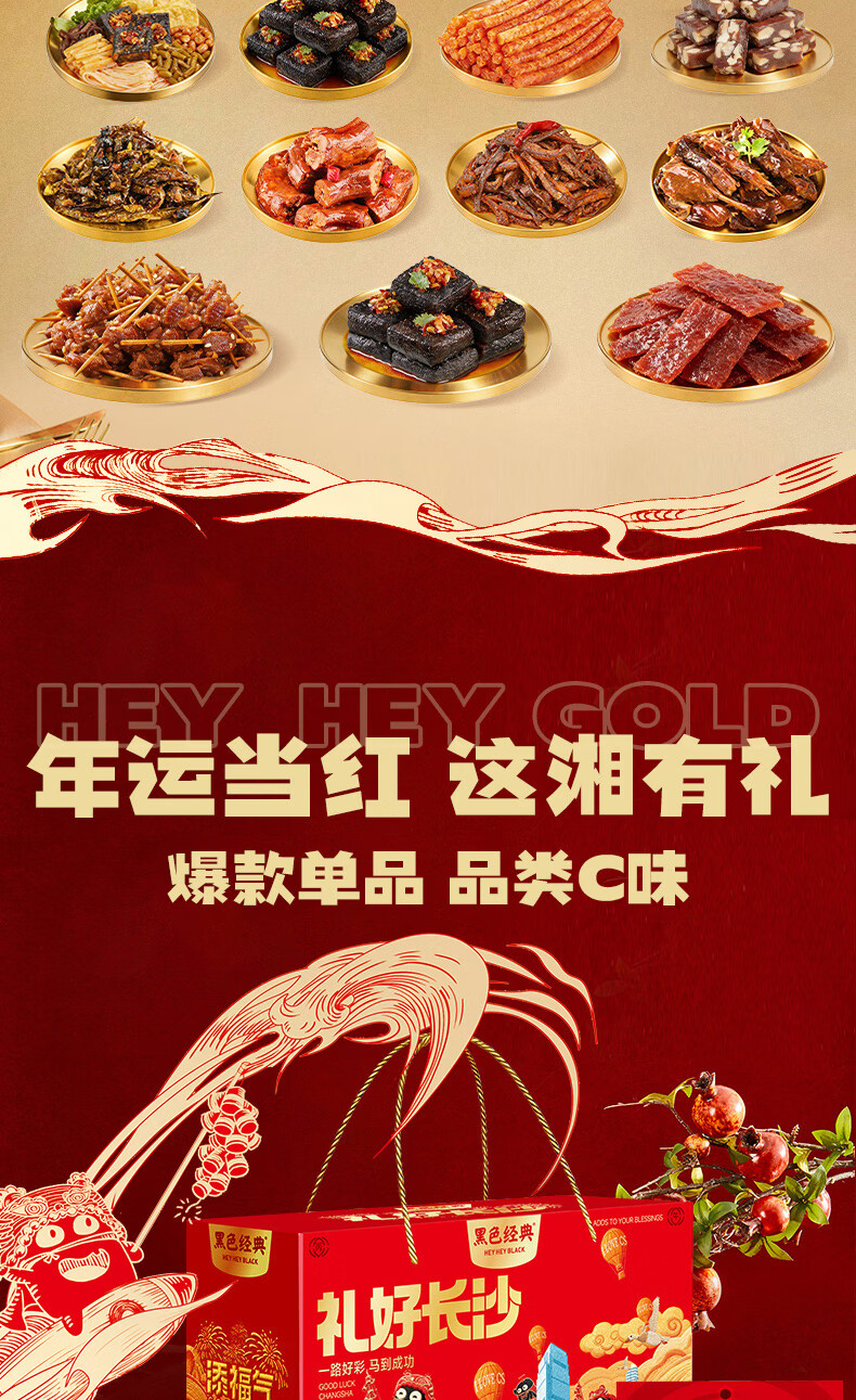 黑色经典礼好长沙年货礼盒2329g 湖南特产休闲零食酱板鸭猪肉脯牛肉干团购