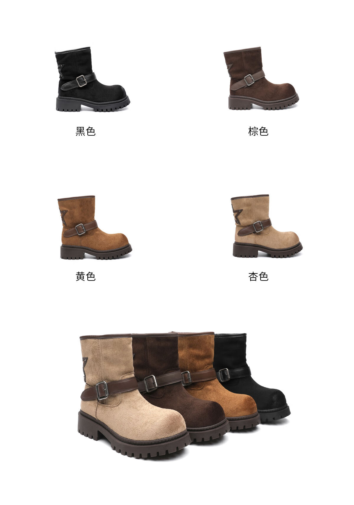 月芽儿短靴女2025新款冬季增高小个子休闲瘦瘦靴马丁靴时装靴 绒里黑色01T 34