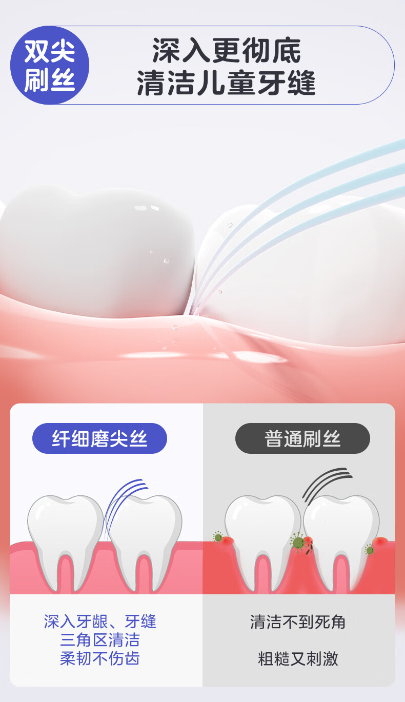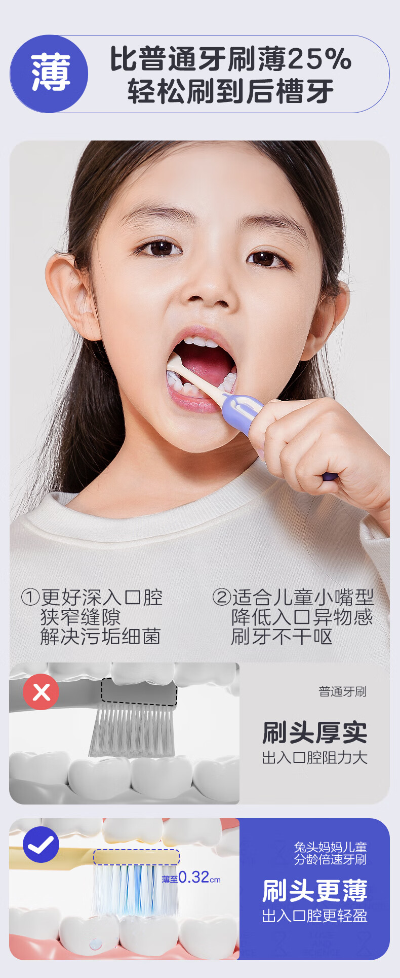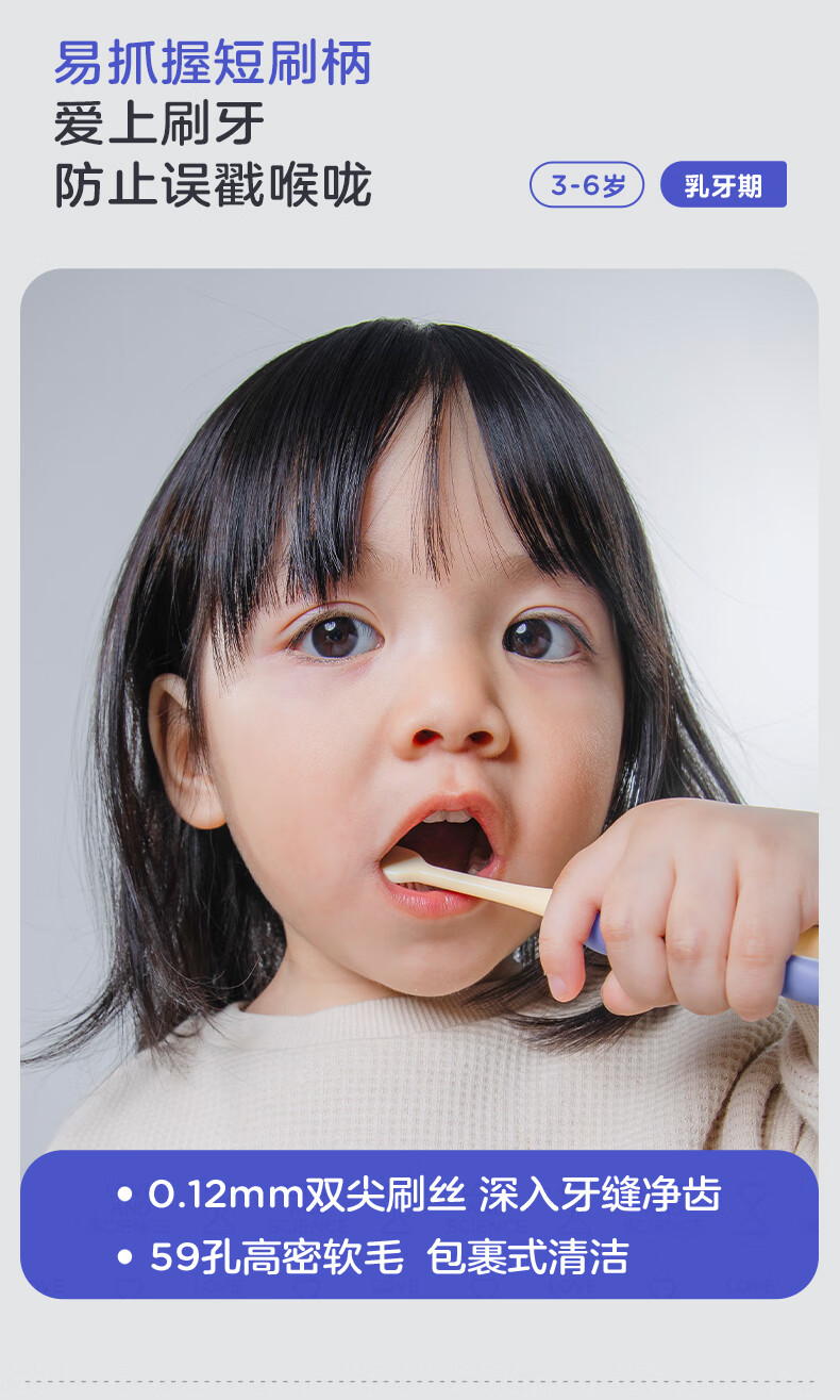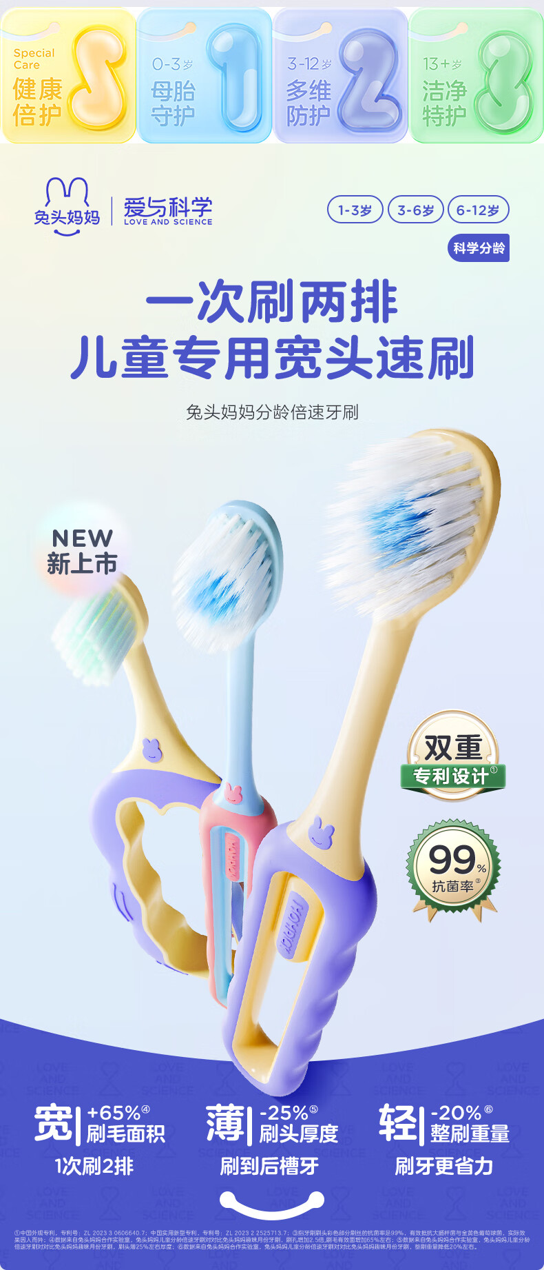 兔头妈妈分龄倍速儿童牙刷1-3岁蓝色轻巧便携 防滑手柄柔软护龈哪吒