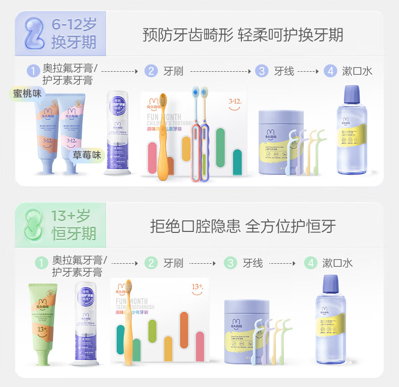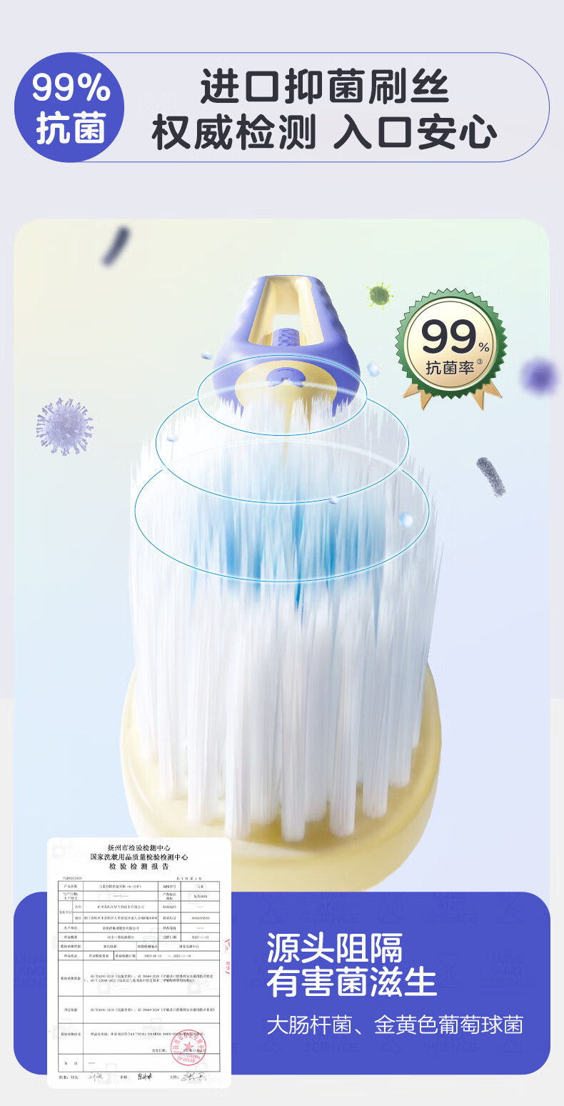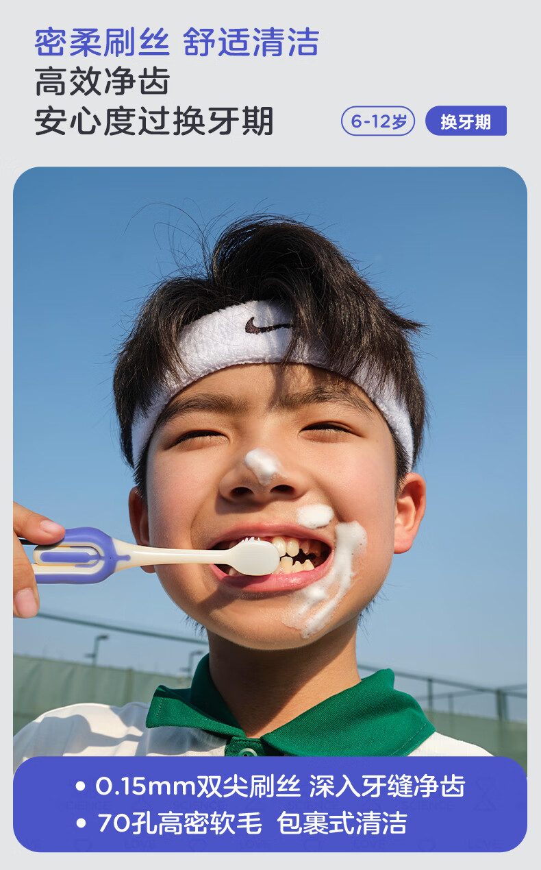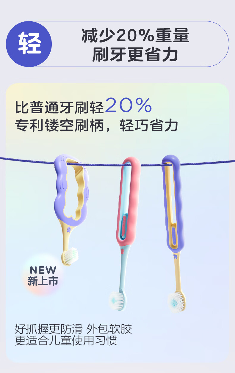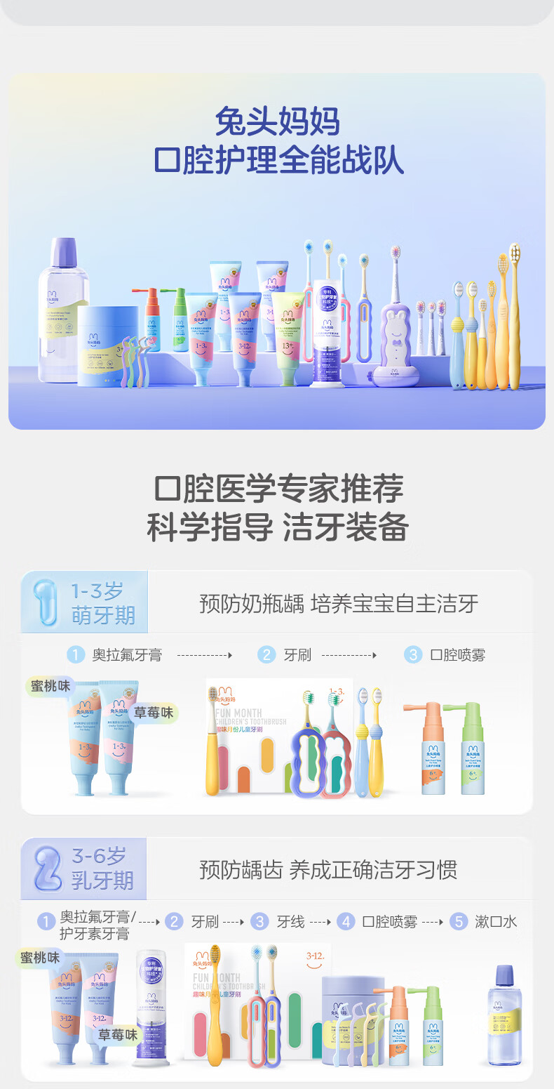 兔头妈妈分龄倍速儿童牙刷1-3岁蓝色轻巧便携 防滑手柄柔软护龈哪吒