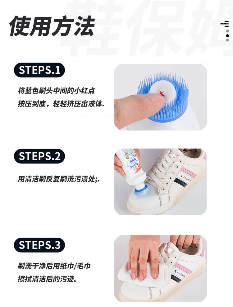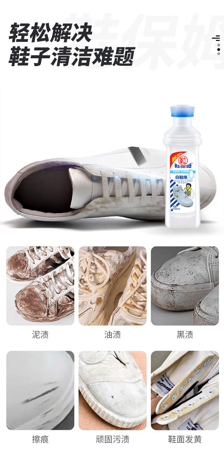鞋保姆小白鞋清洁剂白鞋神器洗鞋神器洗鞋免水洗擦鞋去污波鞋净白鞋擦 清洁+增白+美纹纸方巾