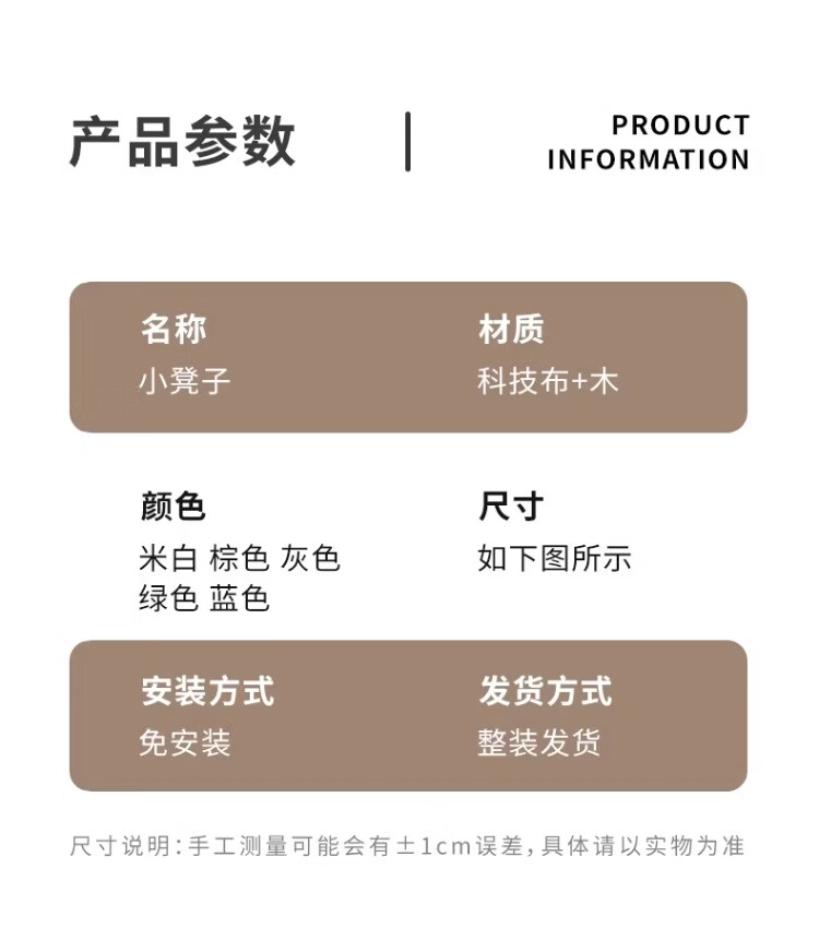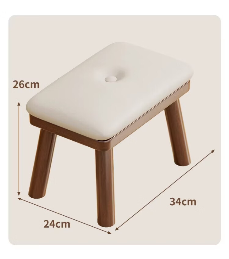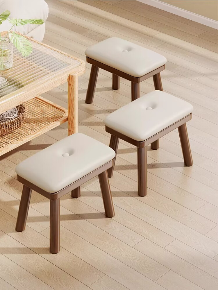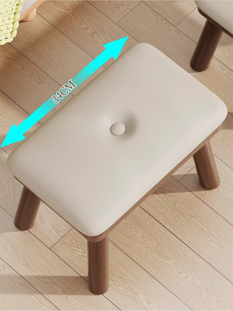 尔思家实木矮凳门口客厅家用软包凳子茶几小板凳换鞋凳创意简约木质方凳 米白-实木软包【舒适坐感】