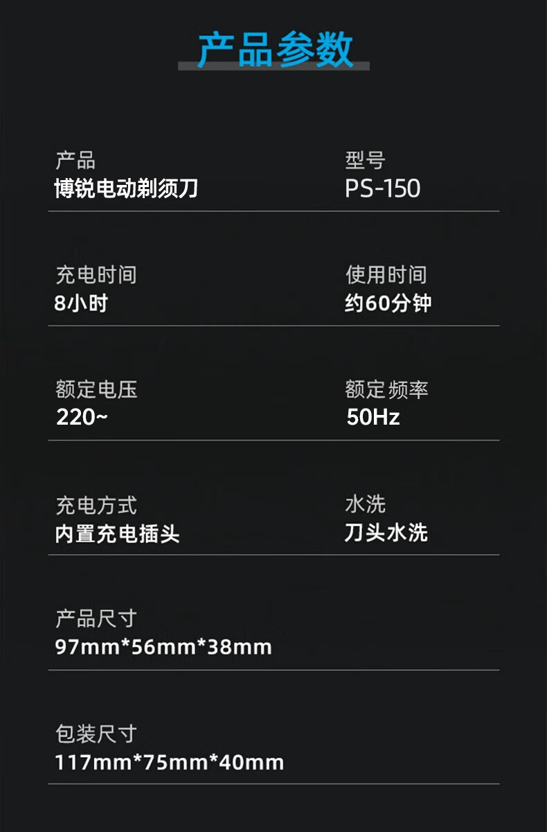 飞科博锐电动剃须刀男士刮胡刀全身水洗快充车载胡须刀便携须刨剃胡子刀情人节礼物送男友 博锐PS166