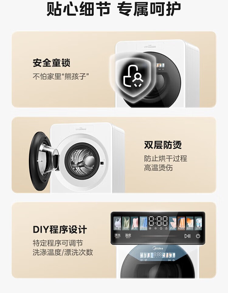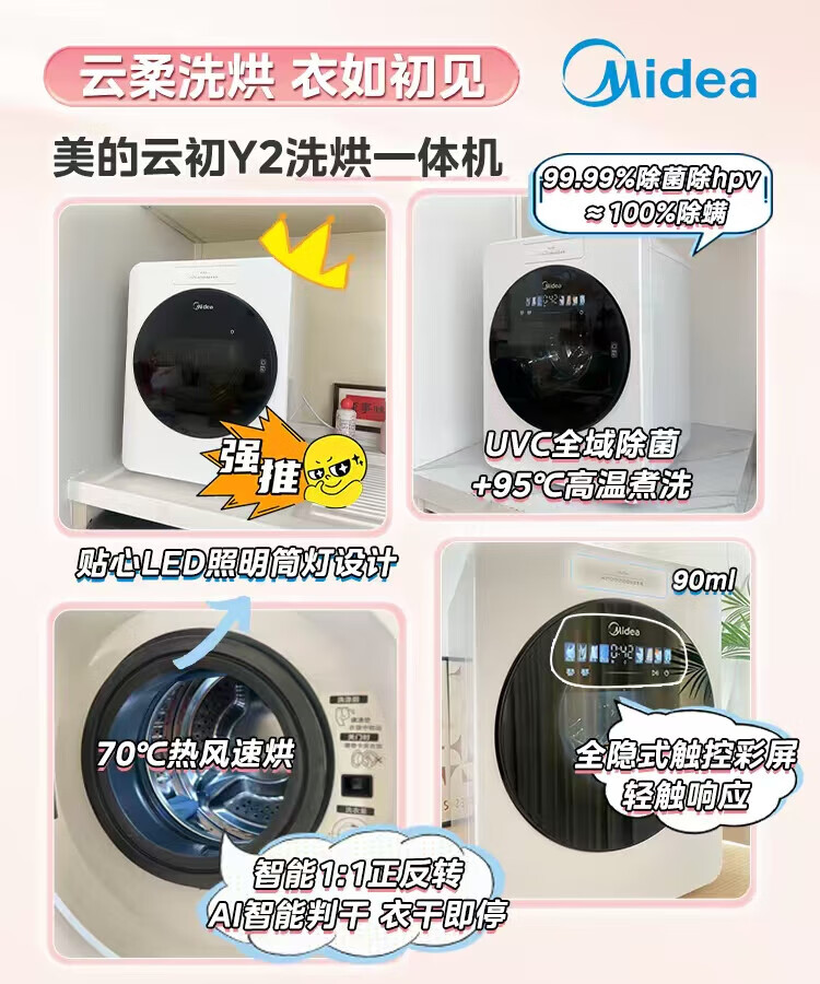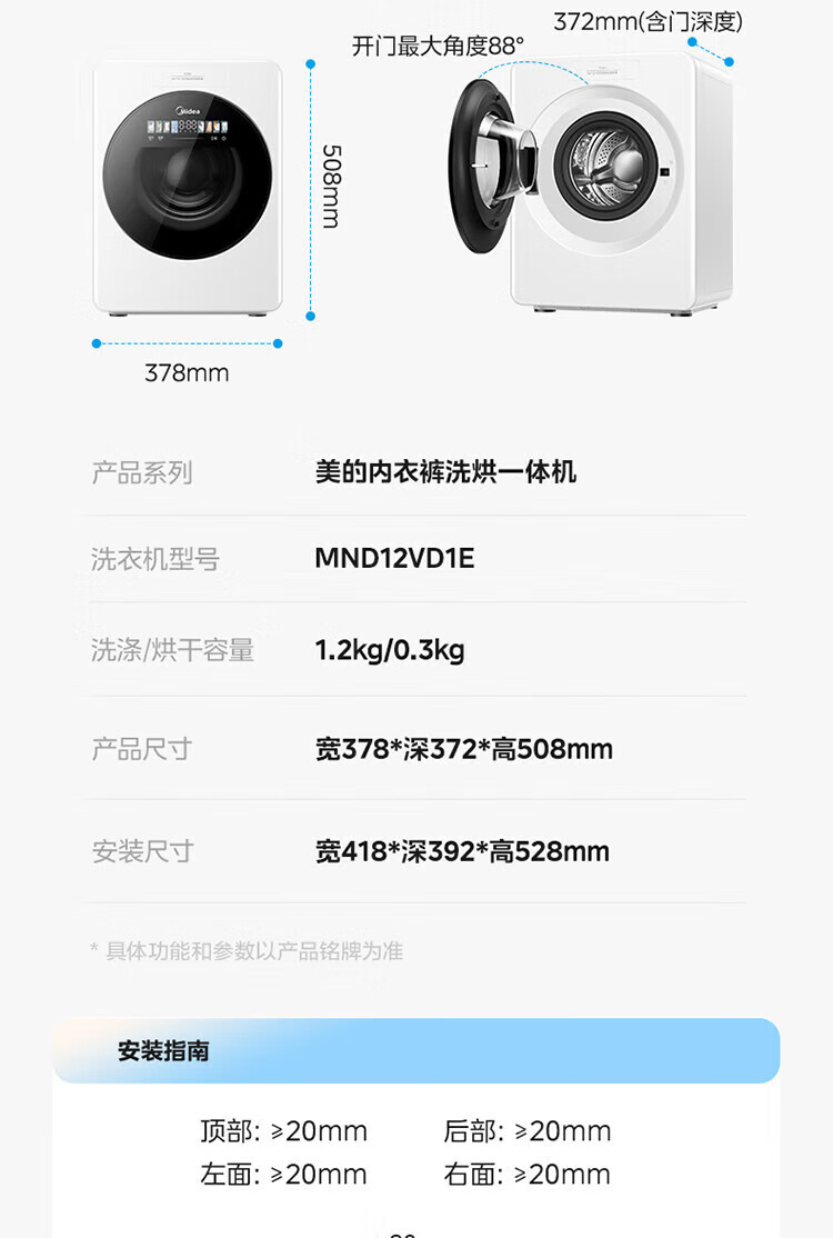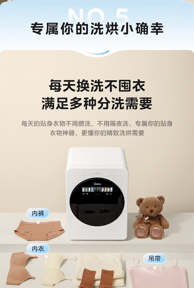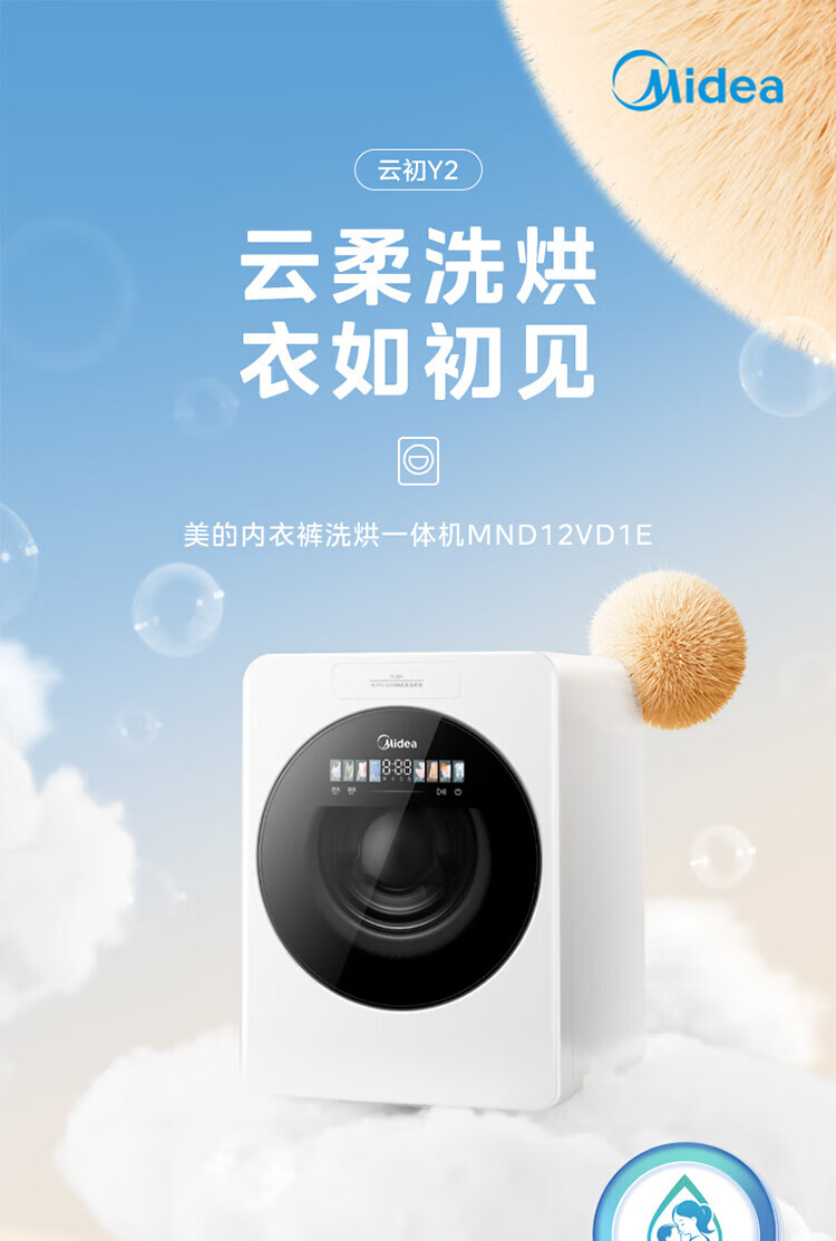 美的(Midea)云初Y2 滚筒洗衣机全自动 迷你内衣洗 婴儿洗衣机 双效除菌螨 以旧换新 官方旗舰 云初Y2 单洗 1.2kg MNG12VD1E