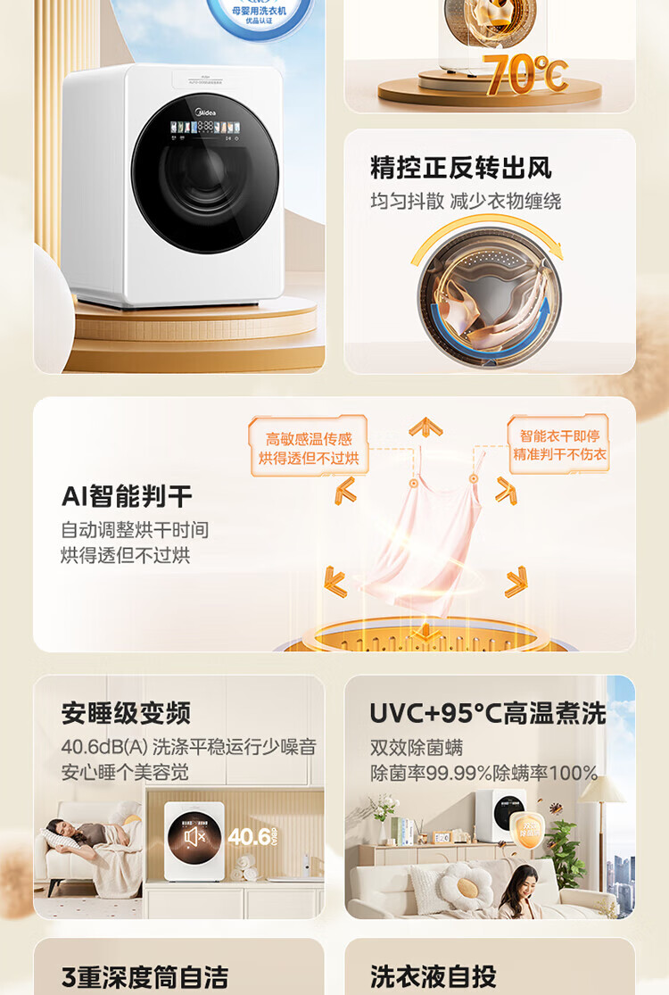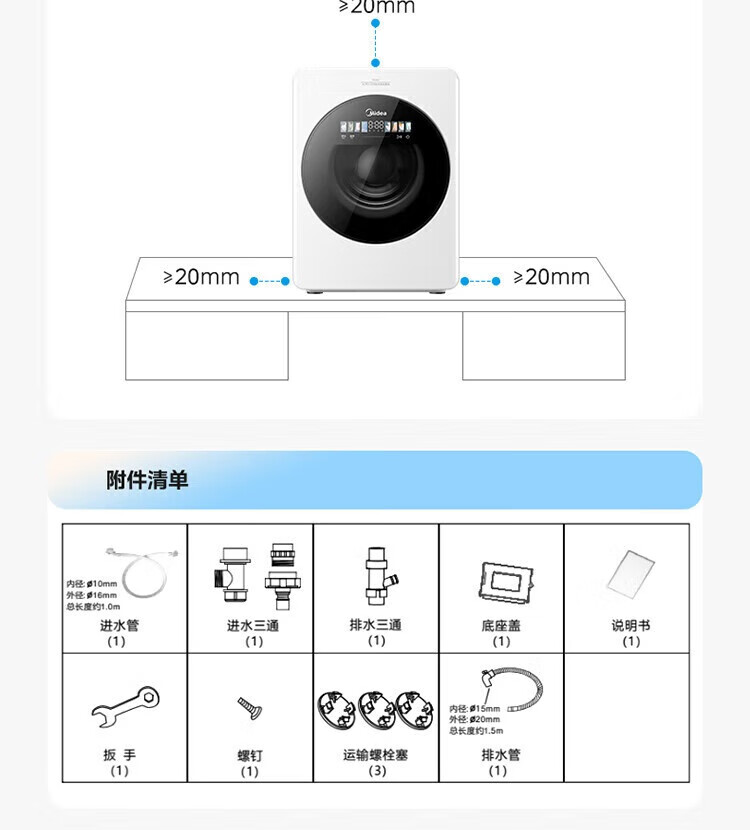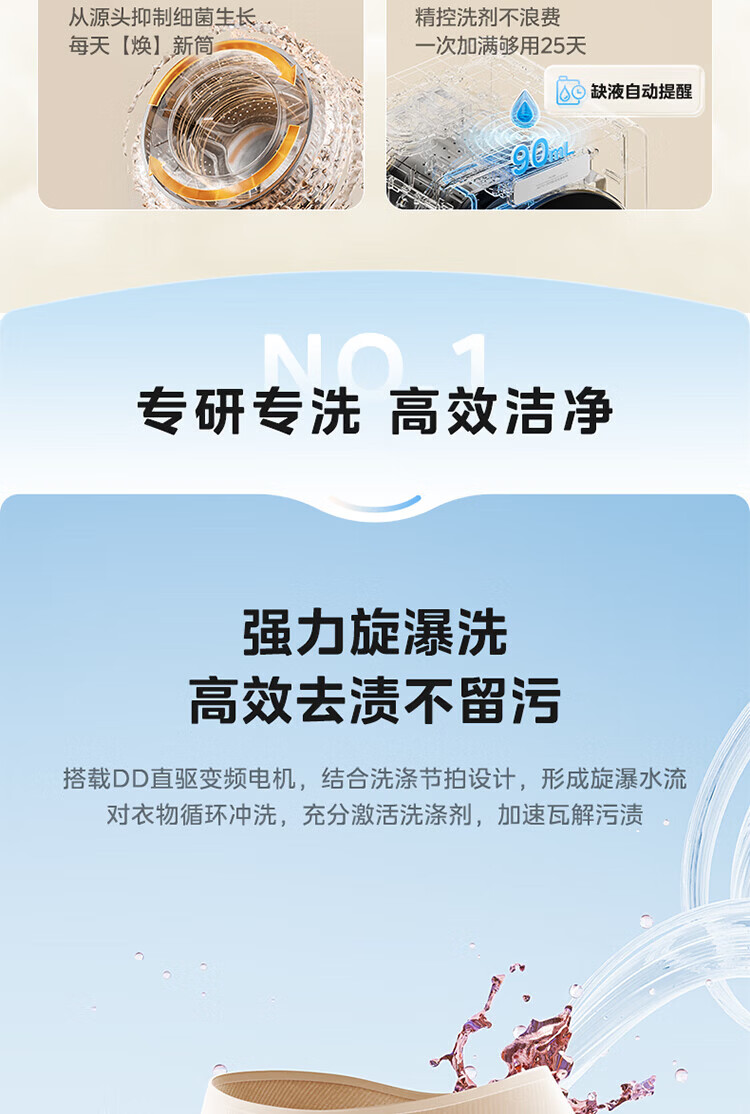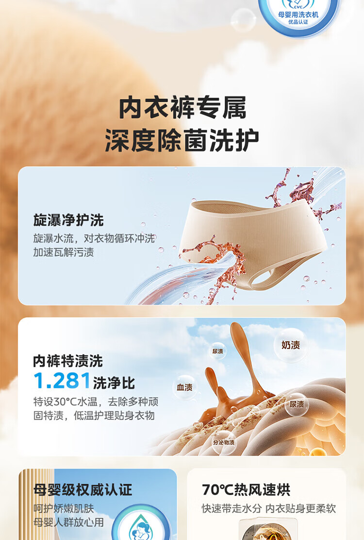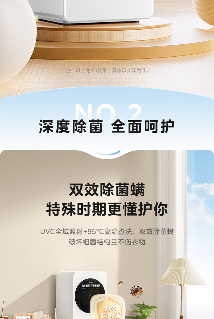 美的(Midea)云初Y2 滚筒洗衣机全自动 迷你内衣洗 婴儿洗衣机 双效除菌螨 以旧换新 官方旗舰 云初Y2 单洗 1.2kg MNG12VD1E