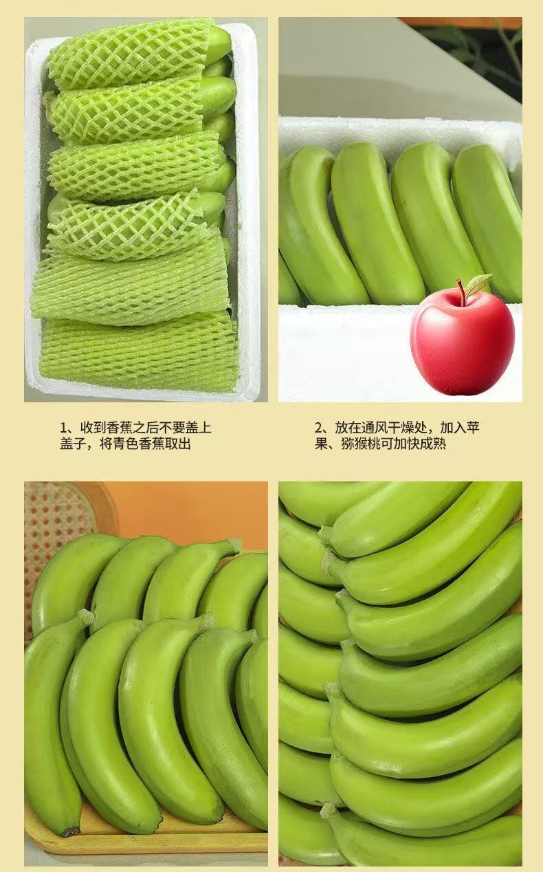 富硒蕉海南绿皮单根香蕉单条皮青肉糯健身补钾水果生鲜全站 单根香蕉青蕉发货 带箱 2斤