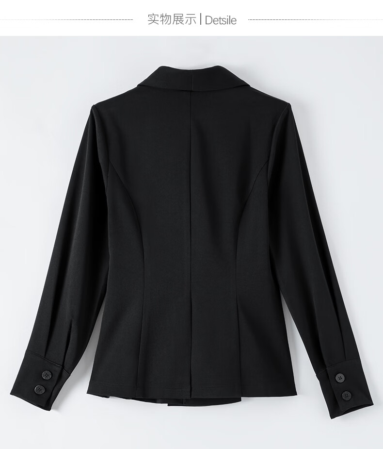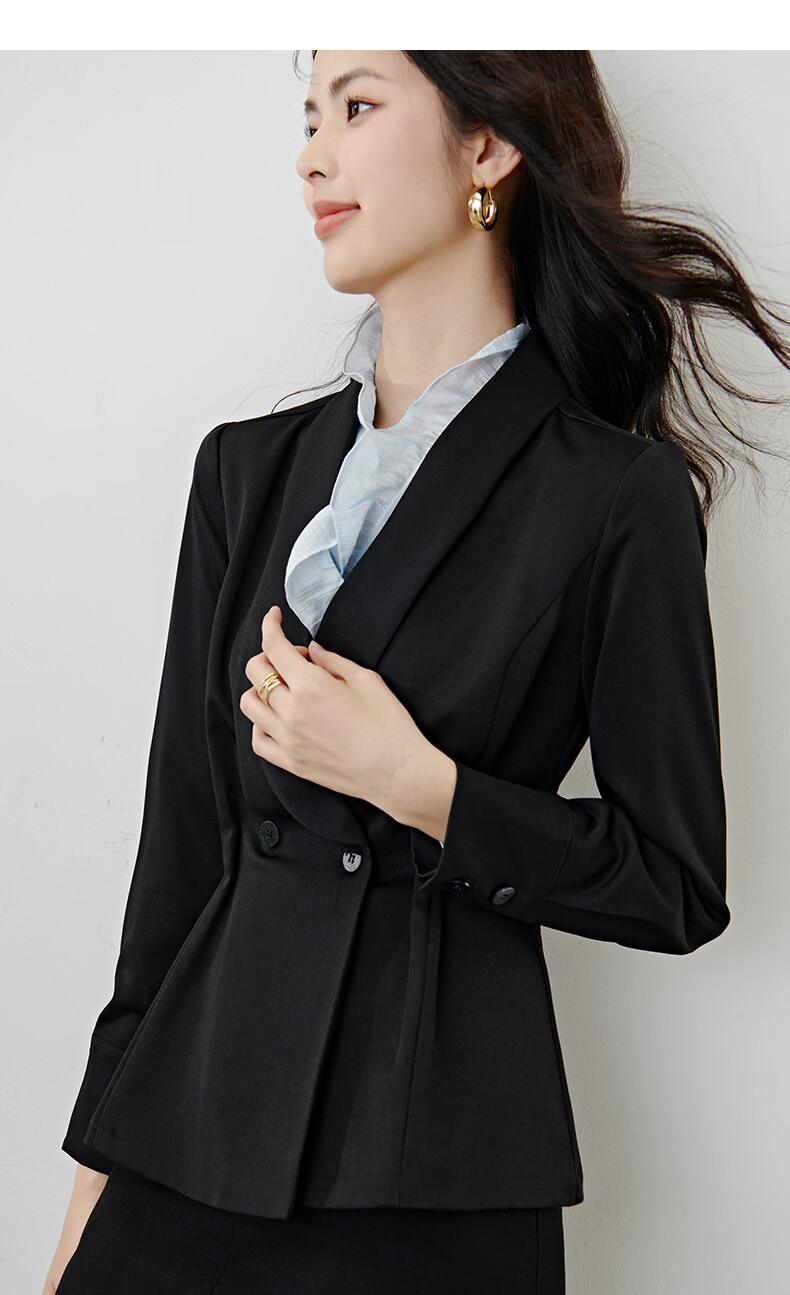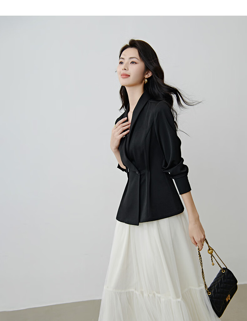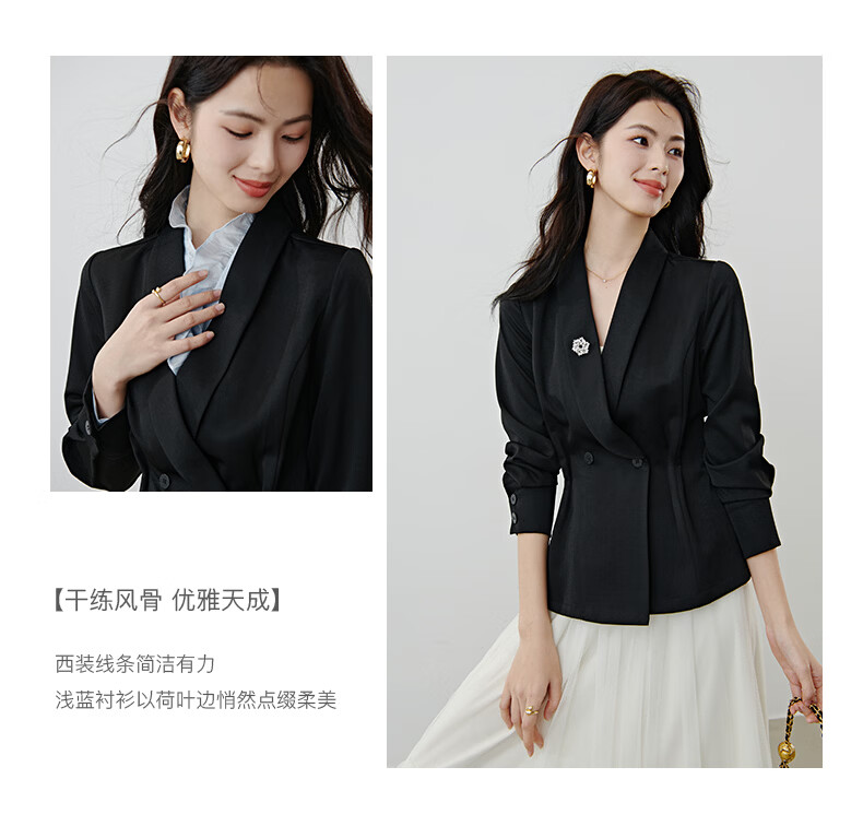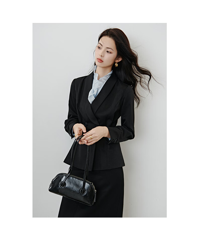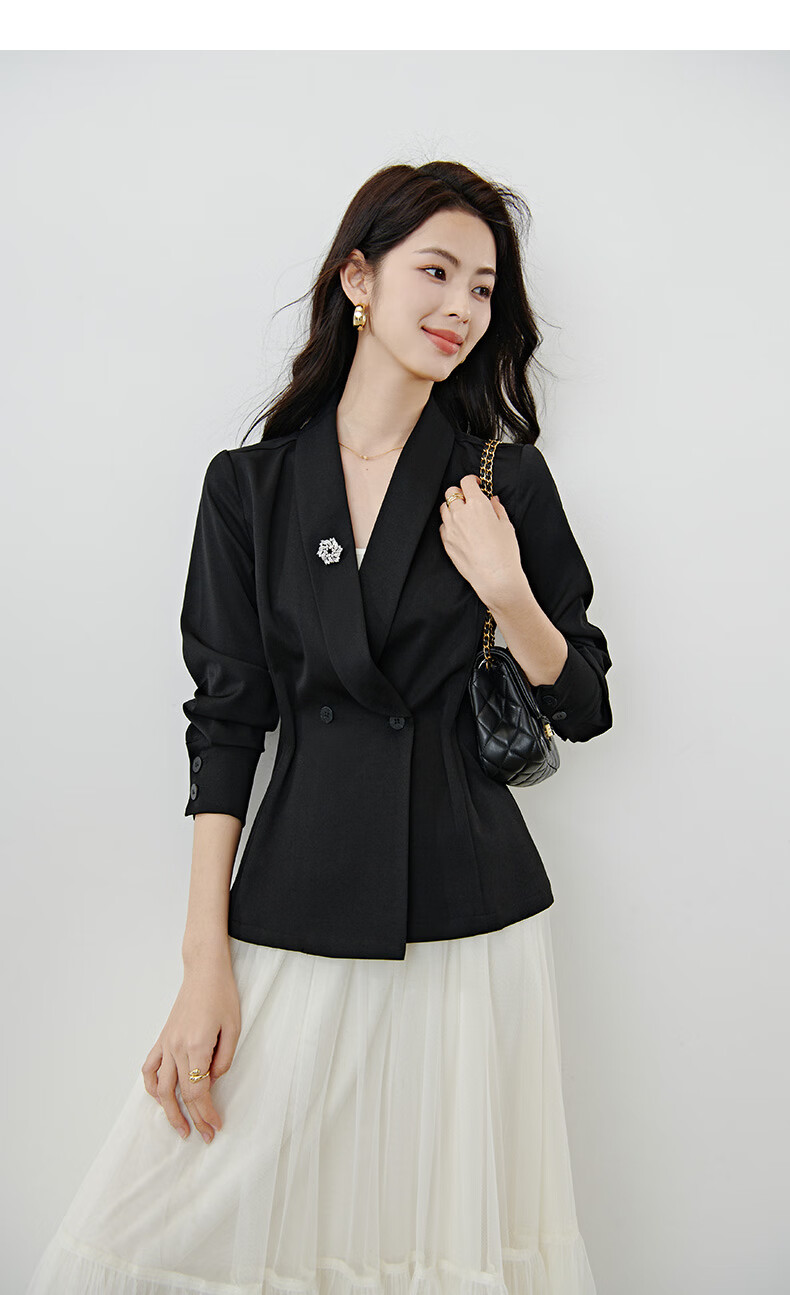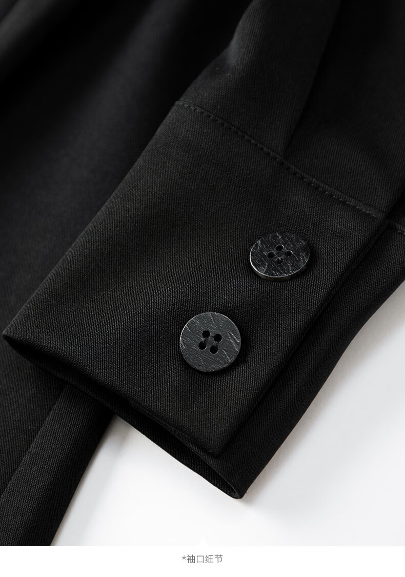 晚白2026春款高级感设计师款翻驳领西装利落收腰显瘦衬衫袖通勤外套女 黑色 S