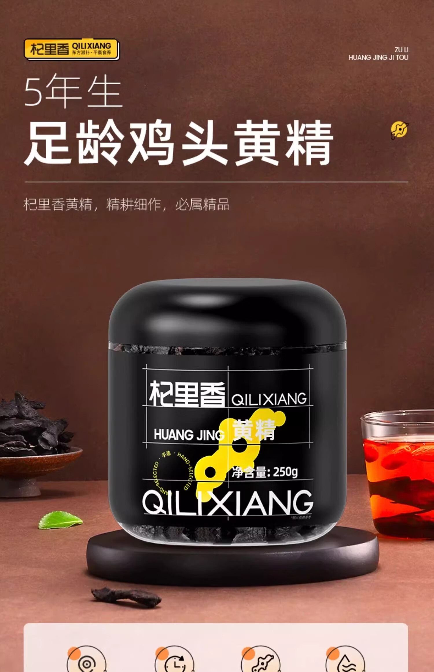 杞里香糯头黄精250g九蒸九制晒男性食用泡水养生茶官方正品中药滋补年货 鸡头黄精 250g*2罐 圆罐装