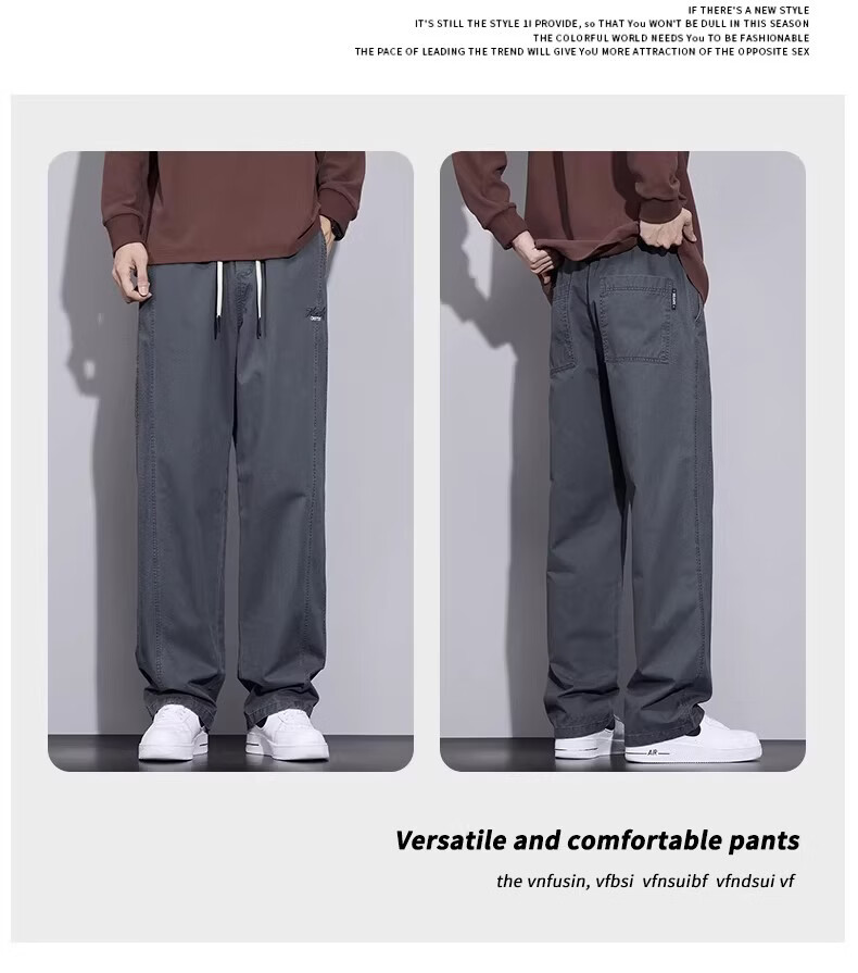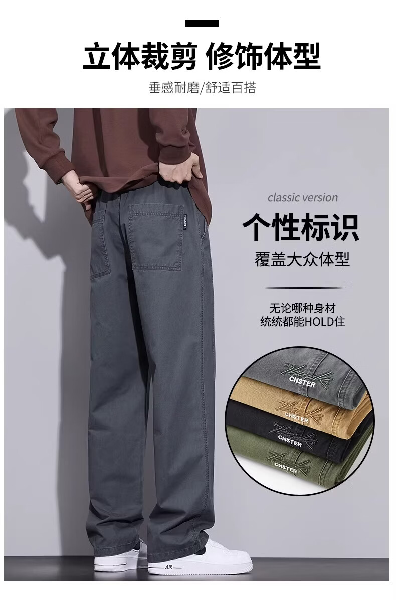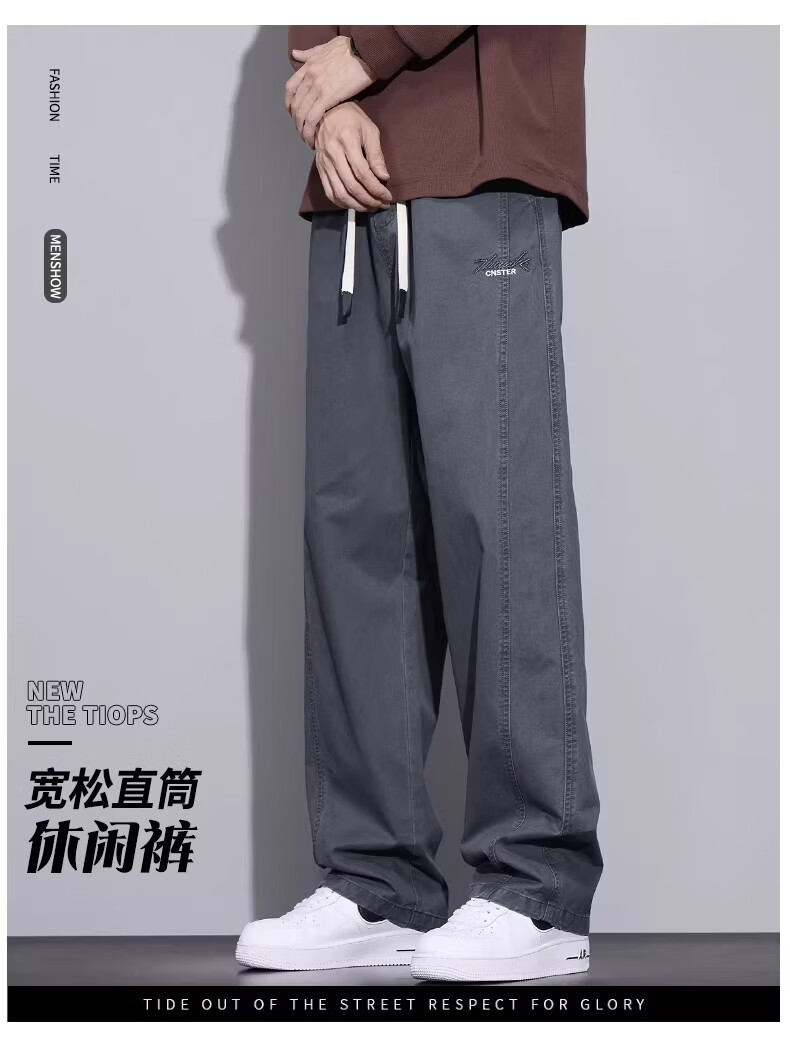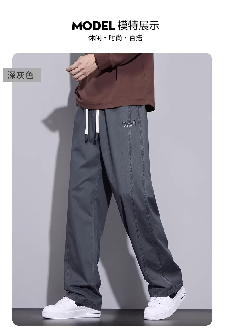 真维斯(Jeanswest)日系纯色宽松直筒休闲裤男士夏季薄款潮流复古百搭阔腿长裤 深灰色 M