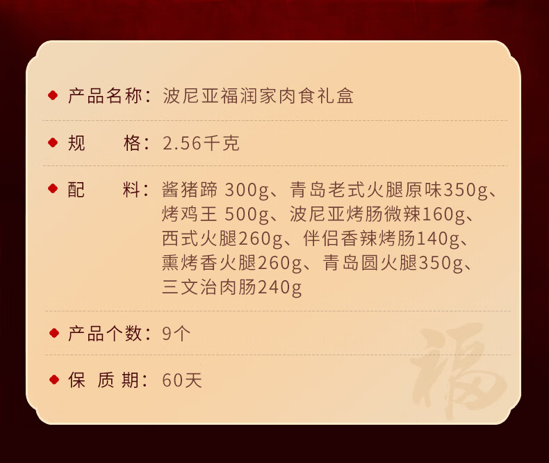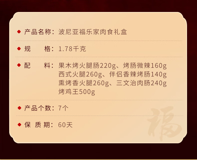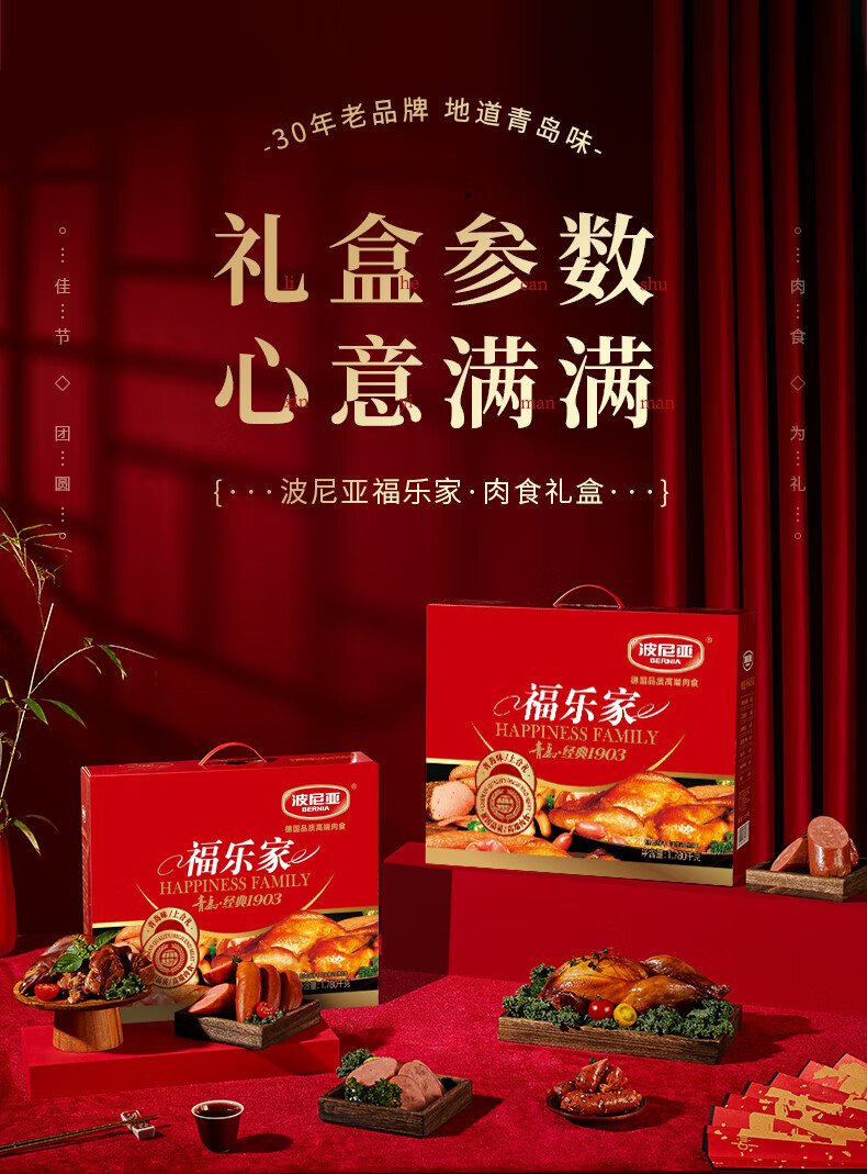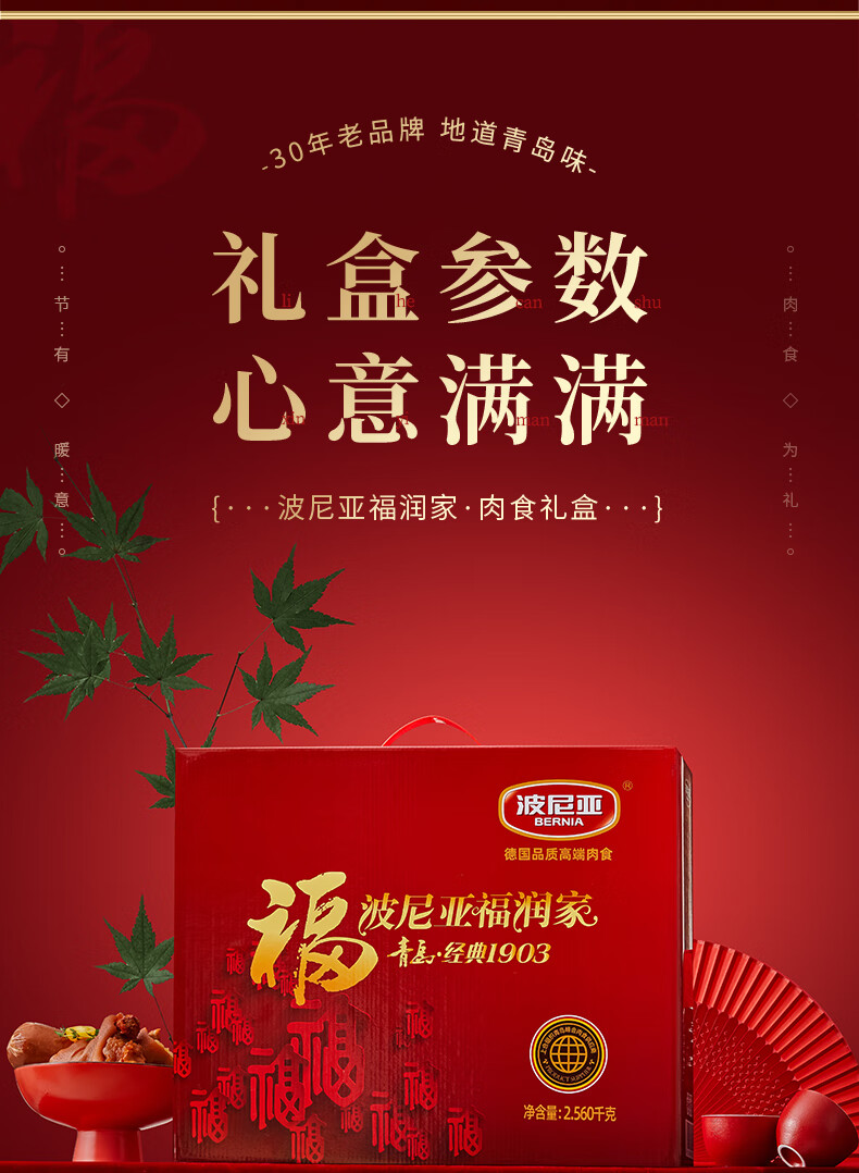 波尼亚(BERNIA)火腿烤肠送礼大礼包伴手礼袋至臻礼袋 年货礼盒送礼长辈父母家长 (无礼盒)手提袋+产品1.975kg