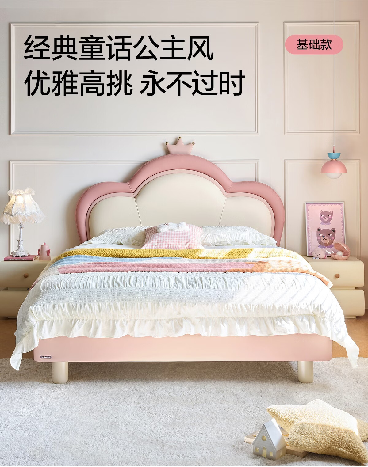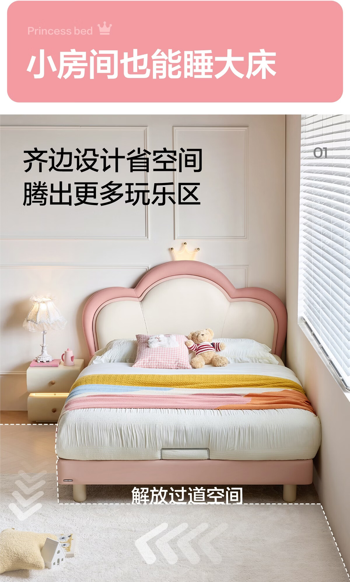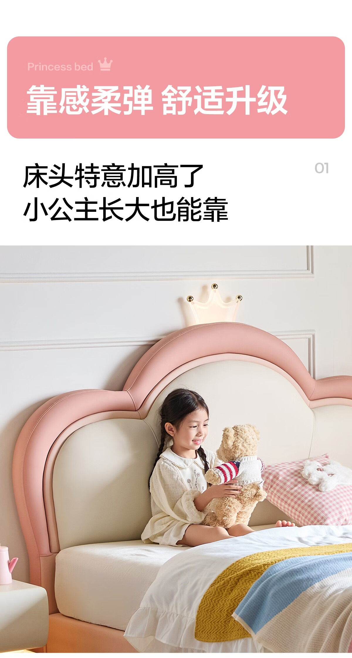 LINSY KIDS儿童床卧室云朵公主床女孩儿皇冠单人床家居卧室女童床PC241 【头层牛皮】皇冠夜灯公主床 1.2*2.0米