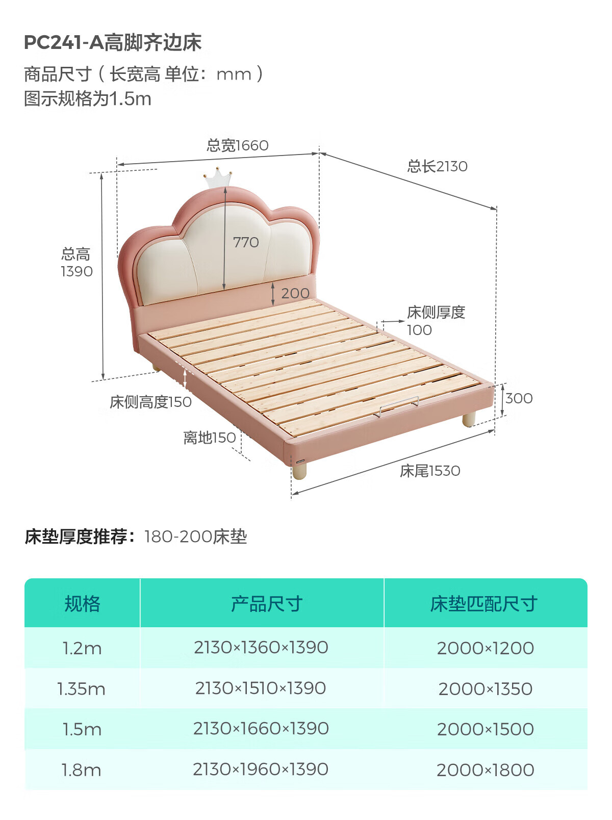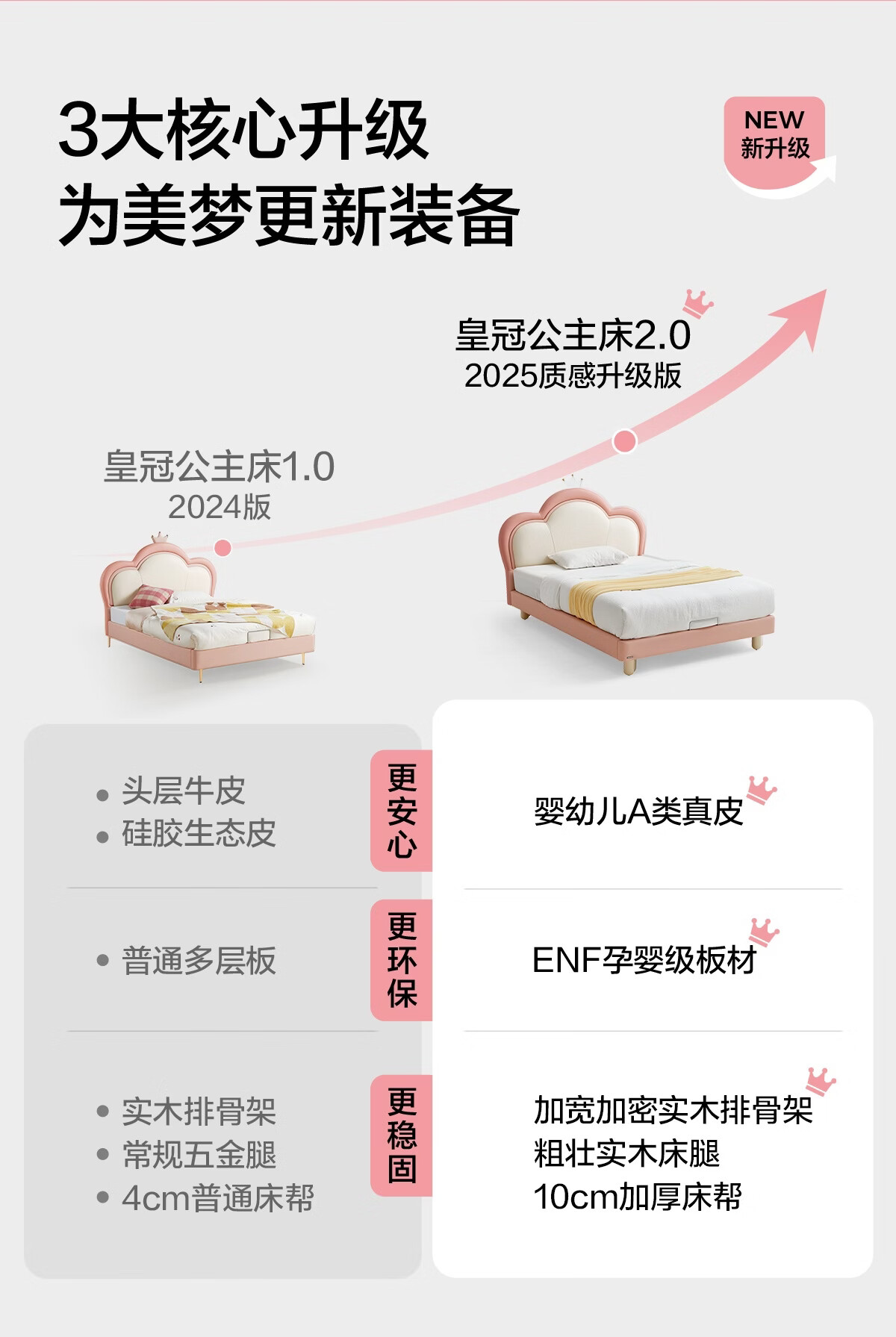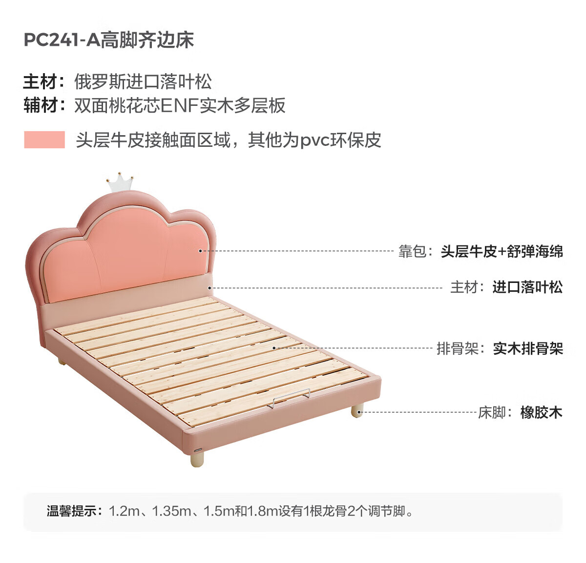 LINSY KIDS儿童床卧室云朵公主床女孩儿皇冠单人床家居卧室女童床PC241 【头层牛皮】皇冠夜灯公主床 1.2*2.0米