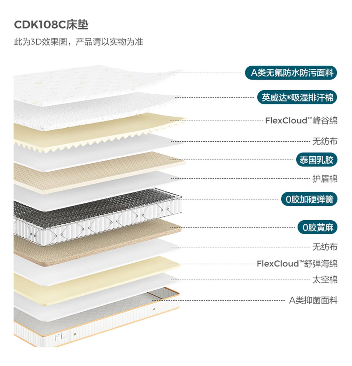 喜临门梦蝶床垫 乳胶椰棕床垫抗菌防螨独袋弹簧床垫 1.8x2米 软硬适中
