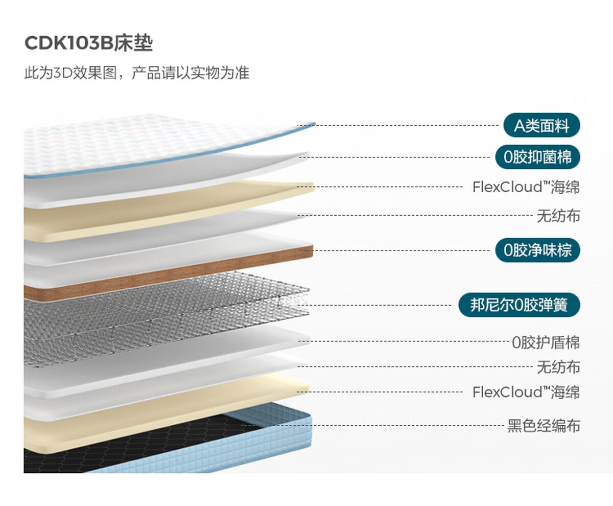 喜临门城市爱情极光白2S 椰棕床垫 邦尼尔弹簧床垫 1.5x2米 偏硬