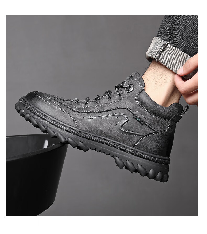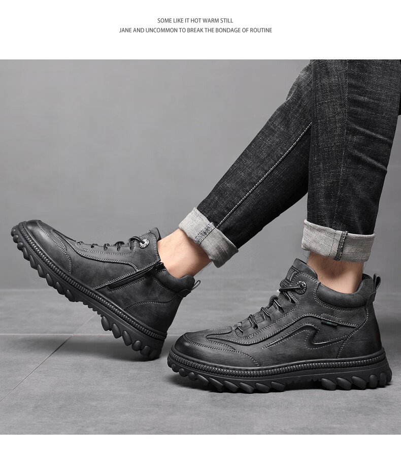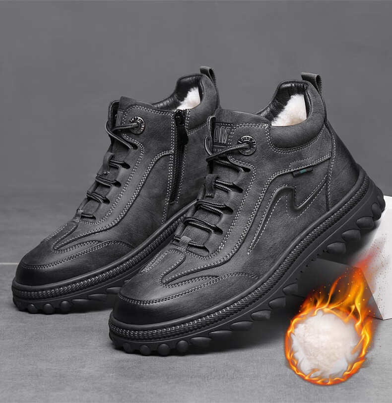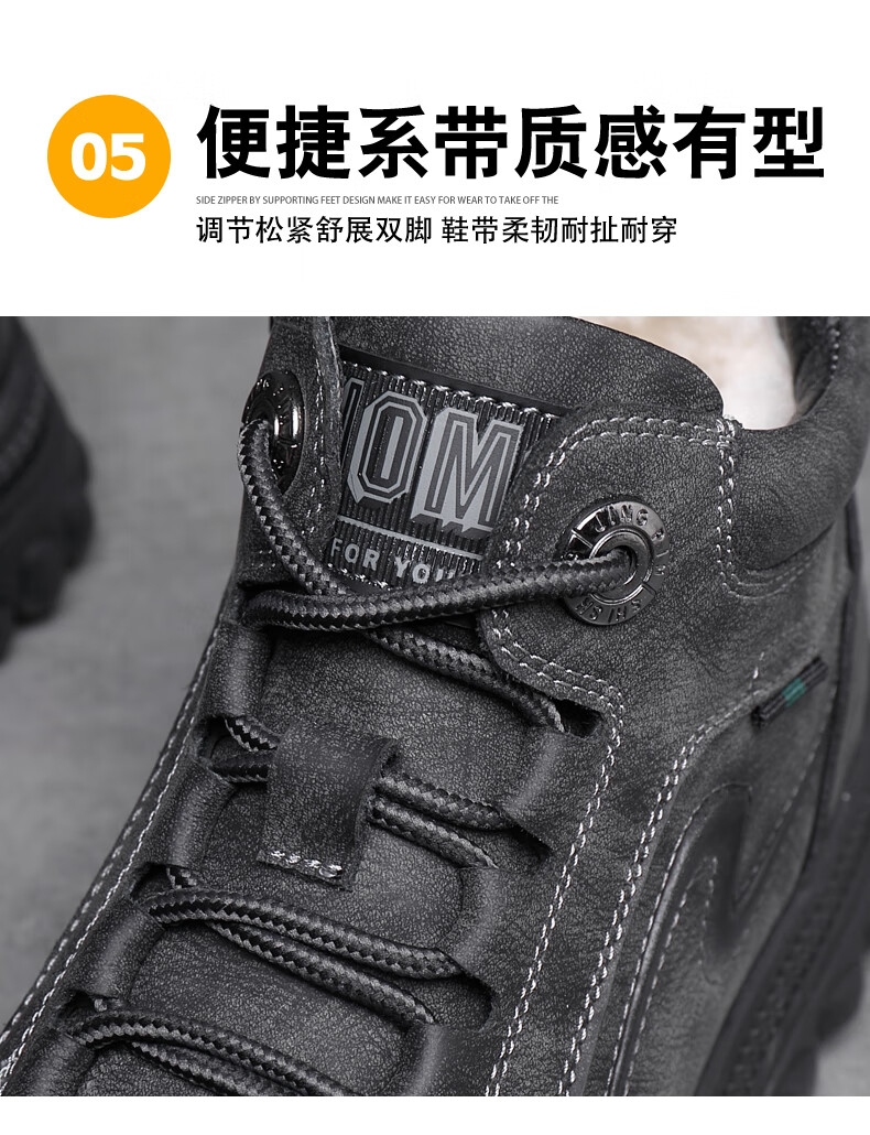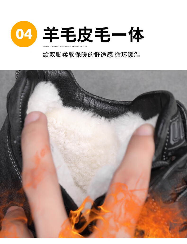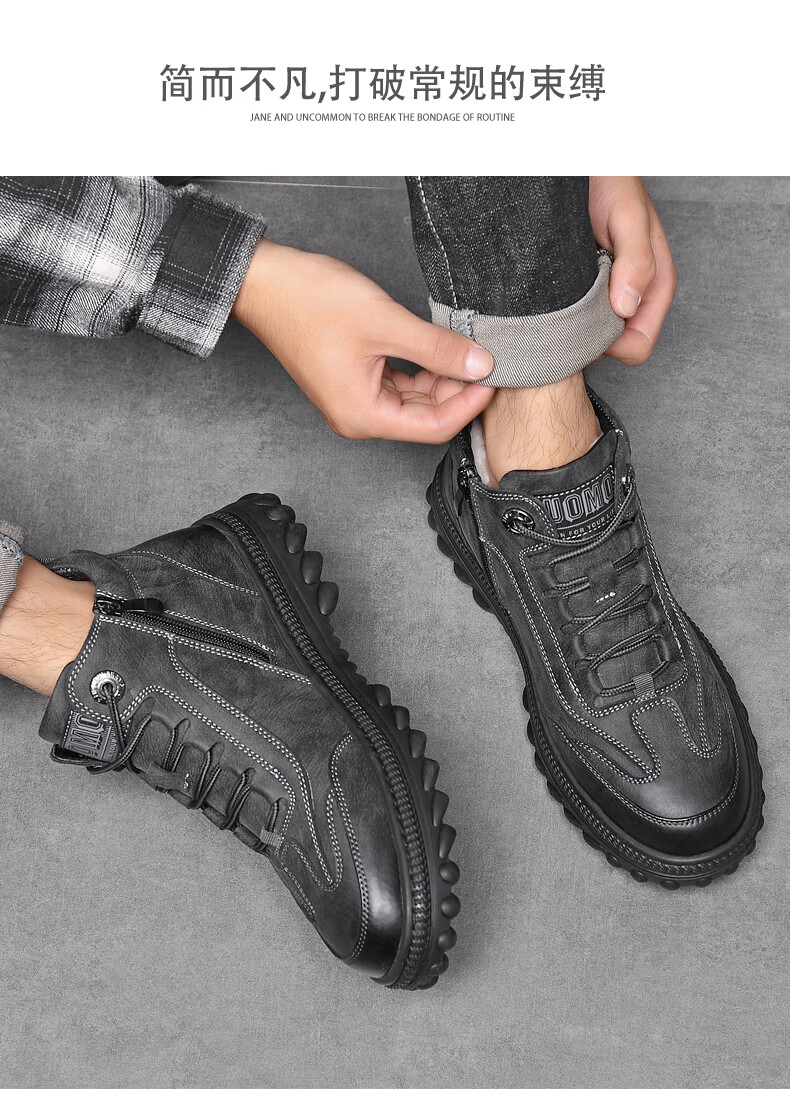 稻草人(MEXICAN)男士棉鞋真皮羊毛加绒加厚高帮休闲棉皮鞋防滑保暖男鞋冬季雪地靴 黑灰色 40