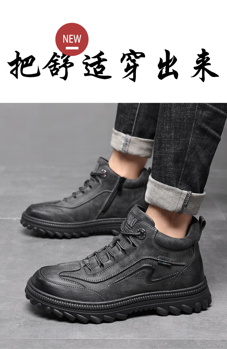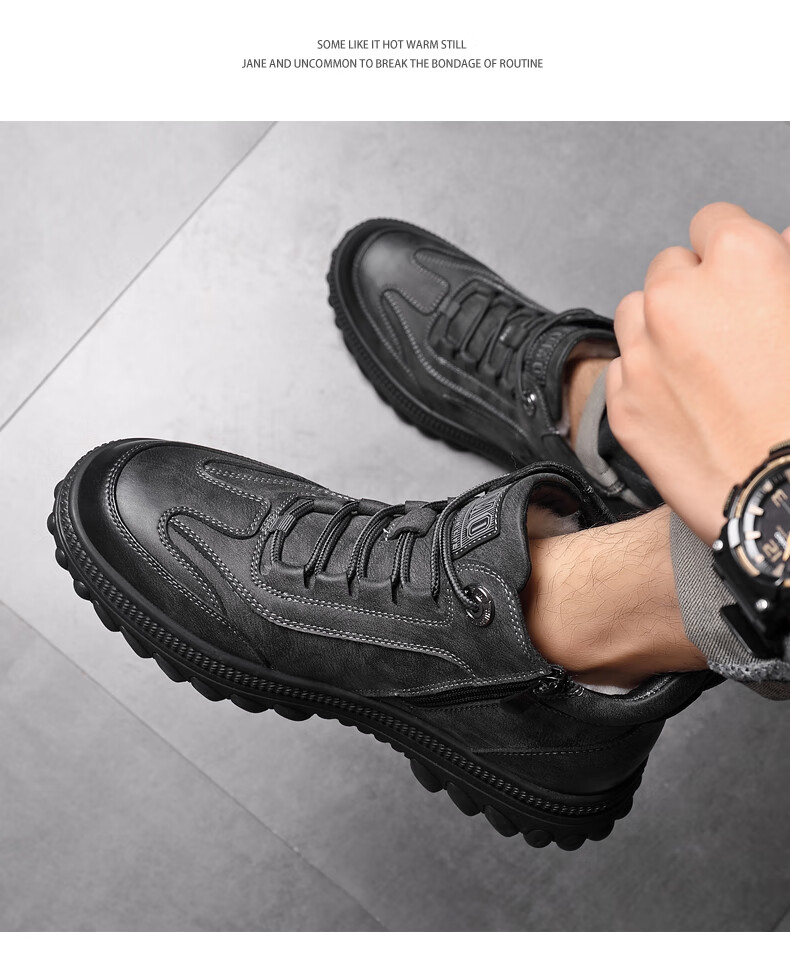 贵之步秋冬季男鞋新款休闲鞋软底防滑舒适运动鞋厚底增高缓震男款 黑色 G006 42 (运动鞋码)