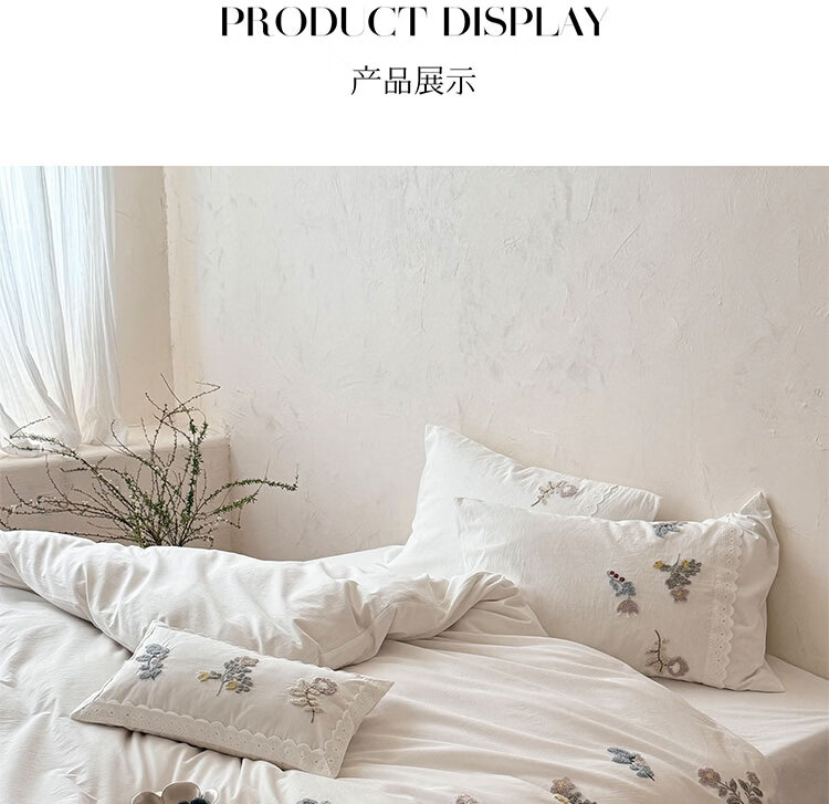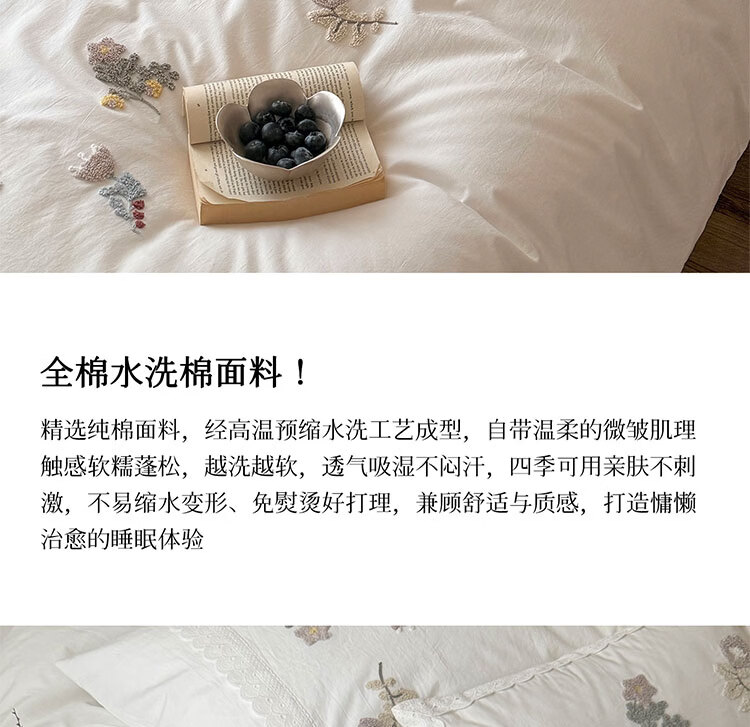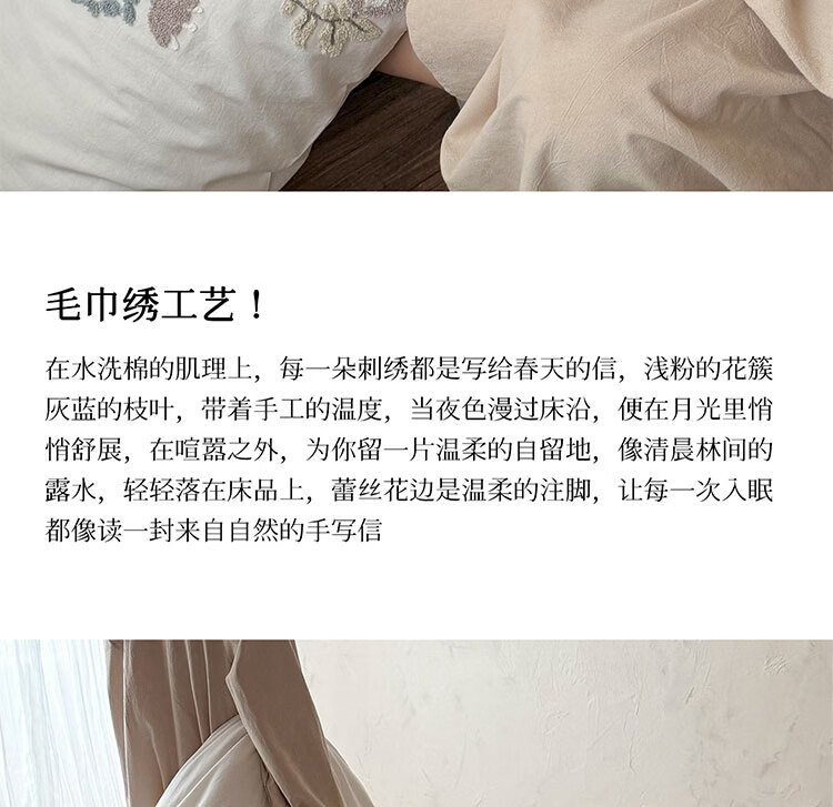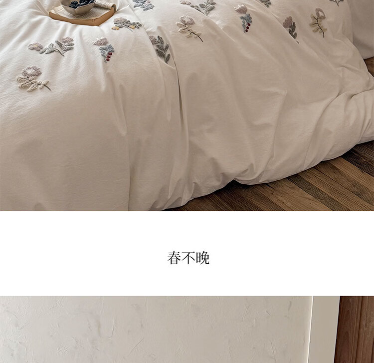 ROLAND LIVE春夏全棉水洗棉四件套简约风透气家用被套床单床上用品三件套 LB 全棉水洗棉套件-春不晚 1.2米床 床单款 【被套150*200cm】