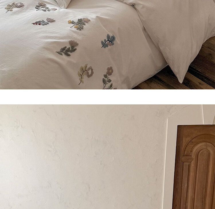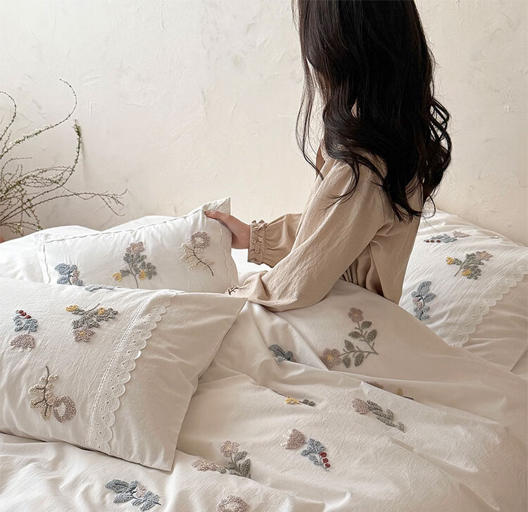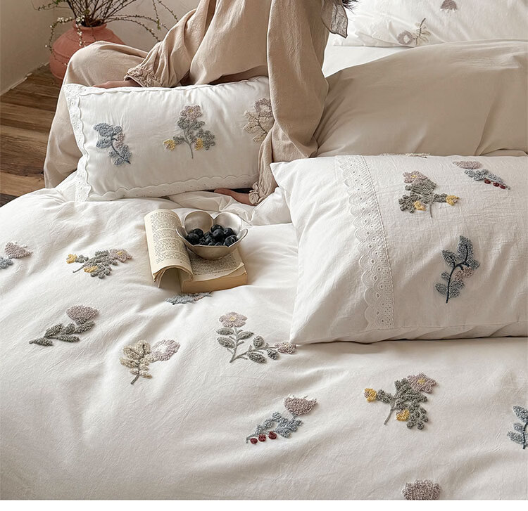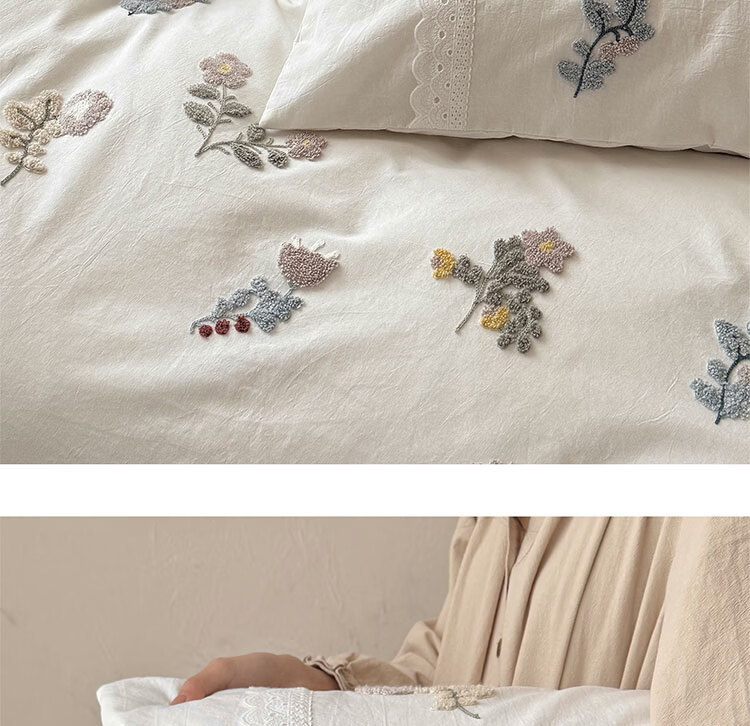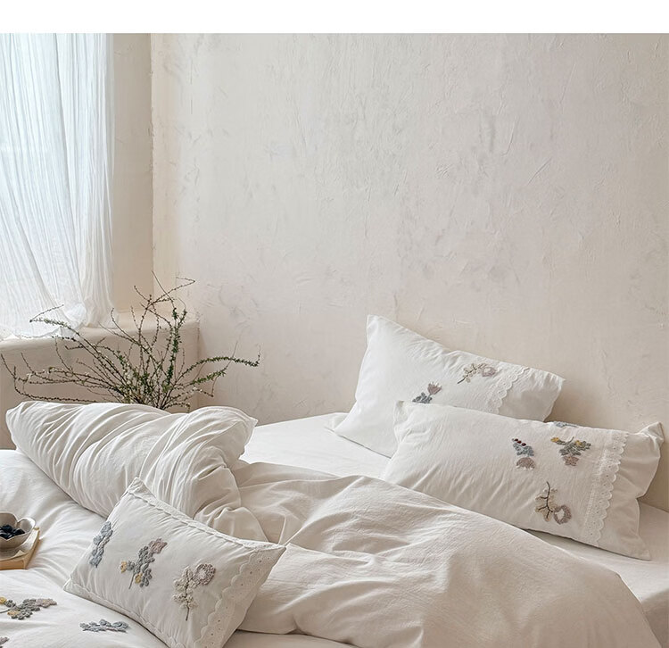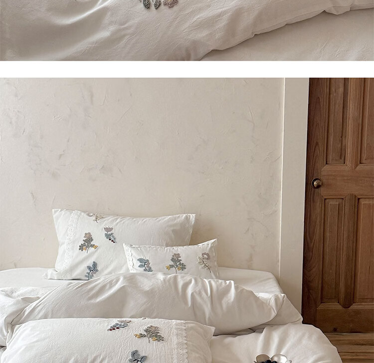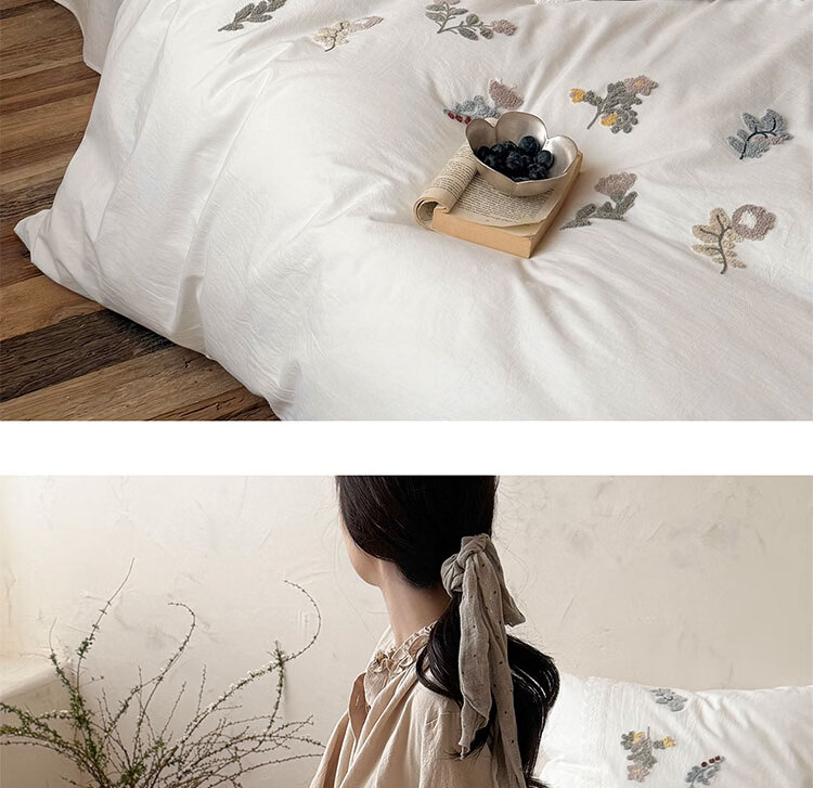 ROLAND LIVE法式复古风色织棉麻刺绣四件套透气被套床单新款简约床上用品套件 LB 棉麻刺绣套件-秋桉花信 1.2米床 床单款 【被套150*200cm】