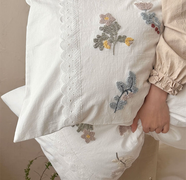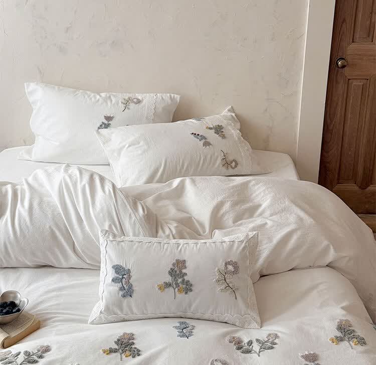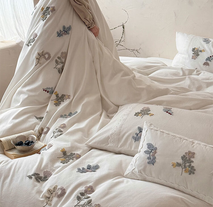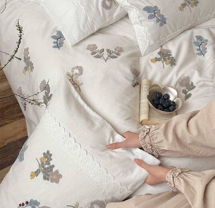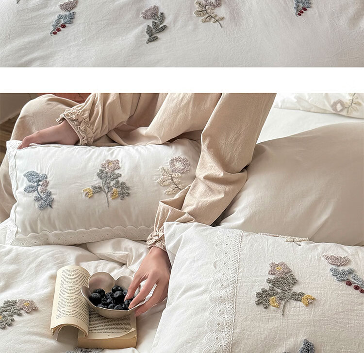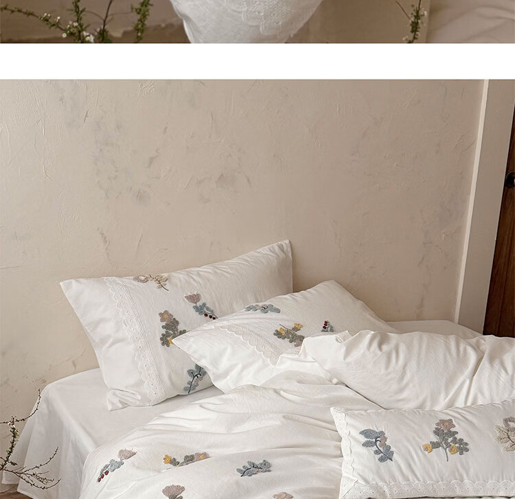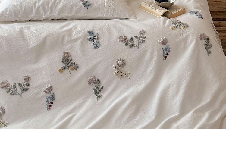 ROLAND LIVE法式复古风色织棉麻刺绣四件套透气被套床单新款简约床上用品套件 LB 棉麻刺绣套件-秋桉花信 1.2米床 床单款 【被套150*200cm】