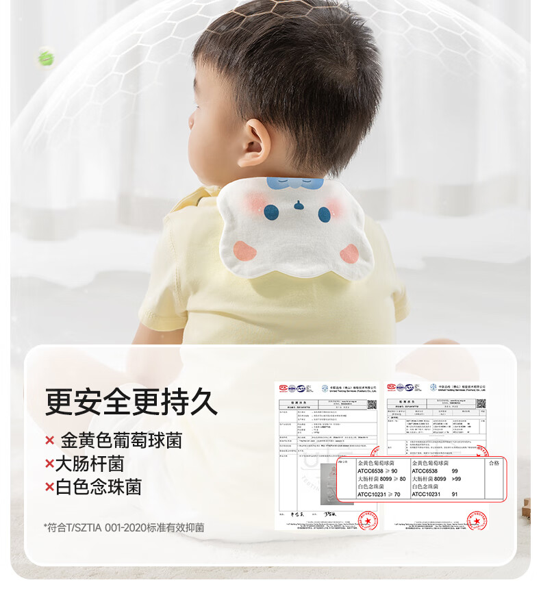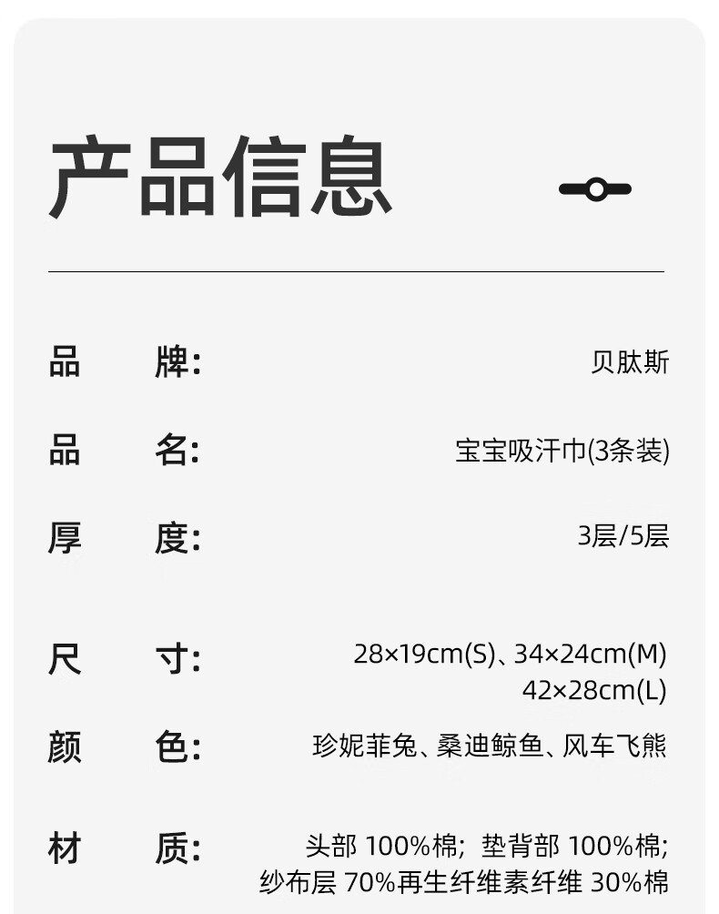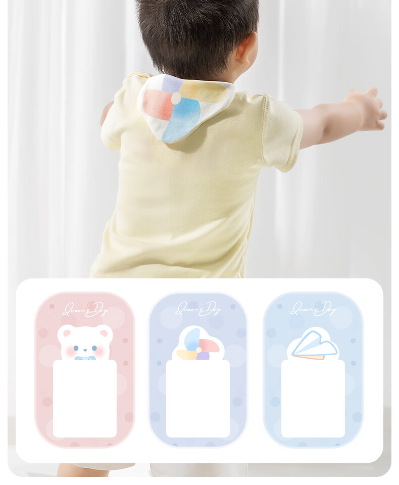 贝肽斯儿童隔汗巾纯棉a类幼儿园专用婴幼儿宝宝吸汗巾垫背巾 风车飞熊 3条装 【大吸量5层-导湿速干】 M码【34*24cm】建议2-6岁
