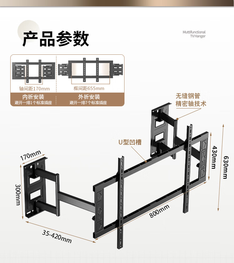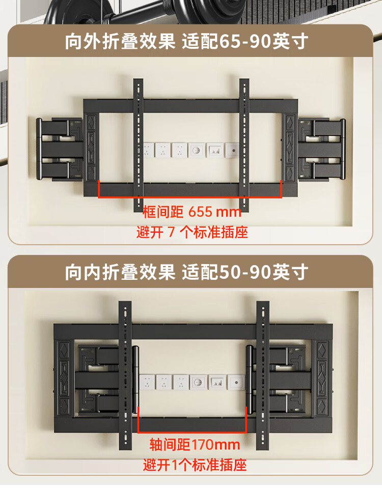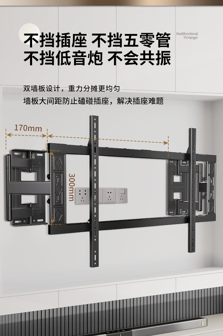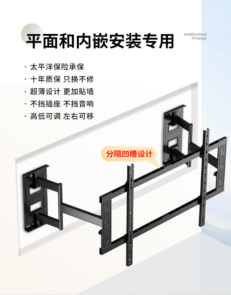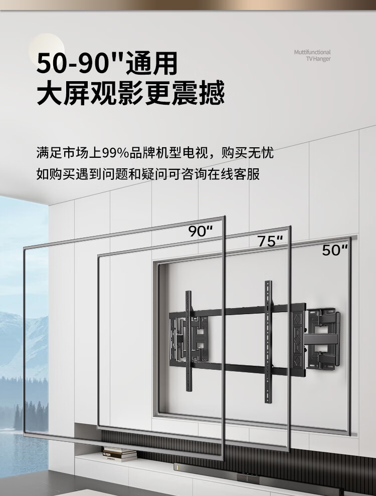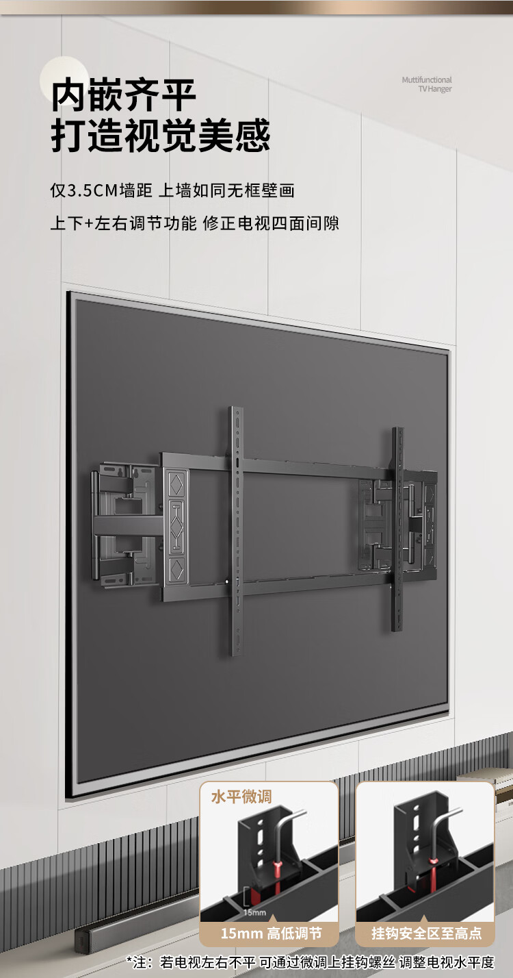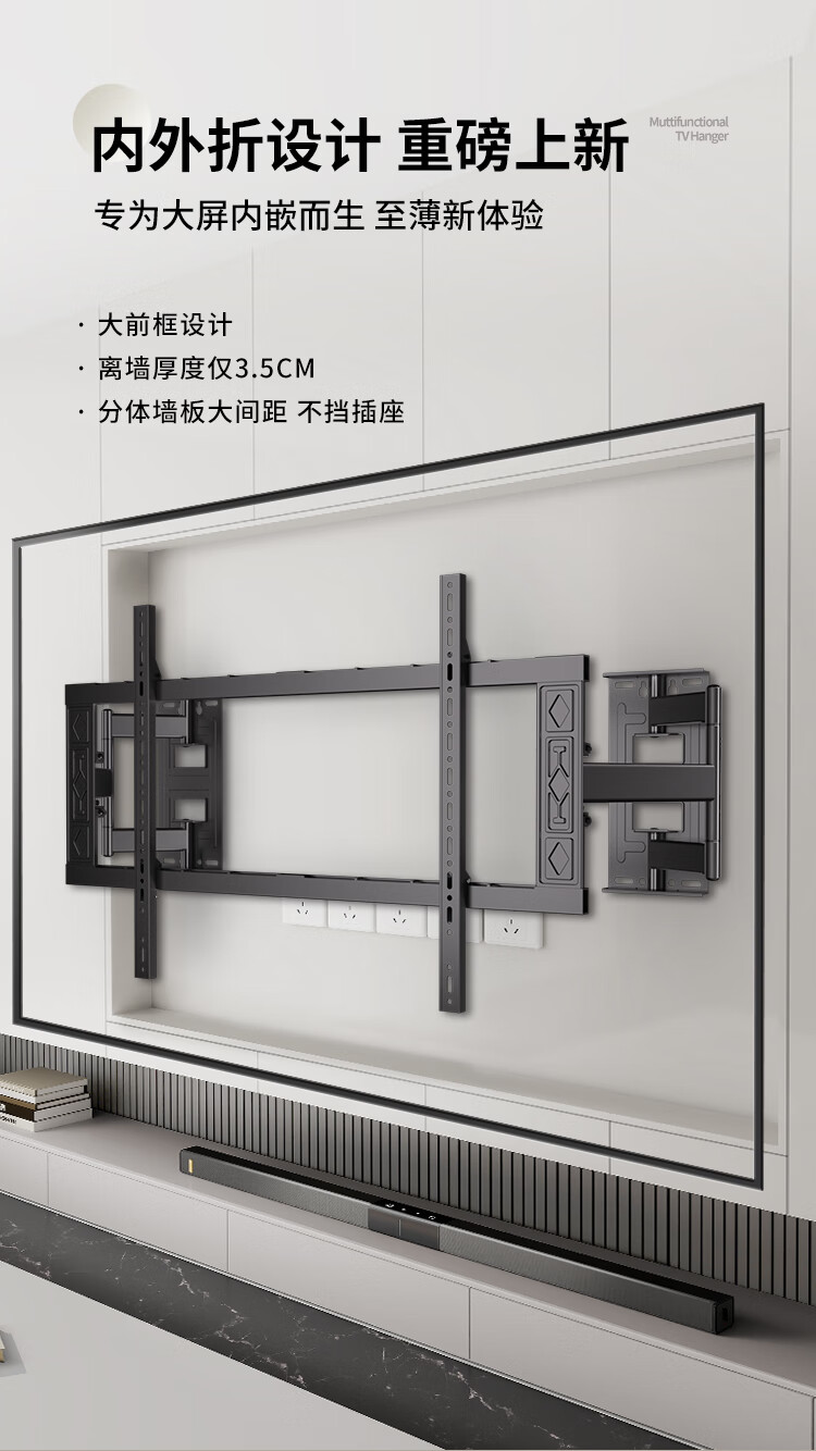 ProPre超薄伸缩50-90英寸电视挂架大屏电视支架折叠内嵌入式壁挂架适用创维tcl华为海信智慧屏等品牌通用